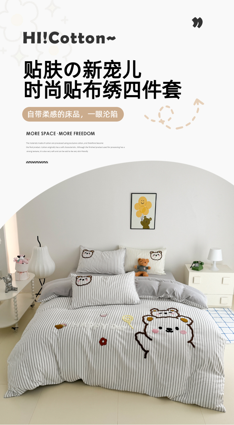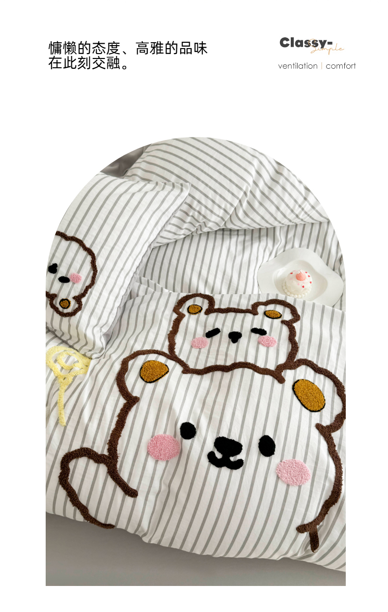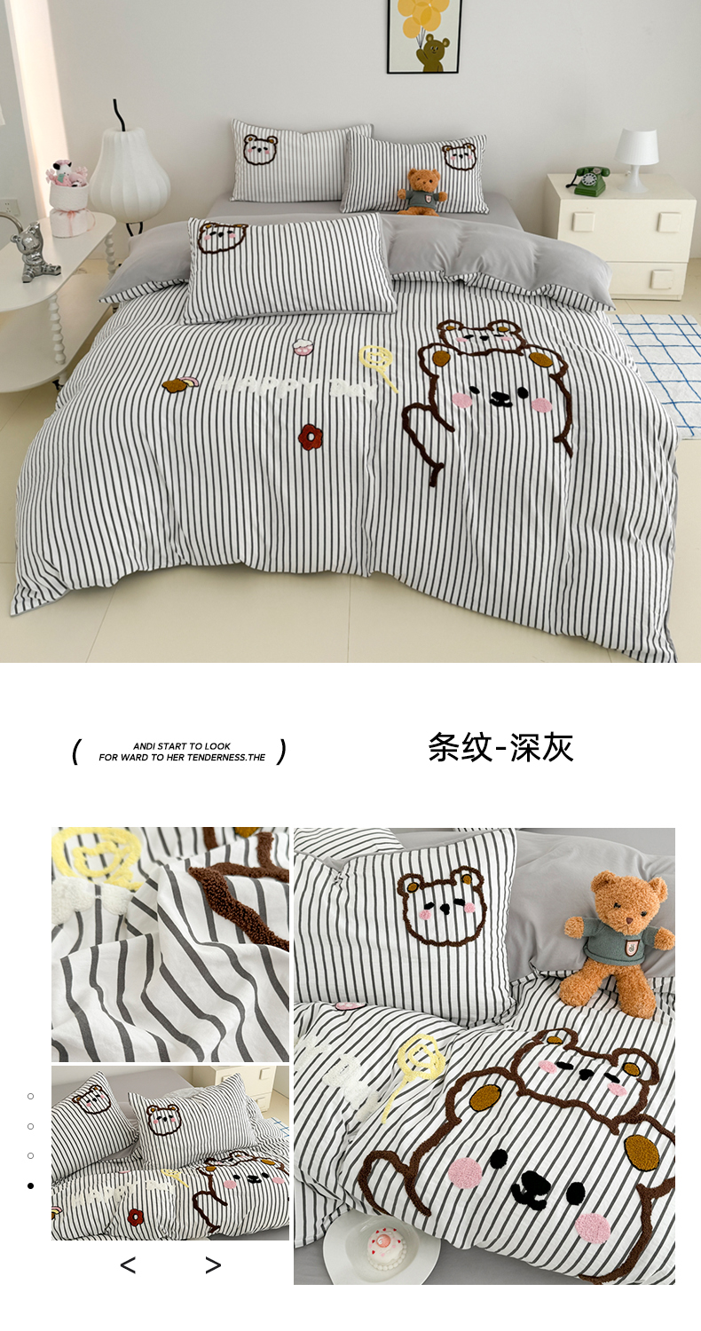 当前位置: 91家纺网 > 商品网购 > 床品套件 > 四件套 > 闲鱼家纺 2025新款时尚亲肤贴布绣毛巾绣条纹四件套-萌趣小熊 条纹浅紫