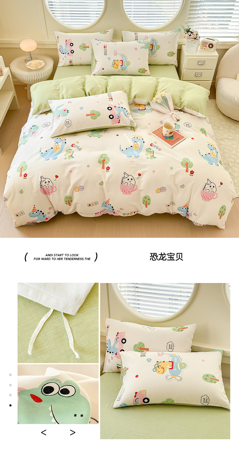 铭浩 2025新款全棉印花四件套 恐龙宝贝