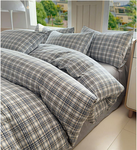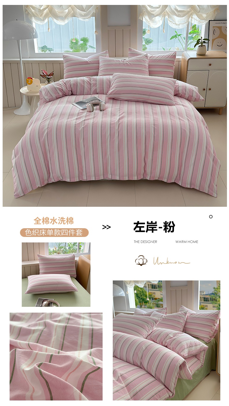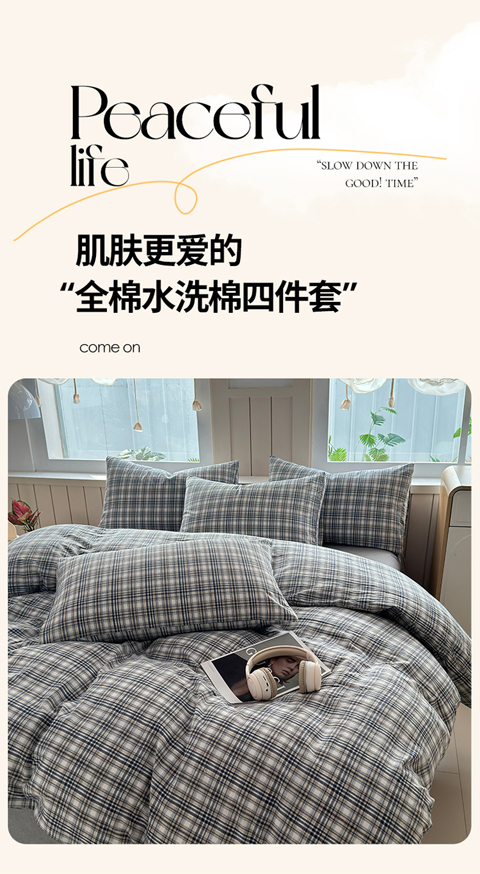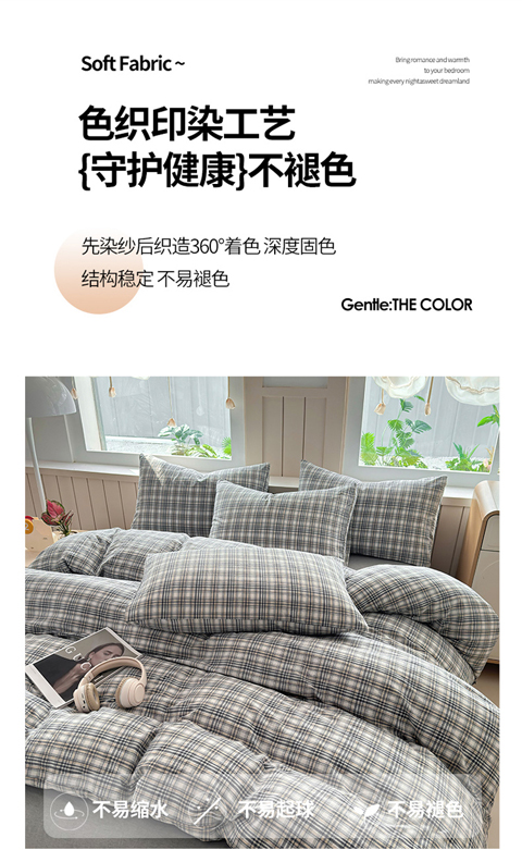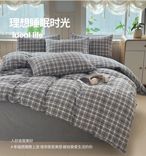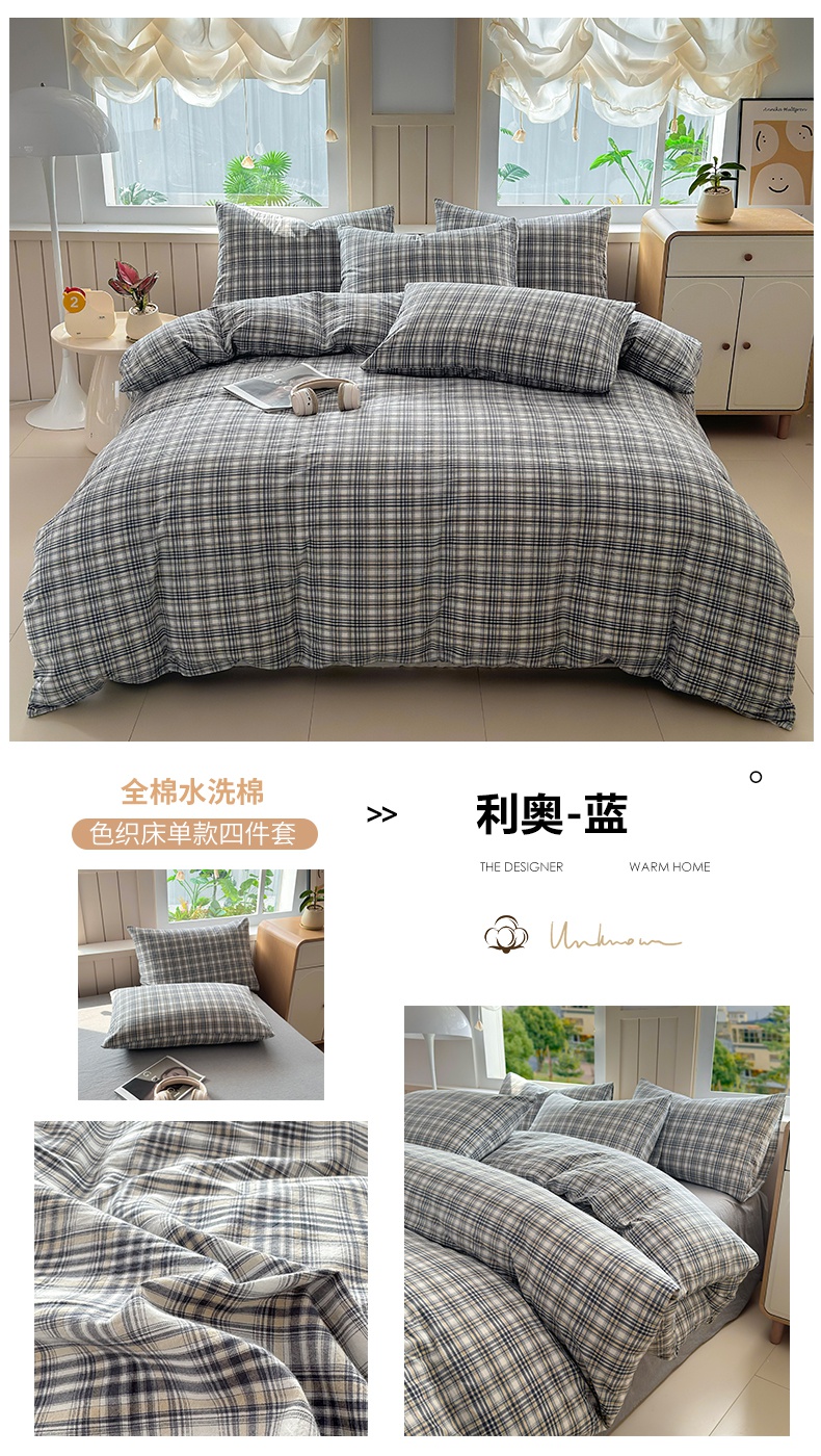 (总)梦精灵家纺 2025新款全棉纯棉色织水洗棉床盖四件套学生床宿舍被套床单枕套,可颂-咖,利奥-红,利奥-蓝,利奥-绿,罗恩-灰,维多利亚-米,西蒙-黄,西蒙-蓝,左岸-粉,雅灰,棕咖,鹅黄,幻影绿,桔红