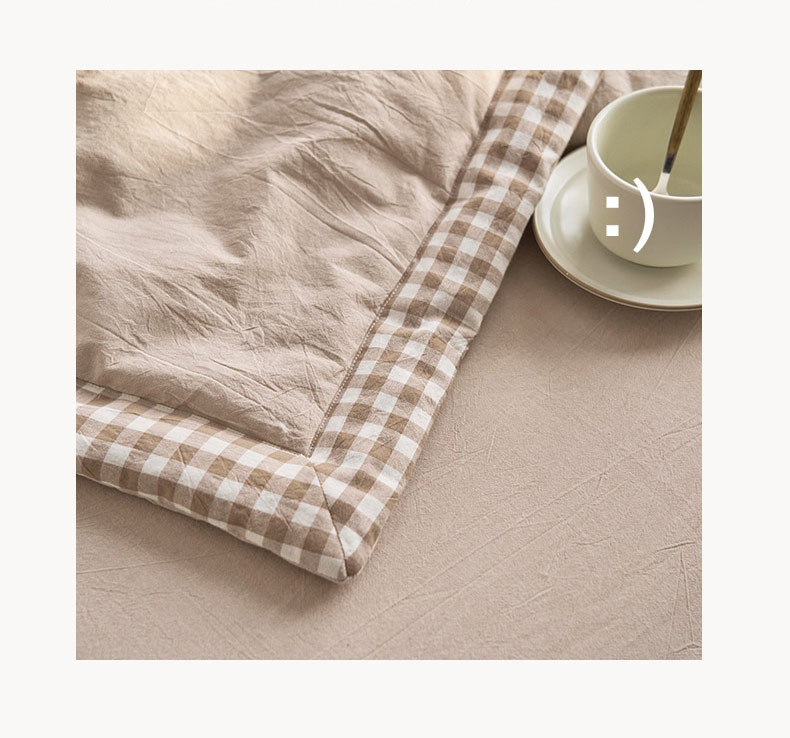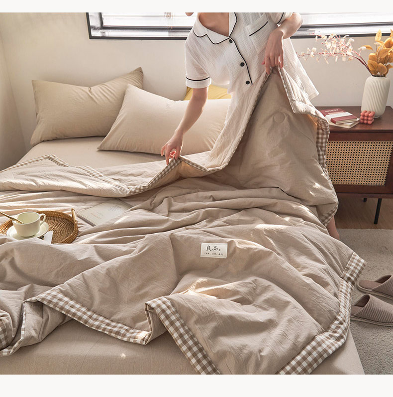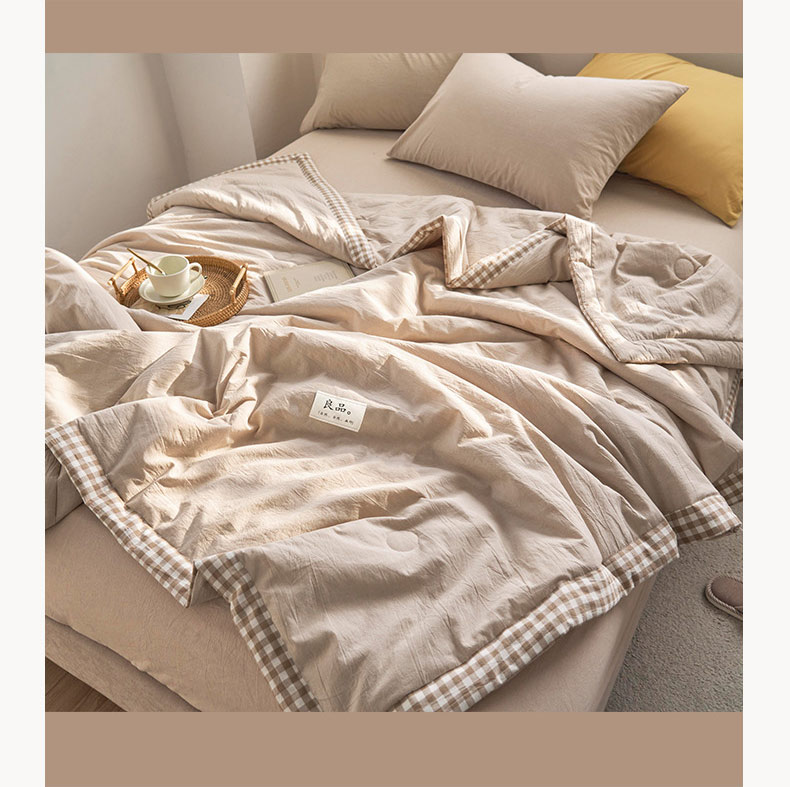 商品名称:子由家居 2025新款水洗棉棋盘格织标大豆纤维夏被被子被芯 棋盘格边夏被-浅驼