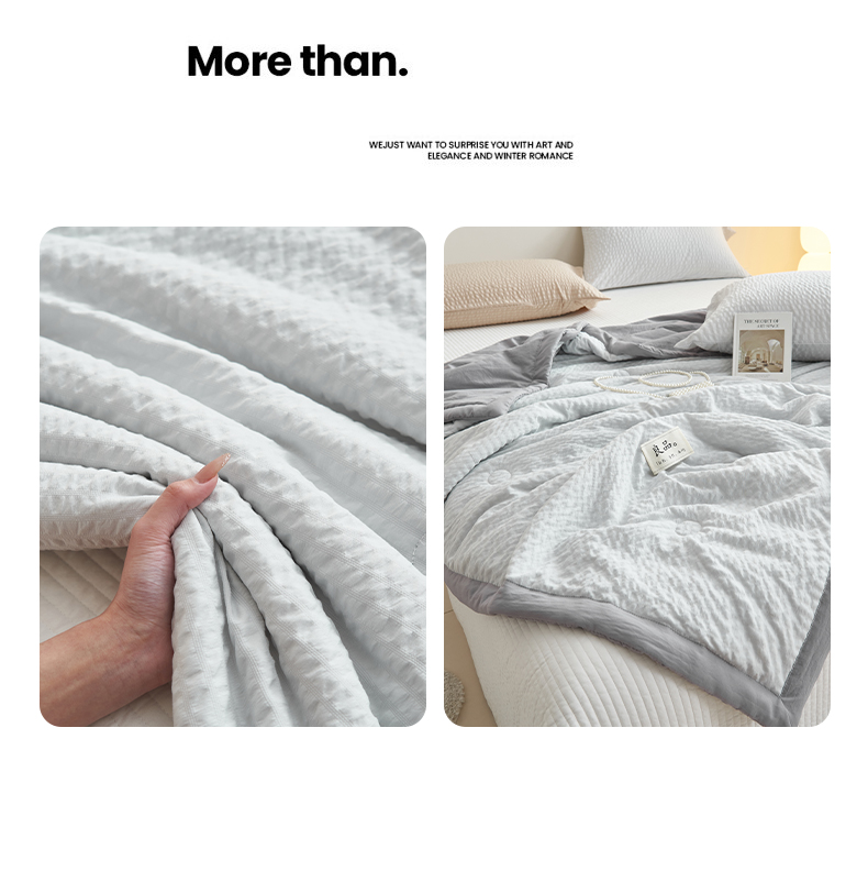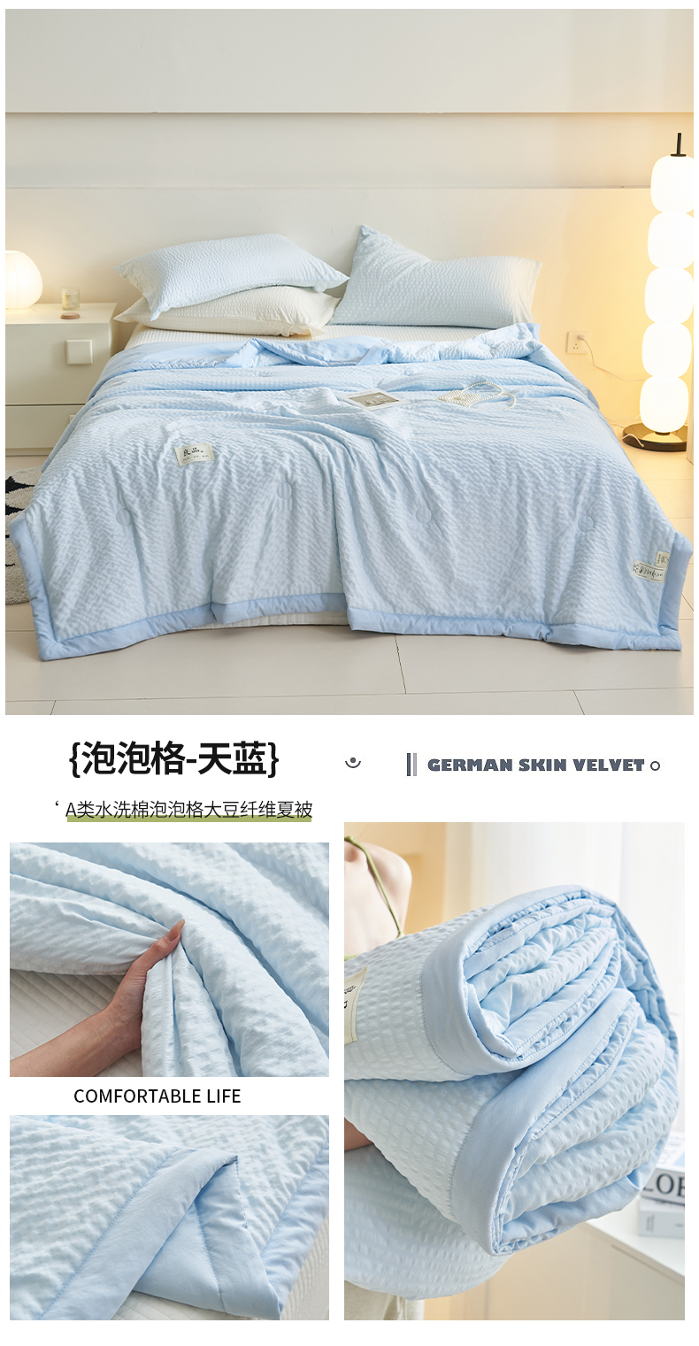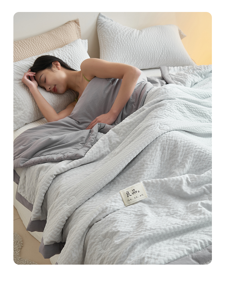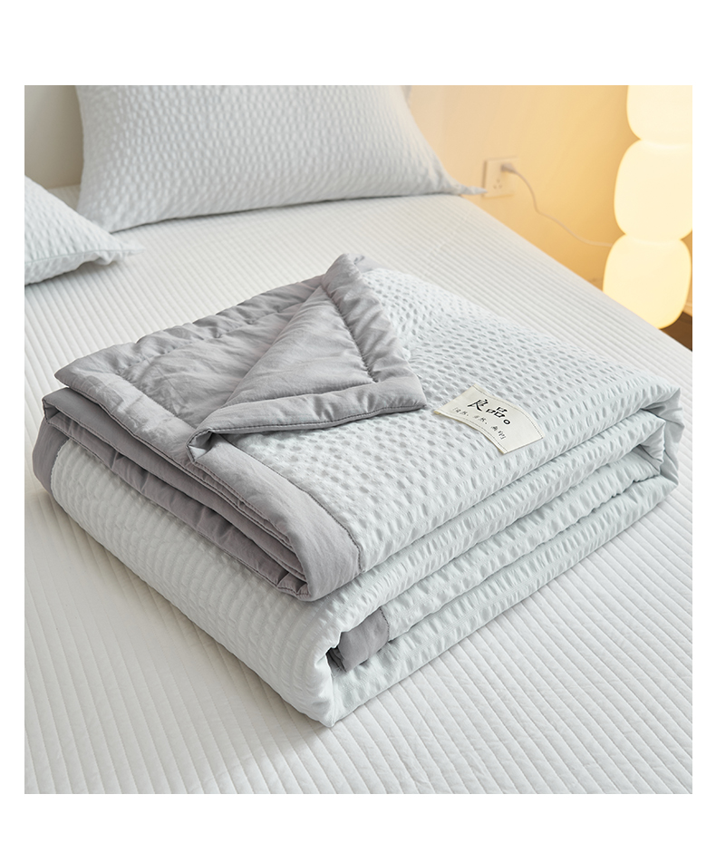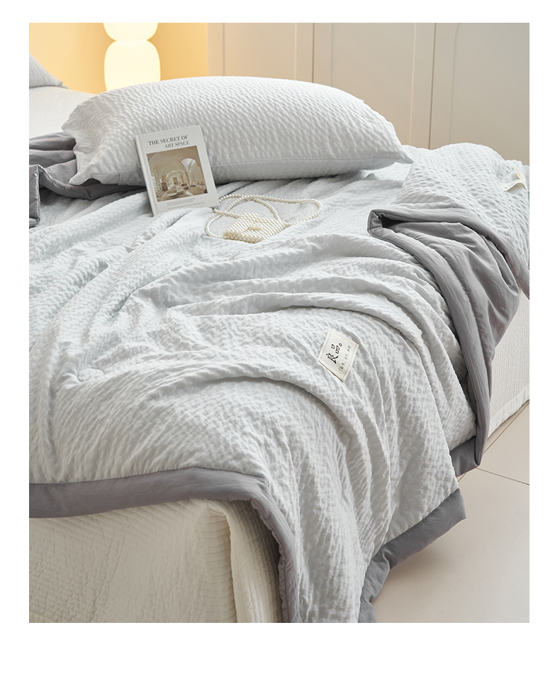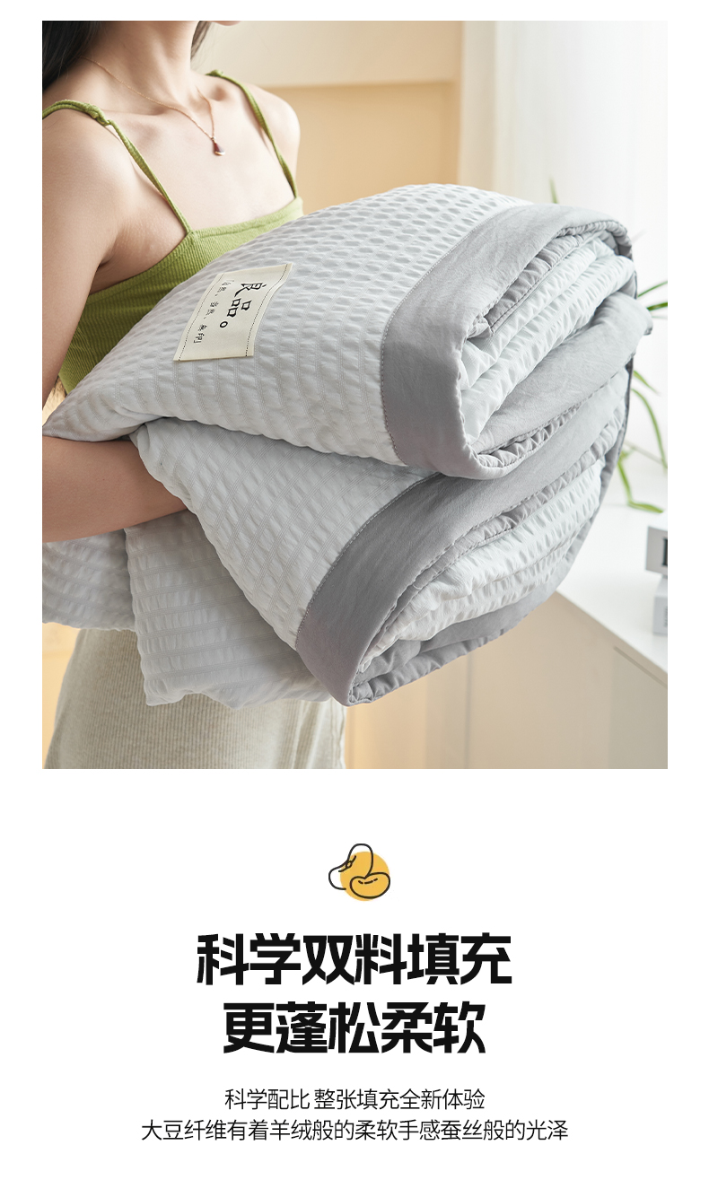 • 91家纺网 家纺一手货源 找家纺 子由家居 2025新款水洗棉泡泡格大豆纤维夏被被子被芯 泡泡格-浅灰