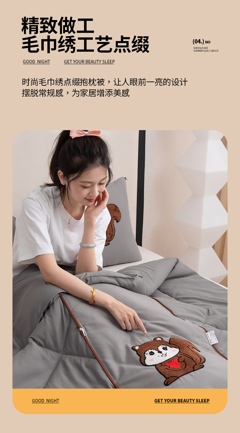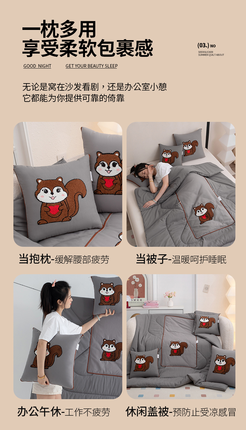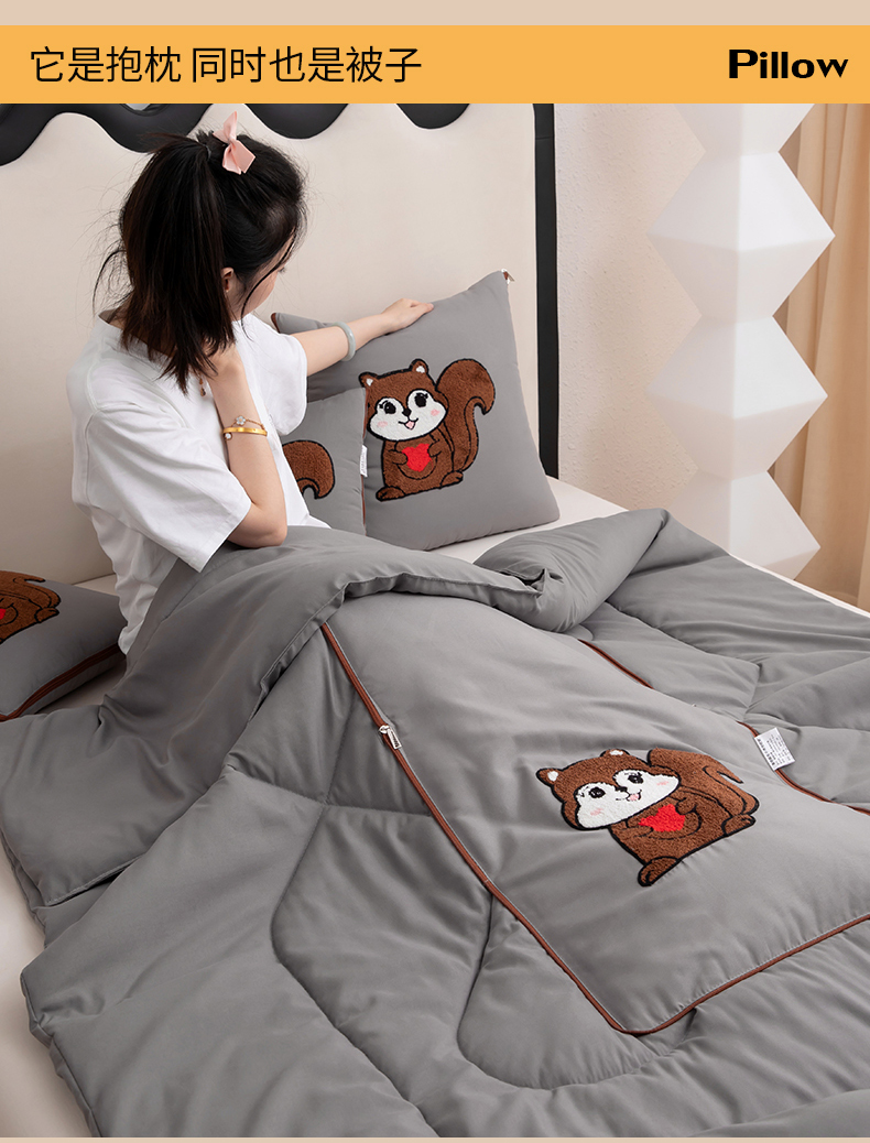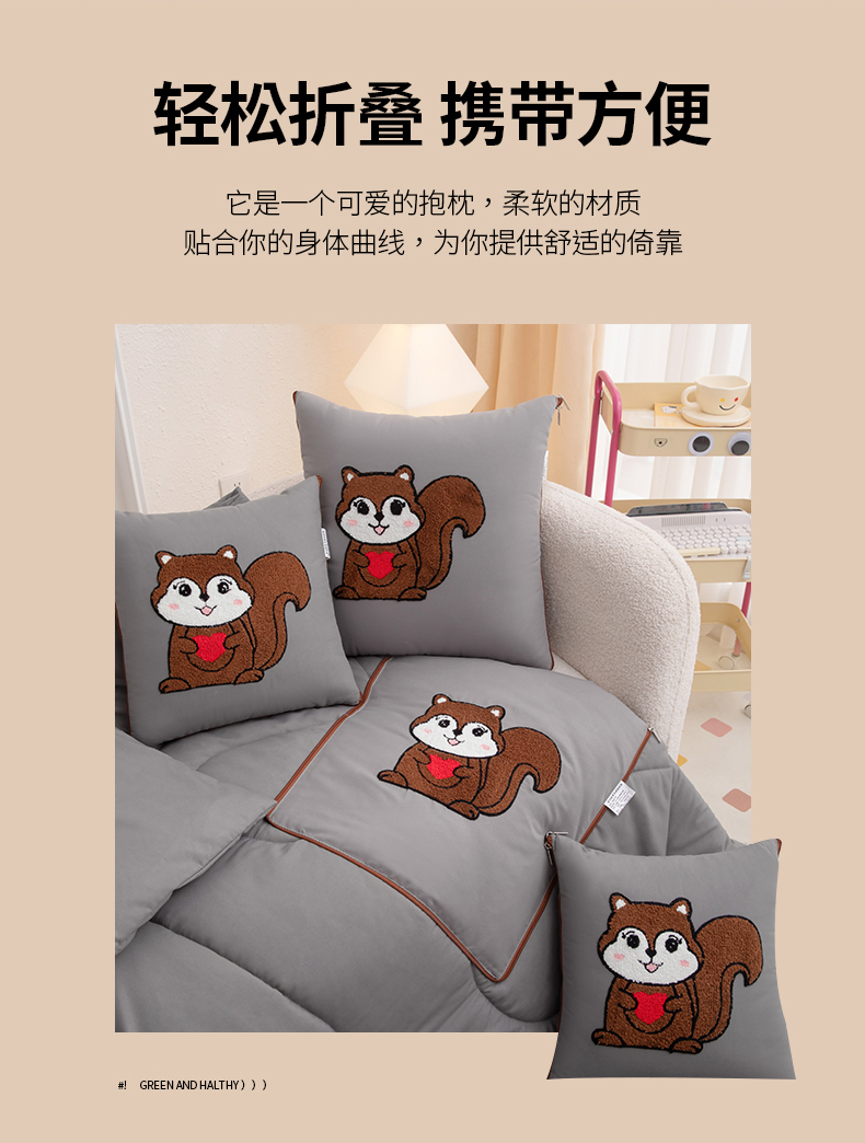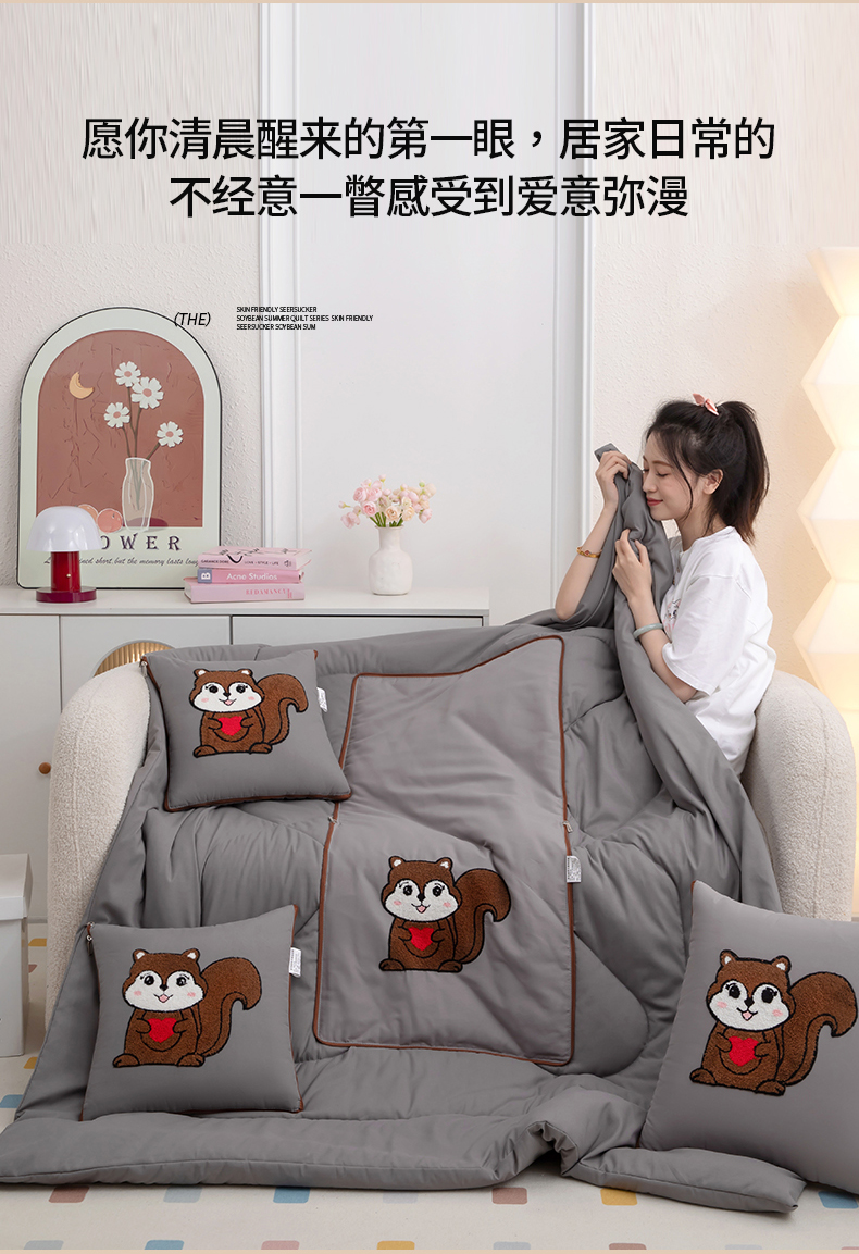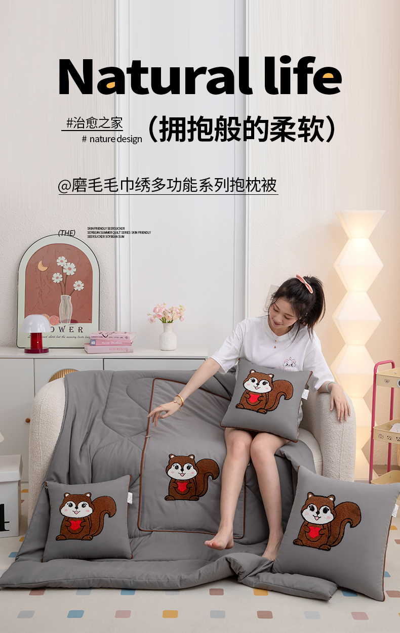 (总)宝马家纺(原梦童画)2025新款四季款磨毛毛巾绣小松鼠抱枕被