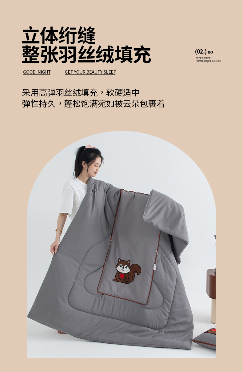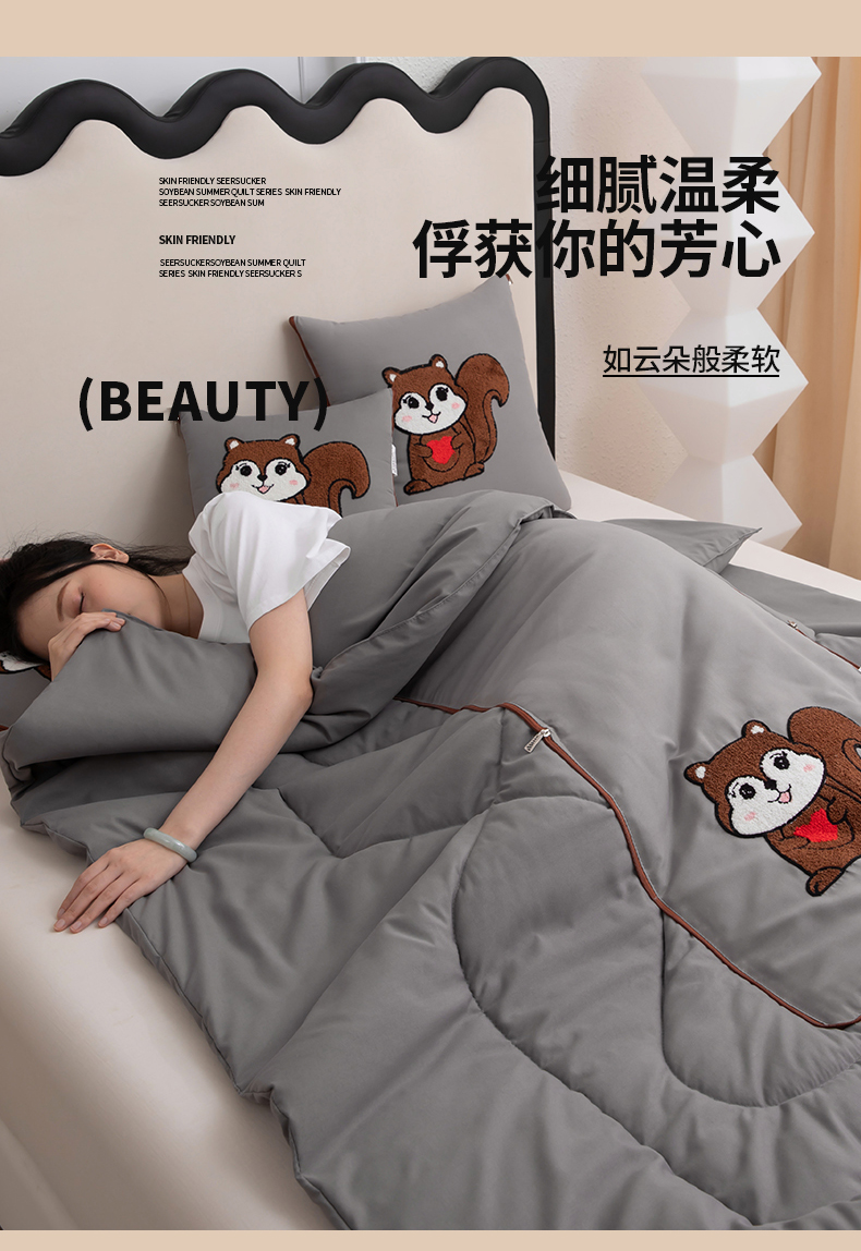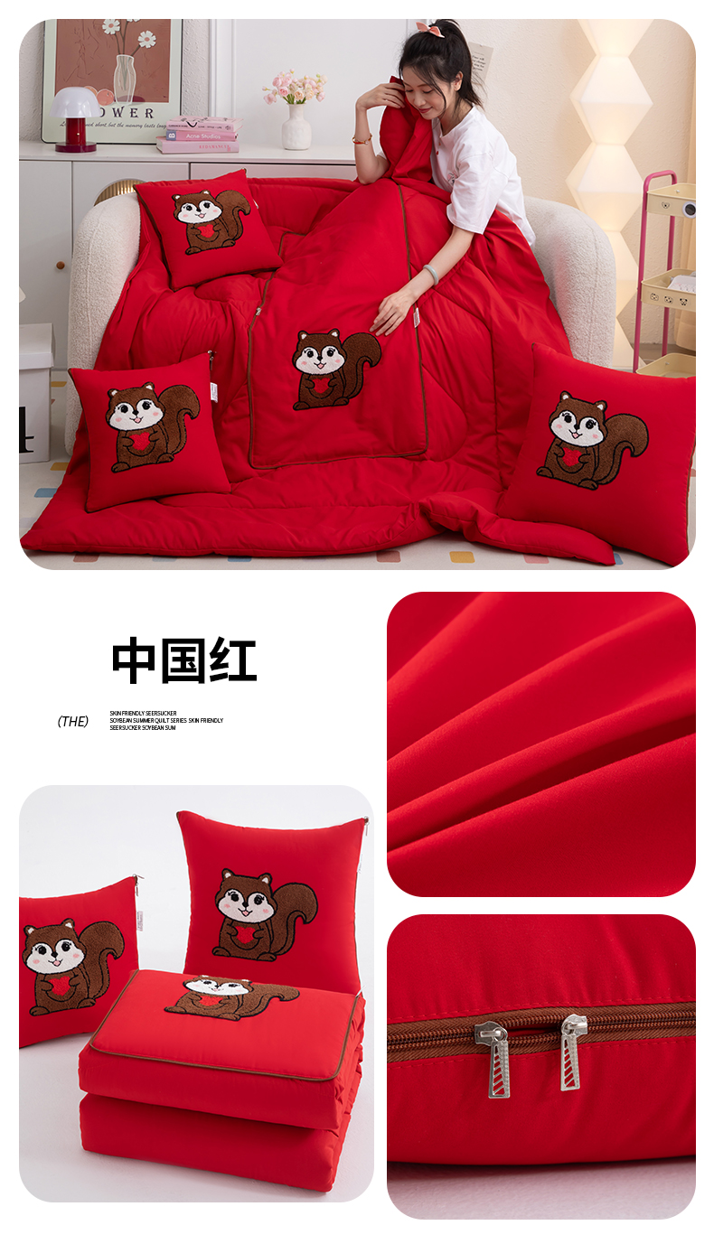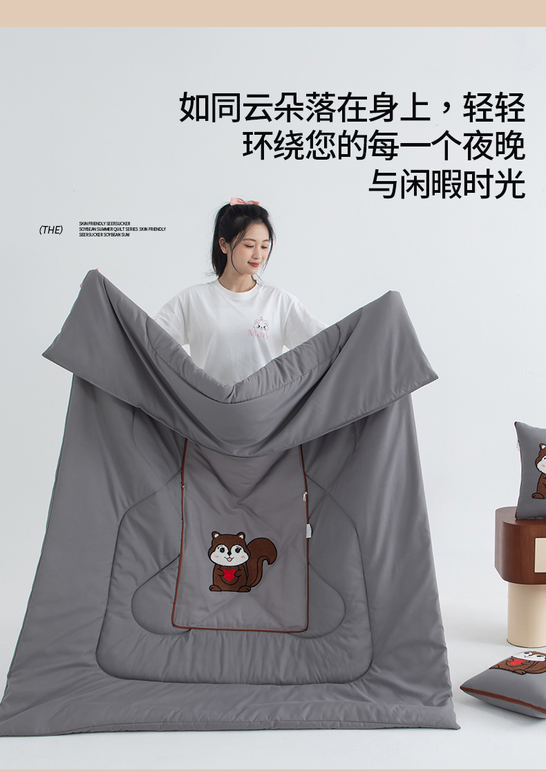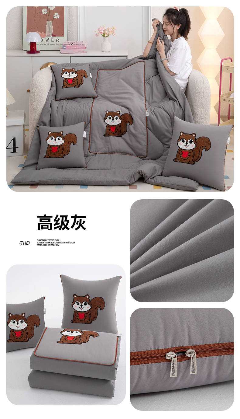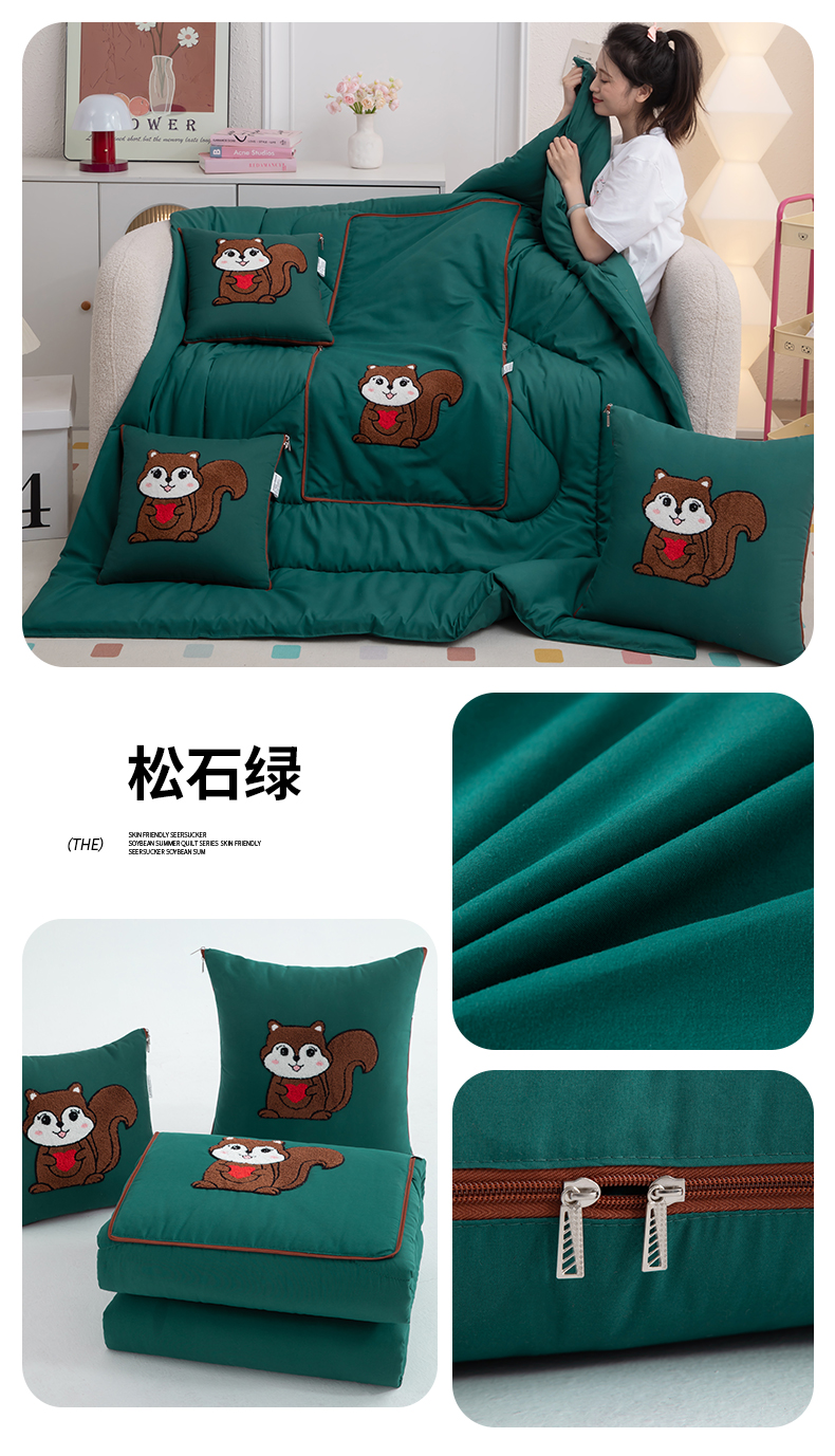 (总)宝马家纺(原梦童画)2025新款四季款磨毛毛巾绣小松鼠抱枕被