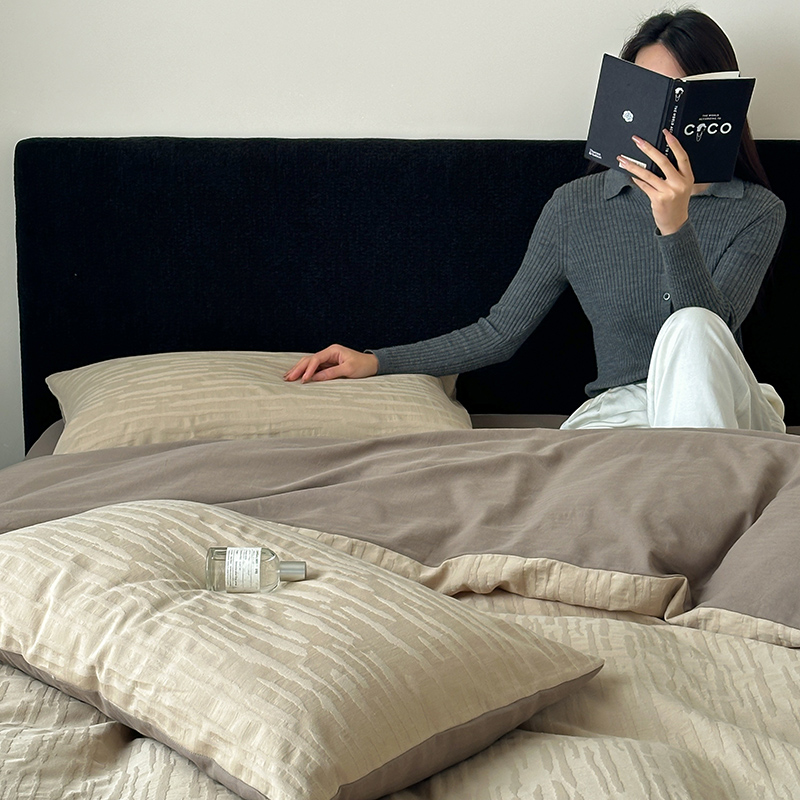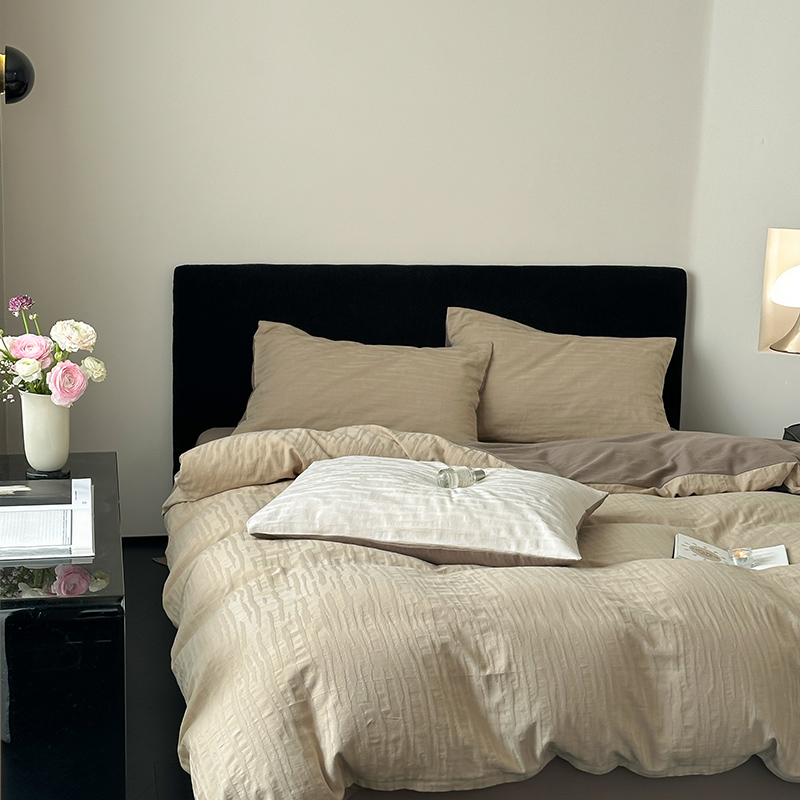 商品名称:梦享生活家居 2025新款色织三层提花人字纹面料四件套-青春系列 恋青春浅棕
