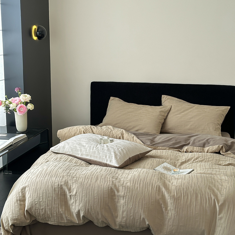(总)梦享生活家居 2025新款全棉肌理纹提花四件套,灰黑色