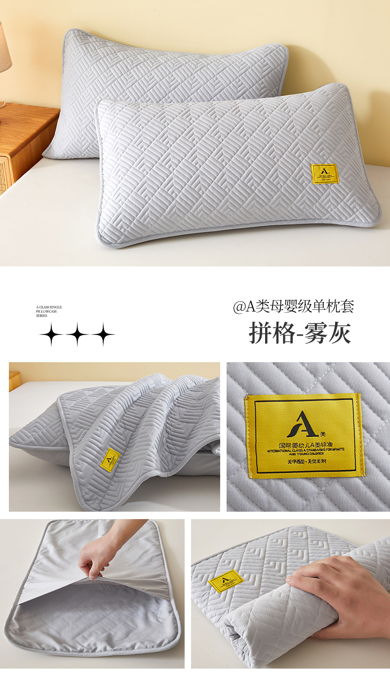 商品名称:居眠2025新款夹棉防水枕套 拼格-雾灰