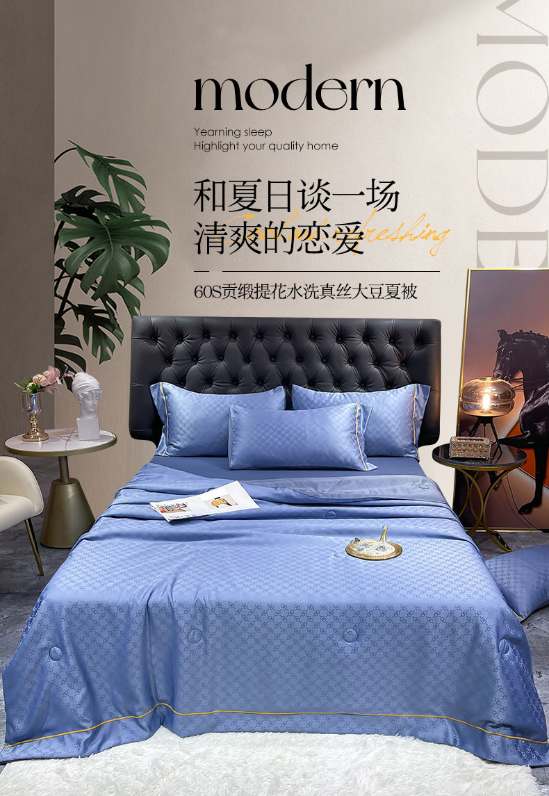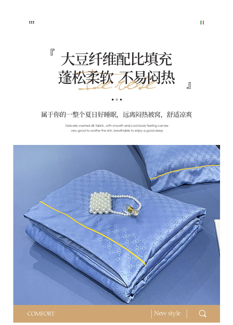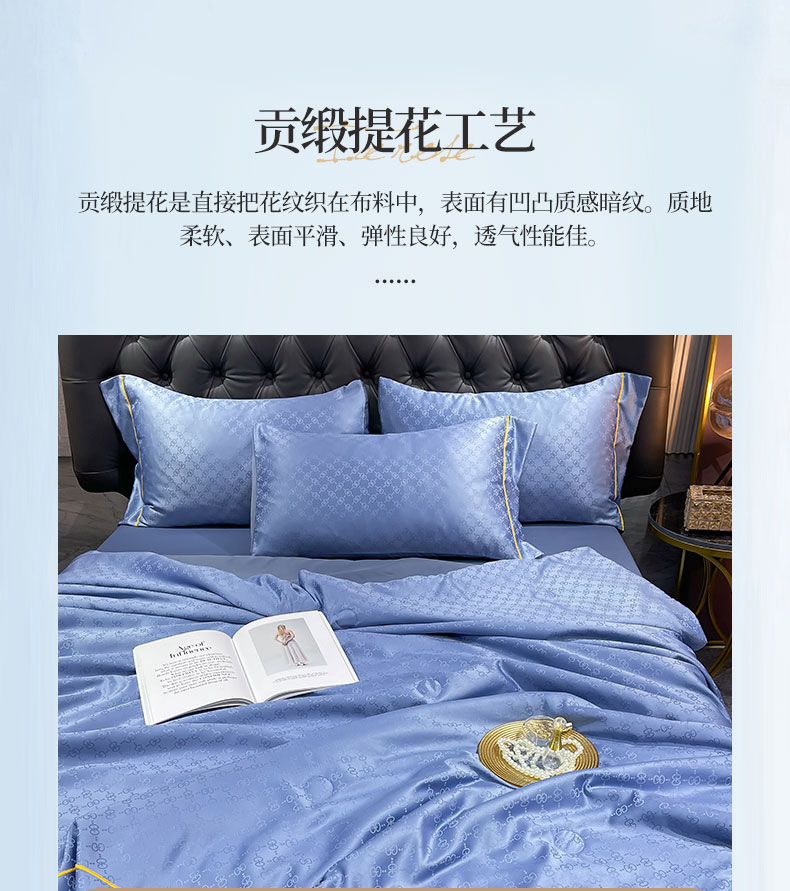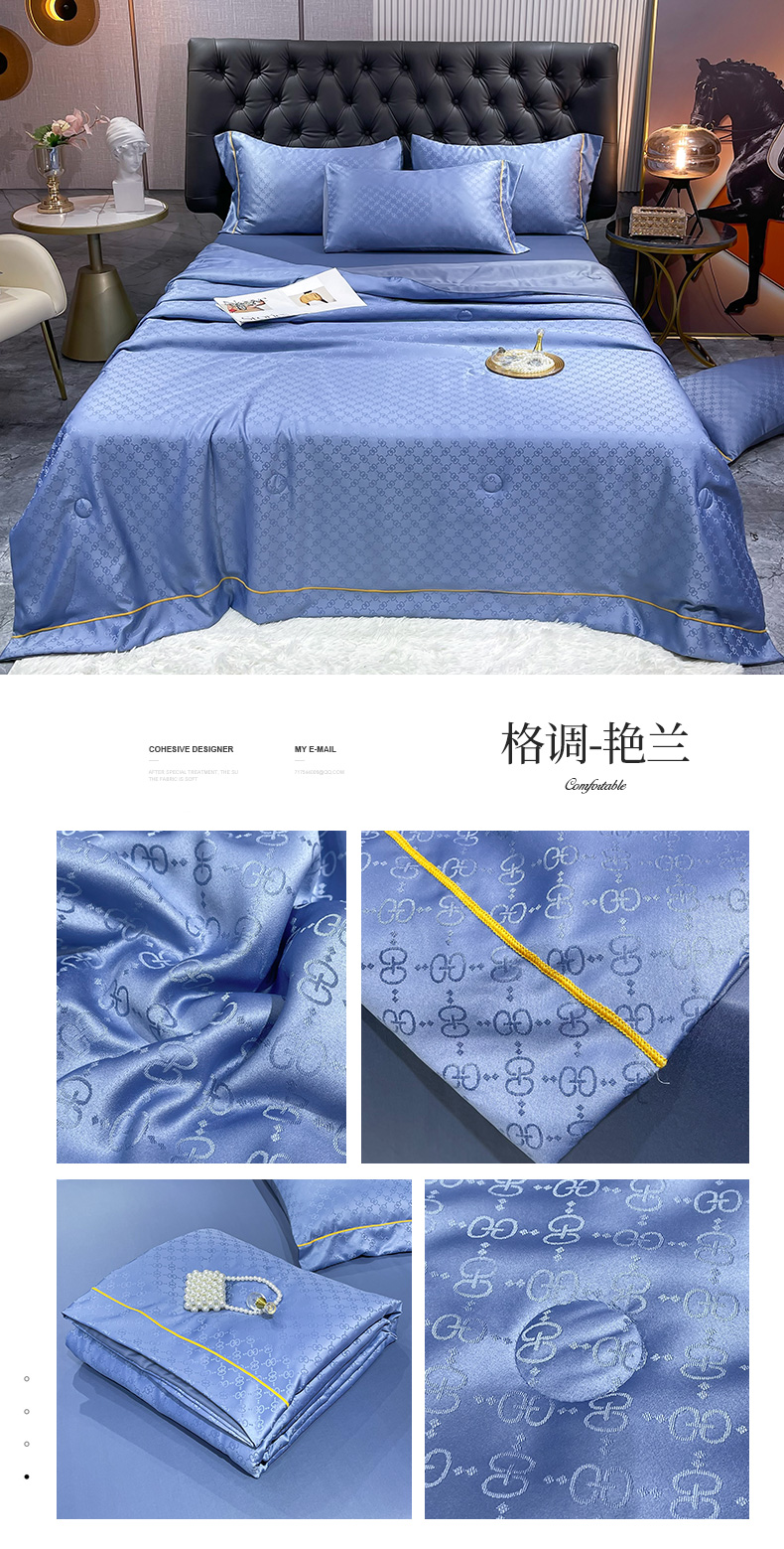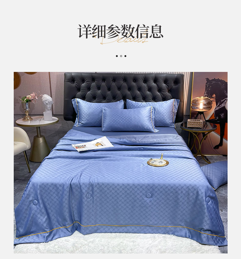 • 91家纺网 家纺一手货源 找家纺 经年 2025新款60S贡缎提花水洗真丝冰丝天丝大豆夏被四件套直播爆款 格调-艳兰大豆夏被