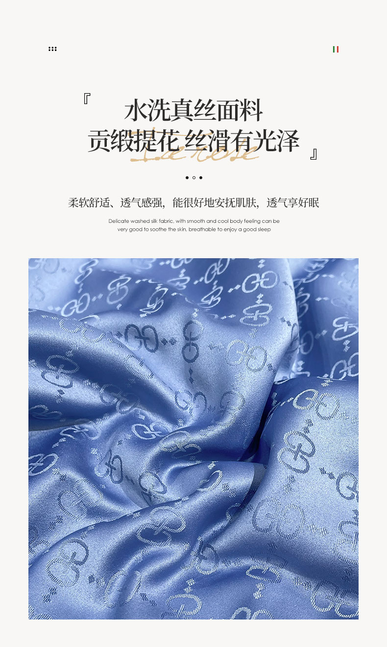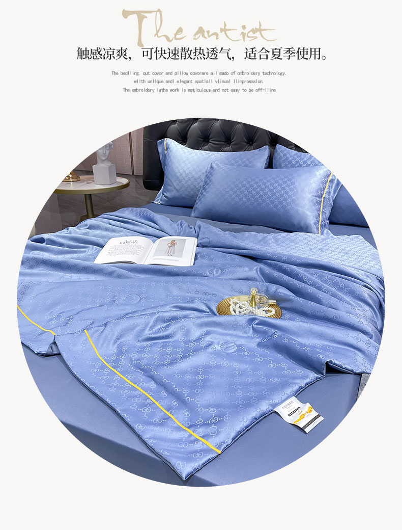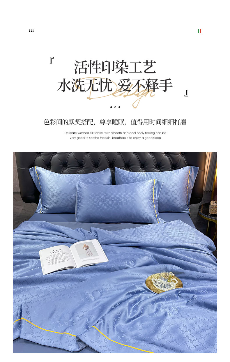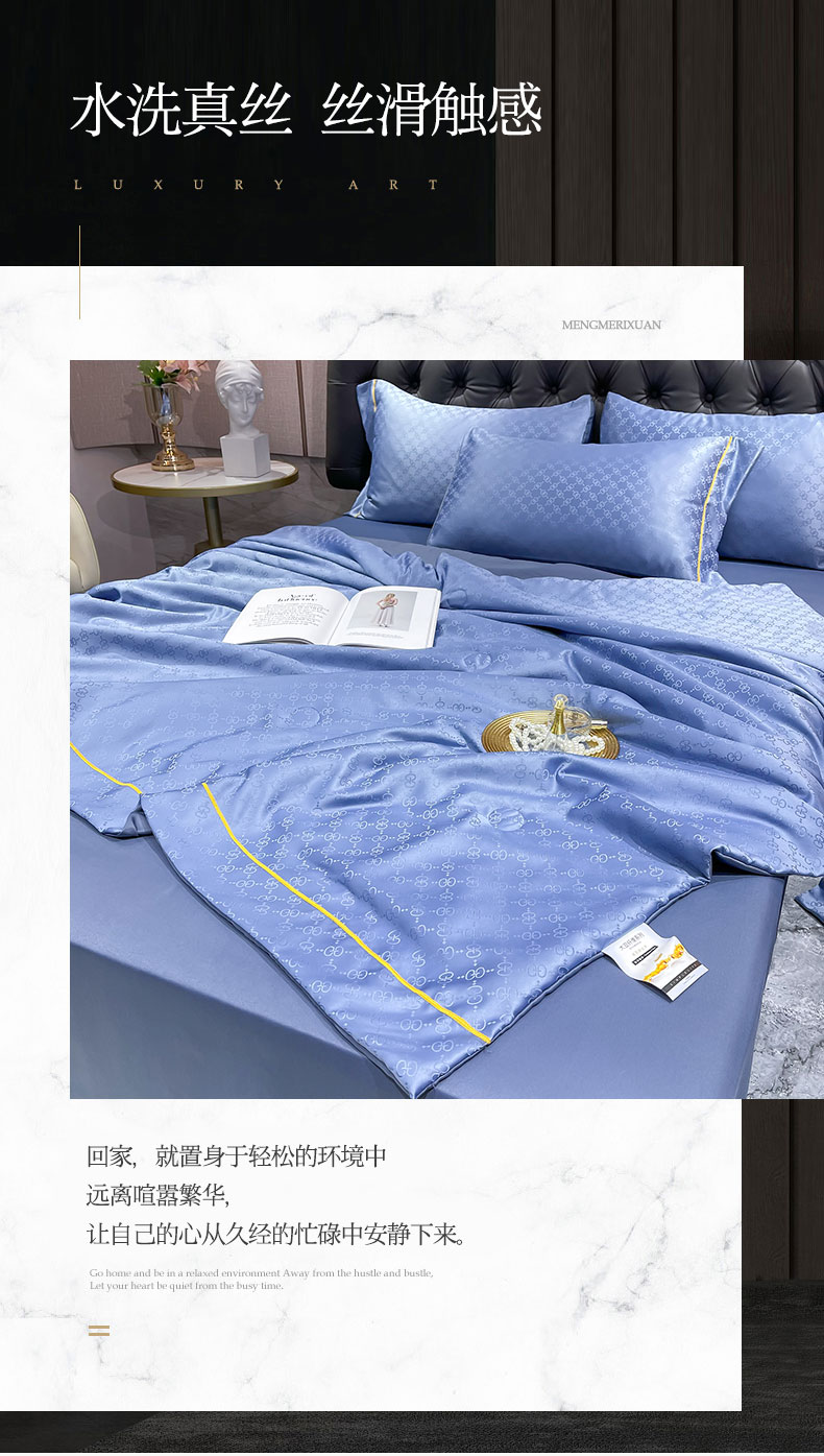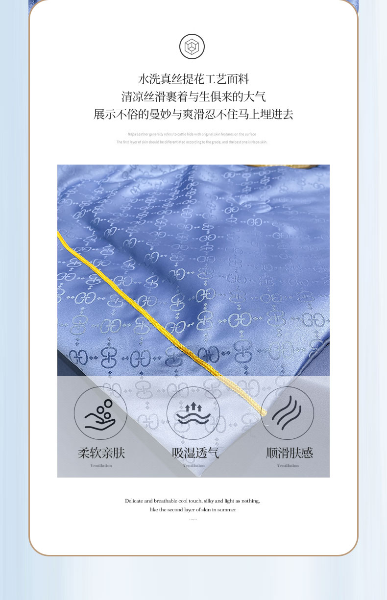 • 91家纺网 家纺一手货源 找家纺 经年 2025新款60S贡缎提花水洗真丝冰丝天丝大豆夏被四件套直播爆款 格调-艳兰大豆夏被
