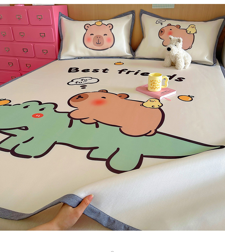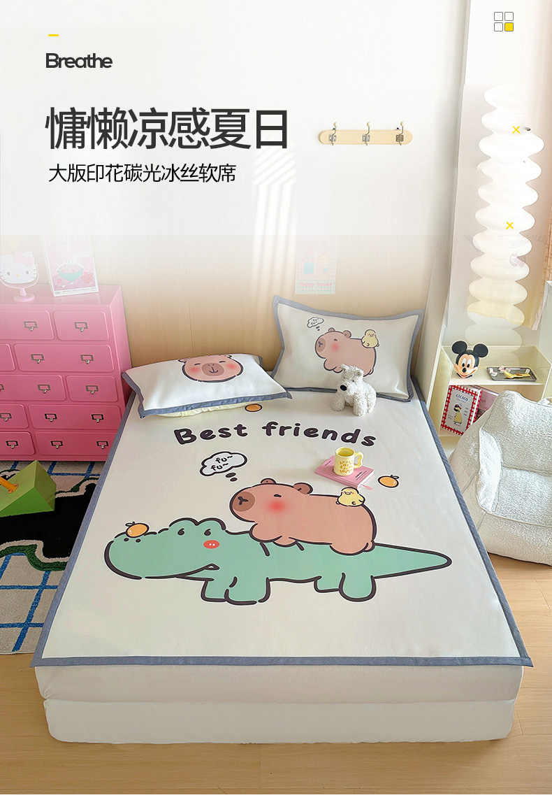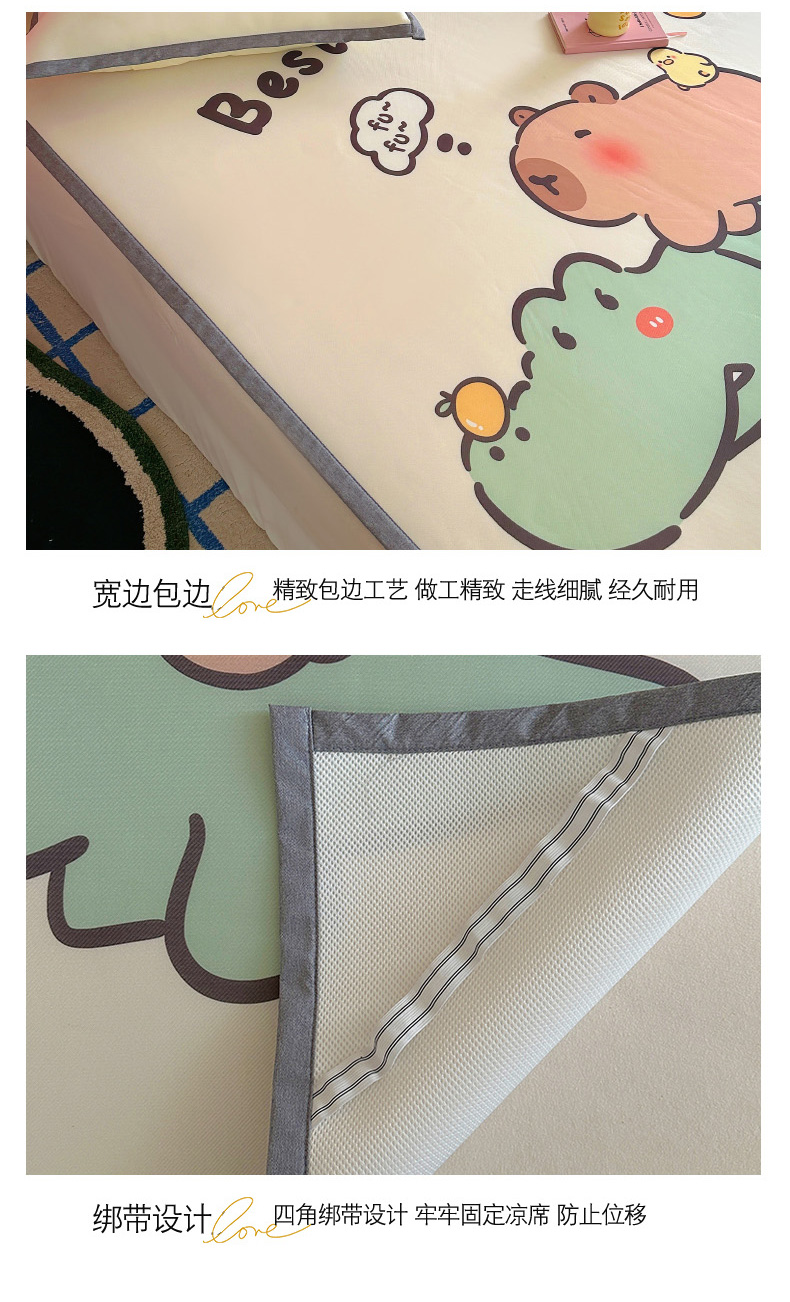 (总)昊川家纺 2025新款大版数码印花碳光冰丝席,卡皮巴拉,粉曲奇,小粉ju,小煤球,小女孩,熊猫宝宝,游泳狗