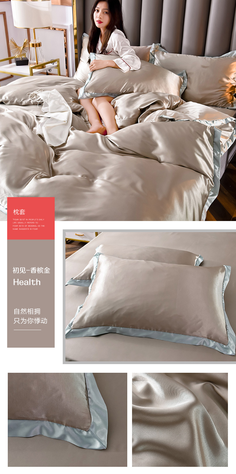 商品名称:经年 2025年奢华真丝手感水洗冰丝天丝单枕套-初见系列 直播爆款 初见-香槟金