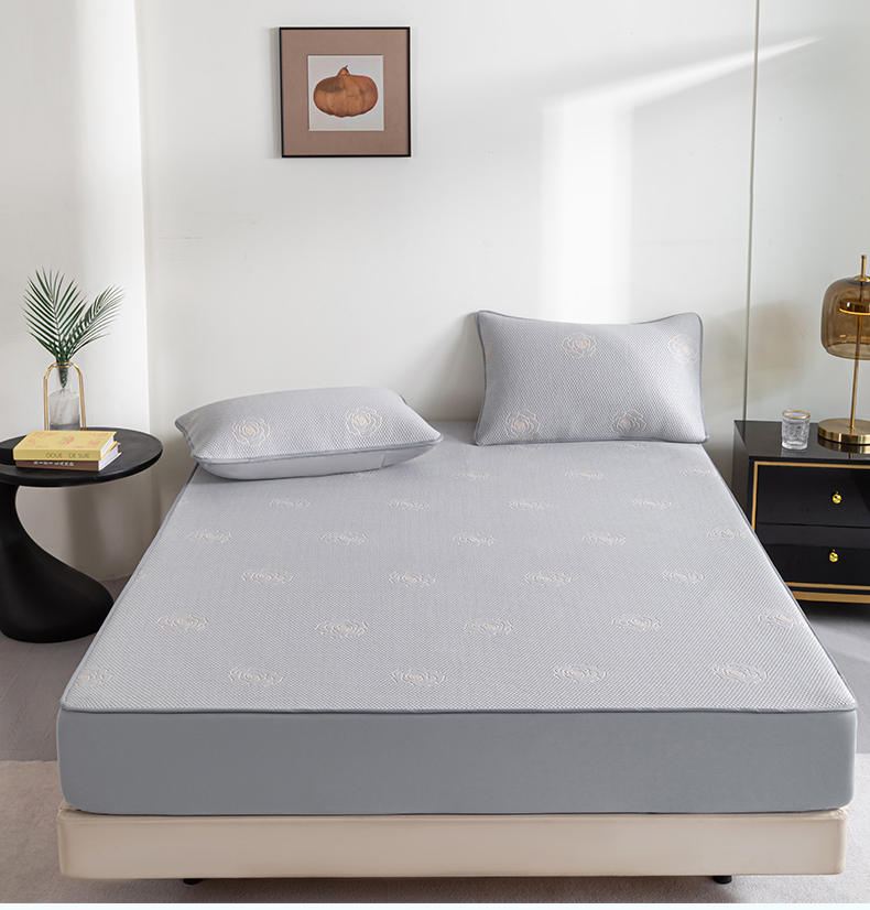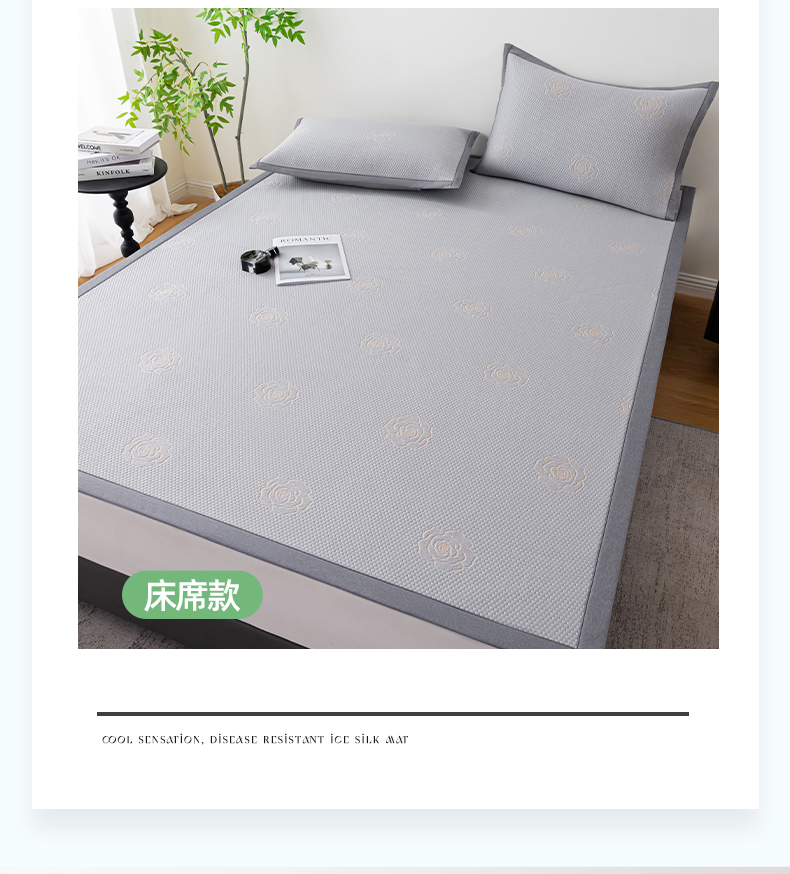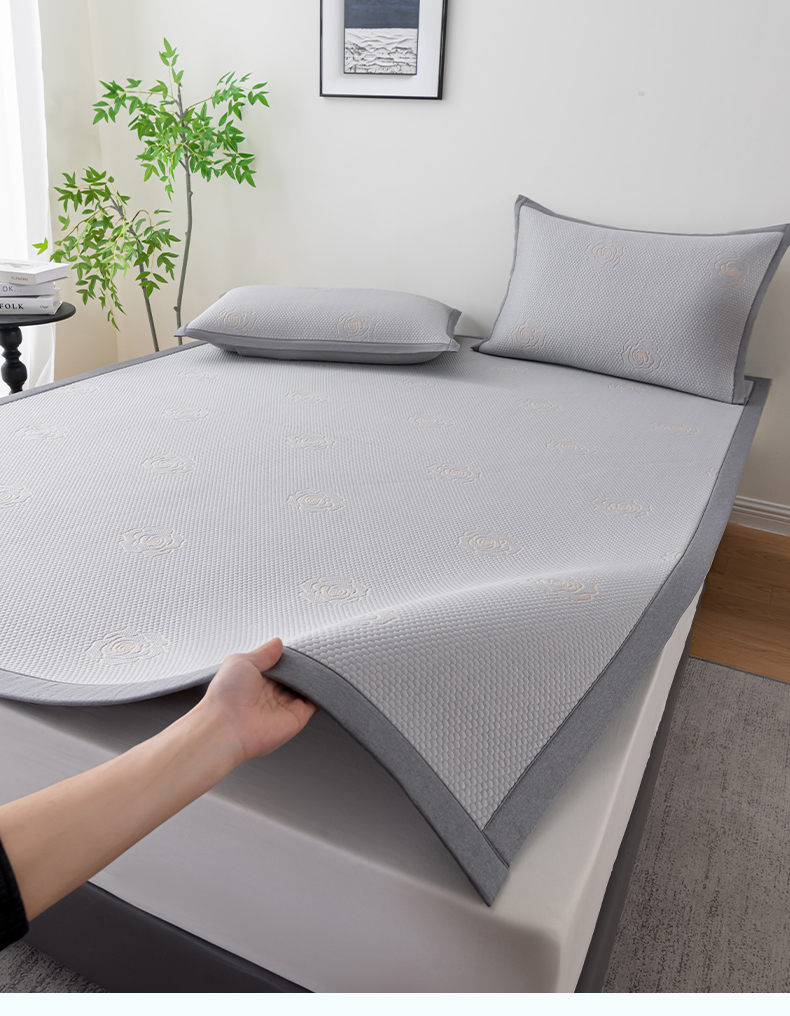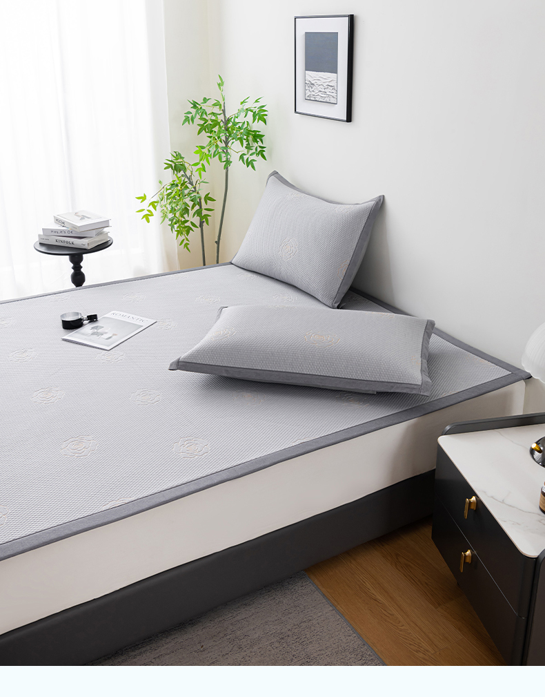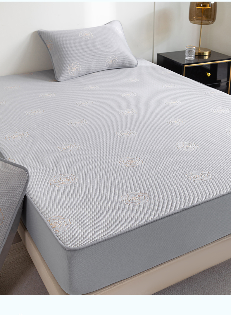 商品名称:2025新款山茶花系列冰豆豆凉席 山茶花床笠款-浅灰