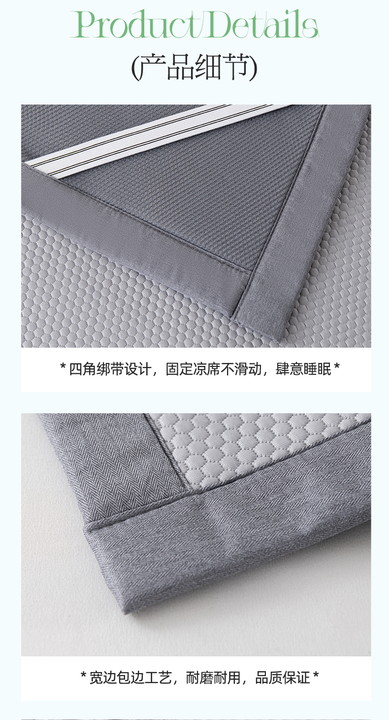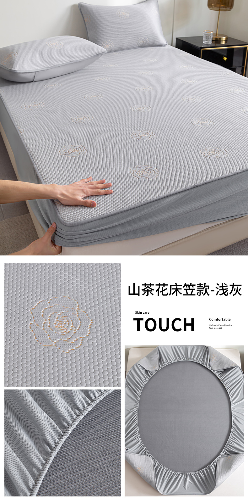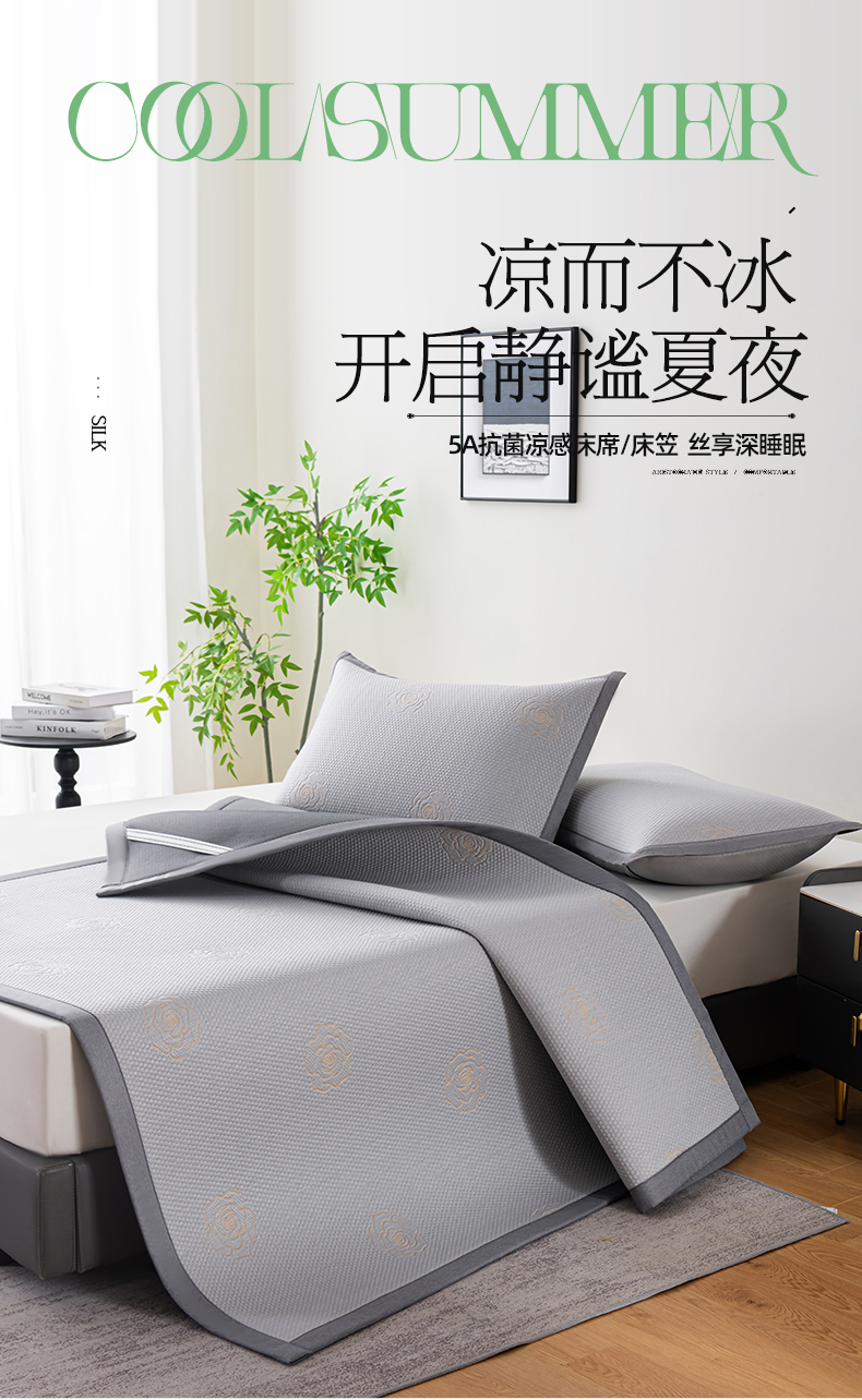 商品名称:2025新款山茶花系列冰豆豆凉席 山茶花床笠款-浅灰