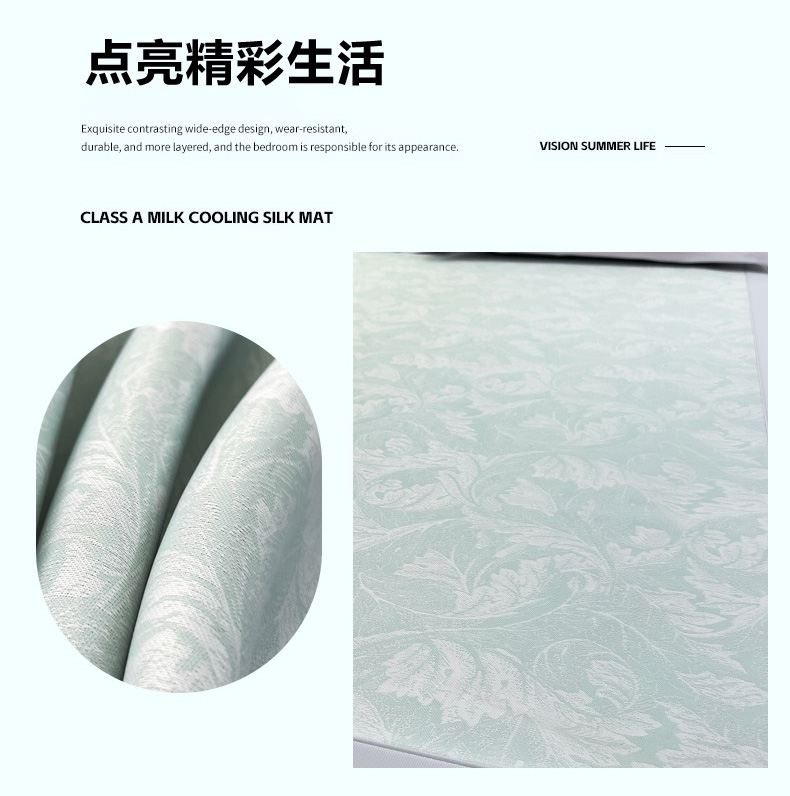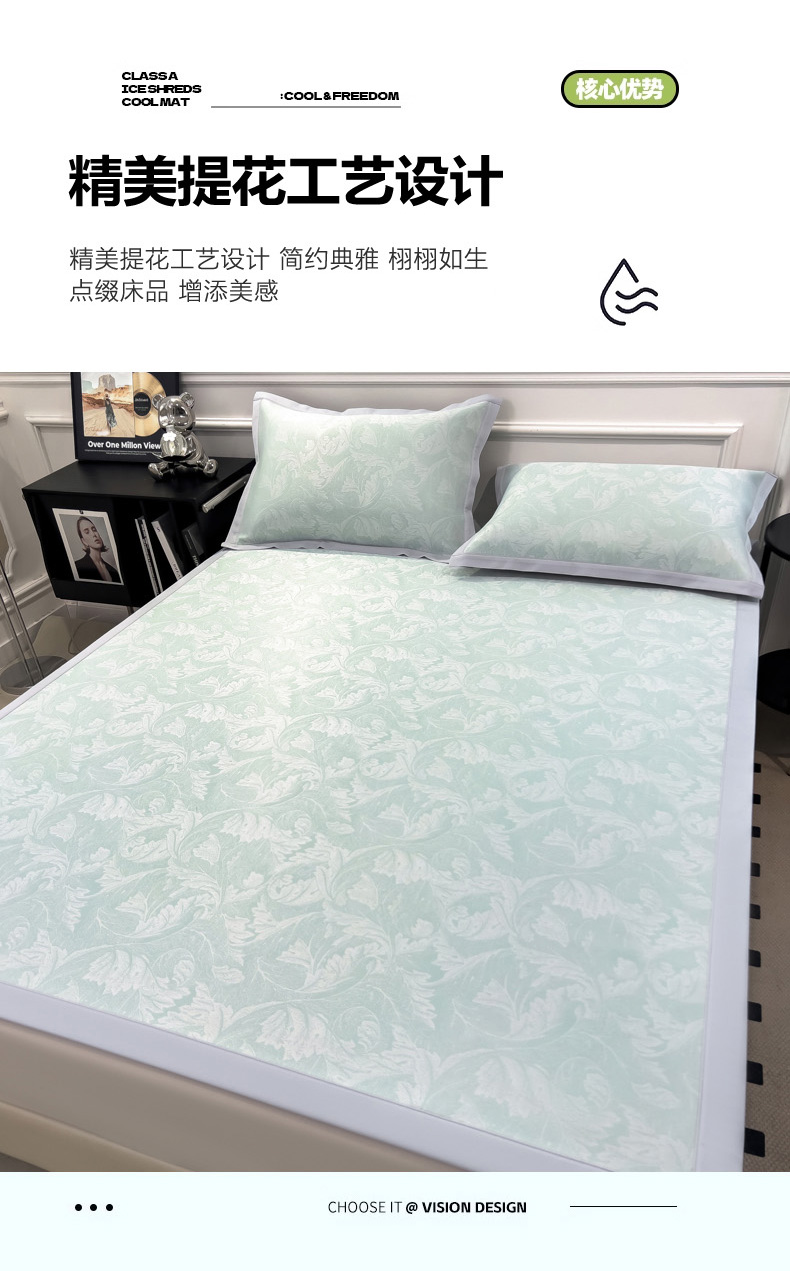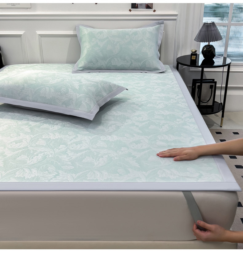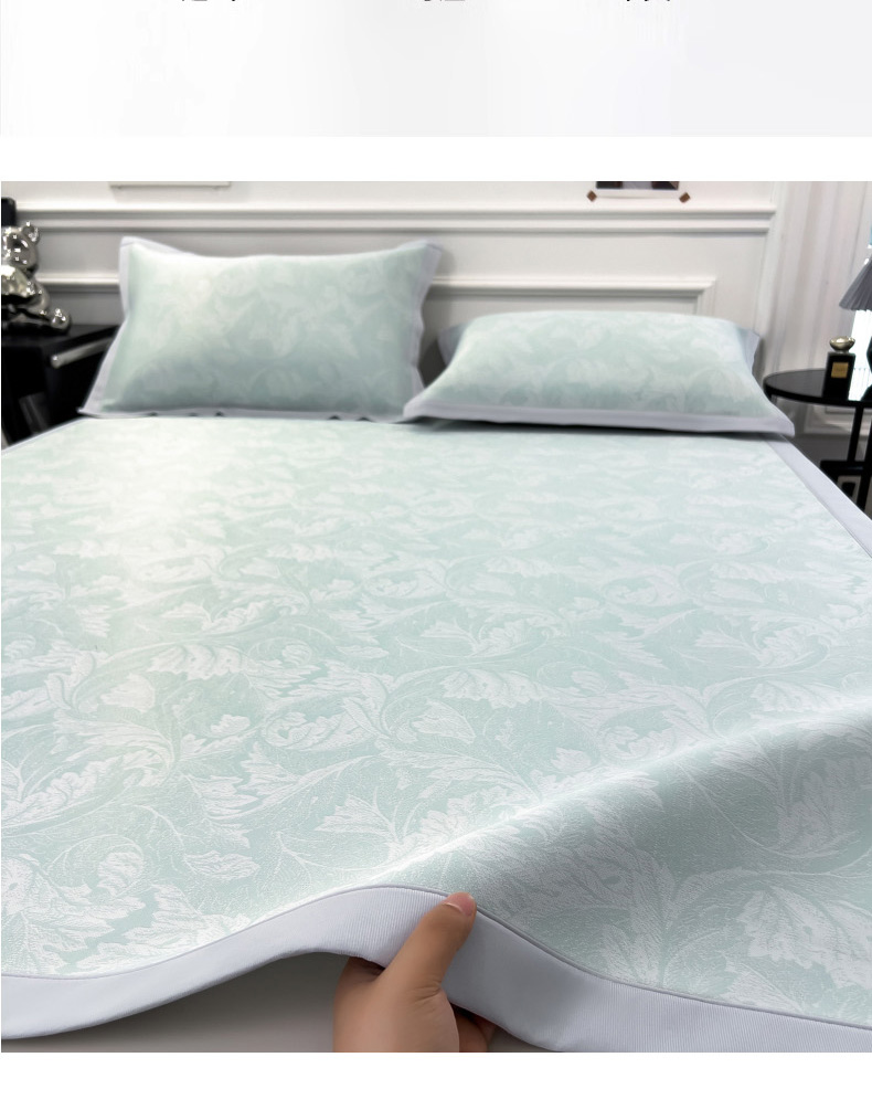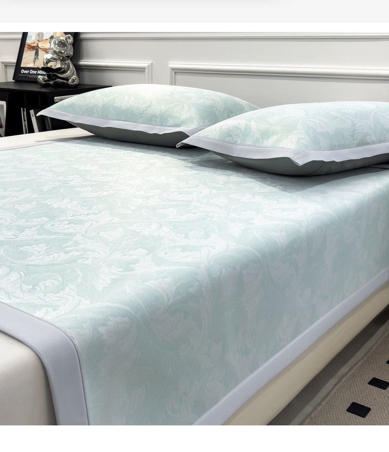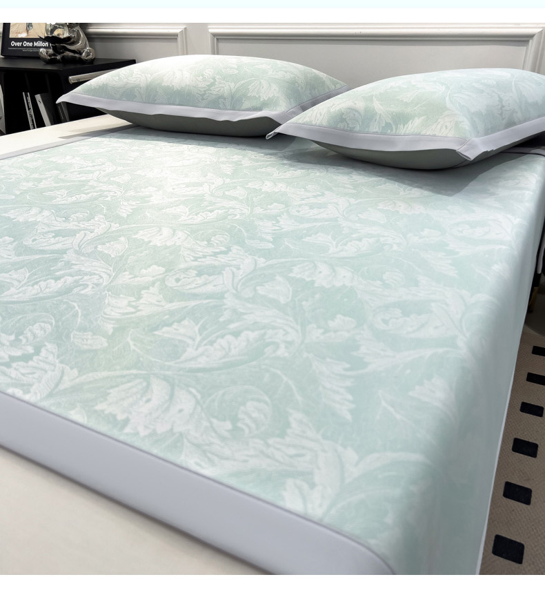 商品名称:2025新款牛奶丝提花凉感凉席系列床席款 叶之恋绿床席款