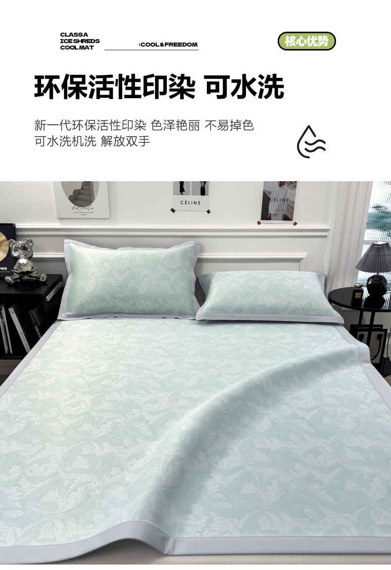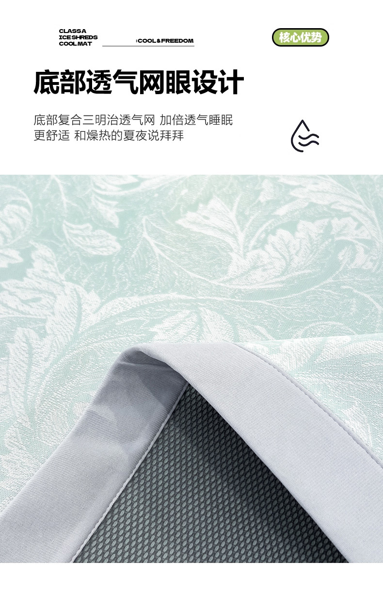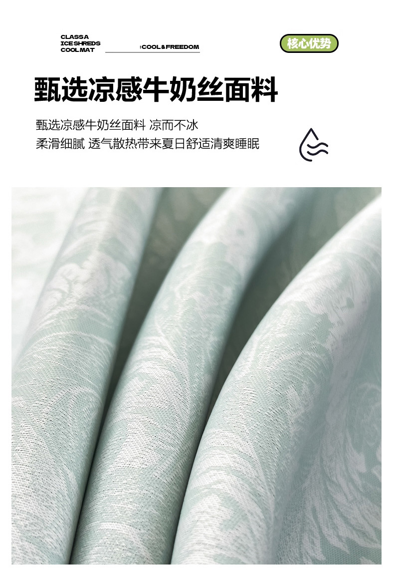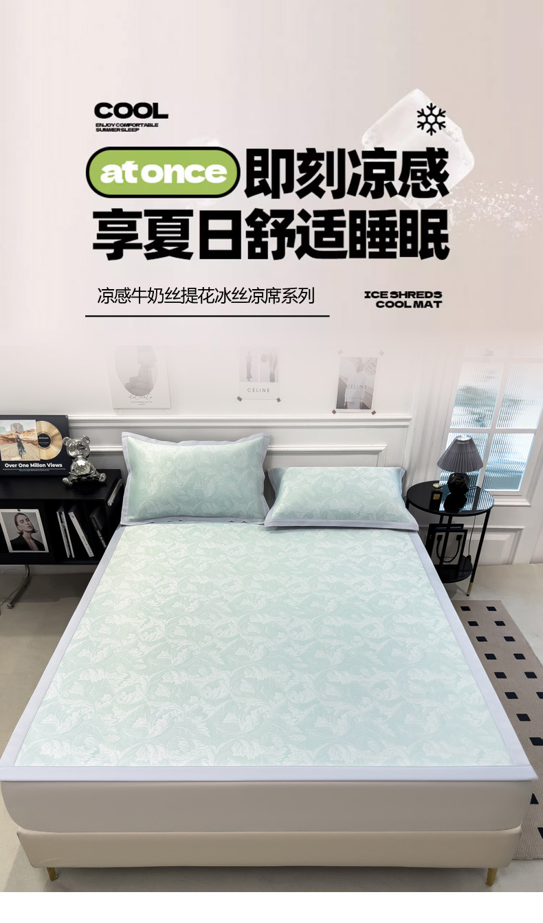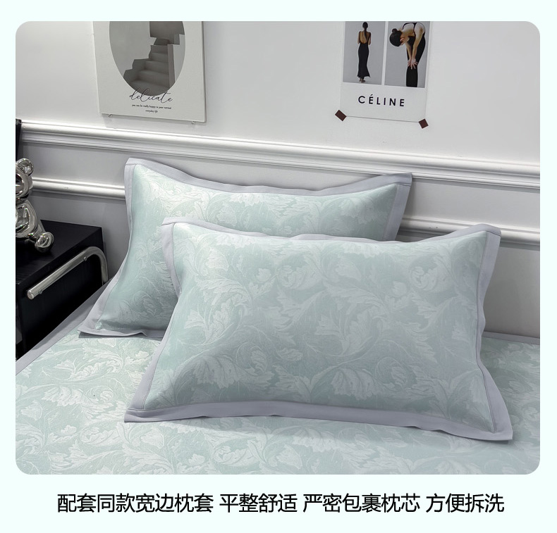 商品名称:2025新款牛奶丝提花凉感凉席系列床席款 叶之恋绿床席款