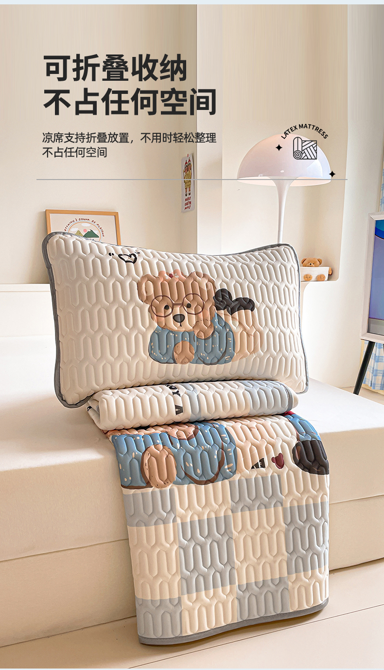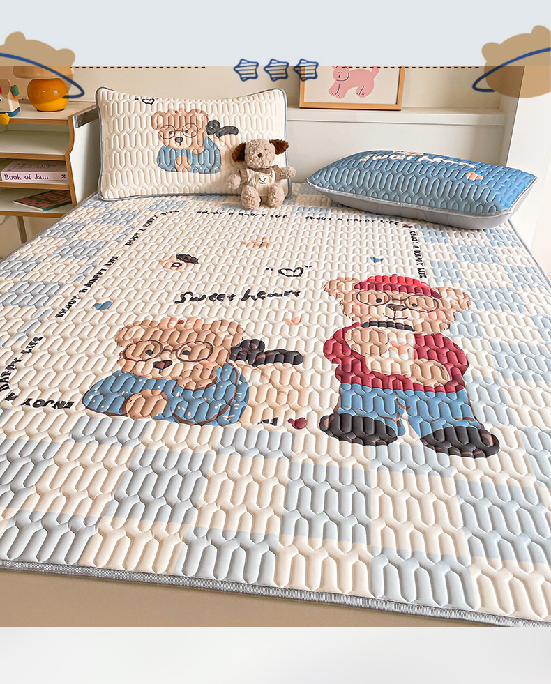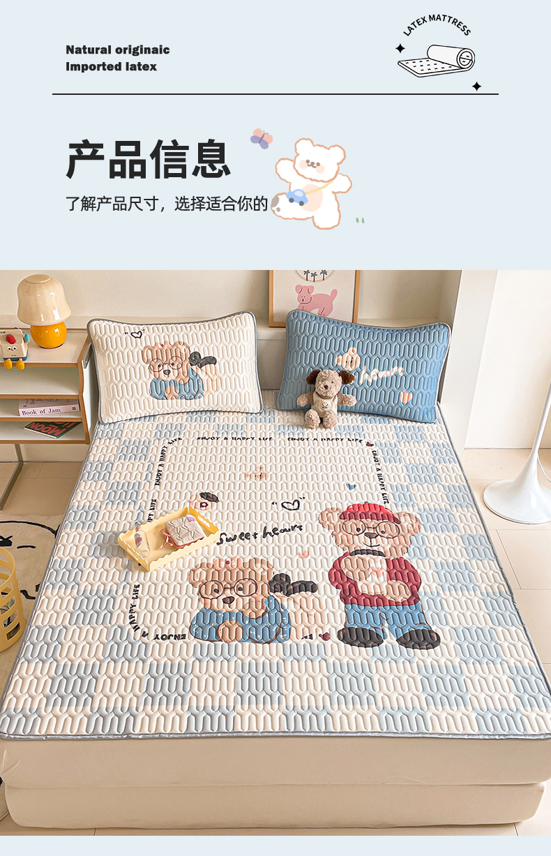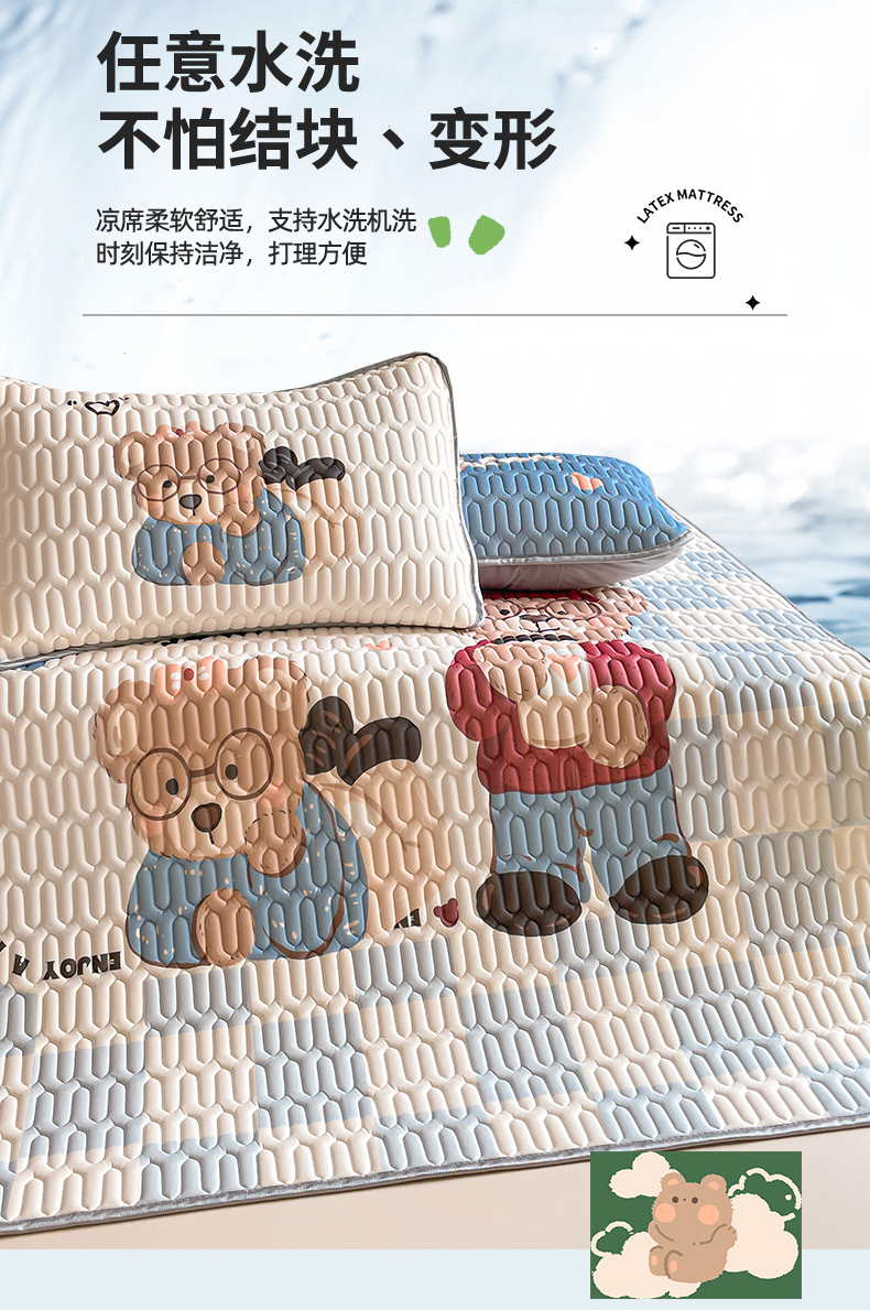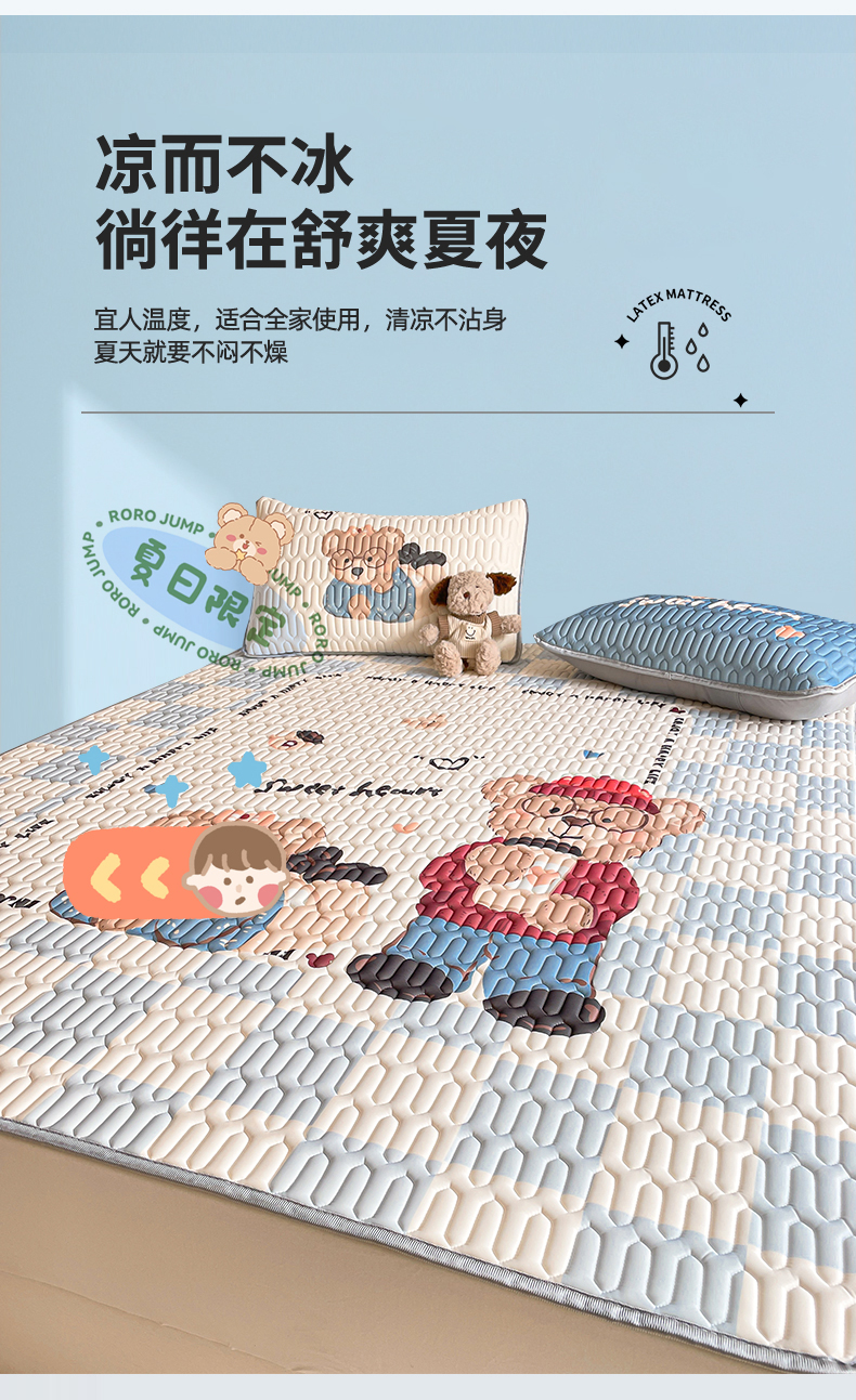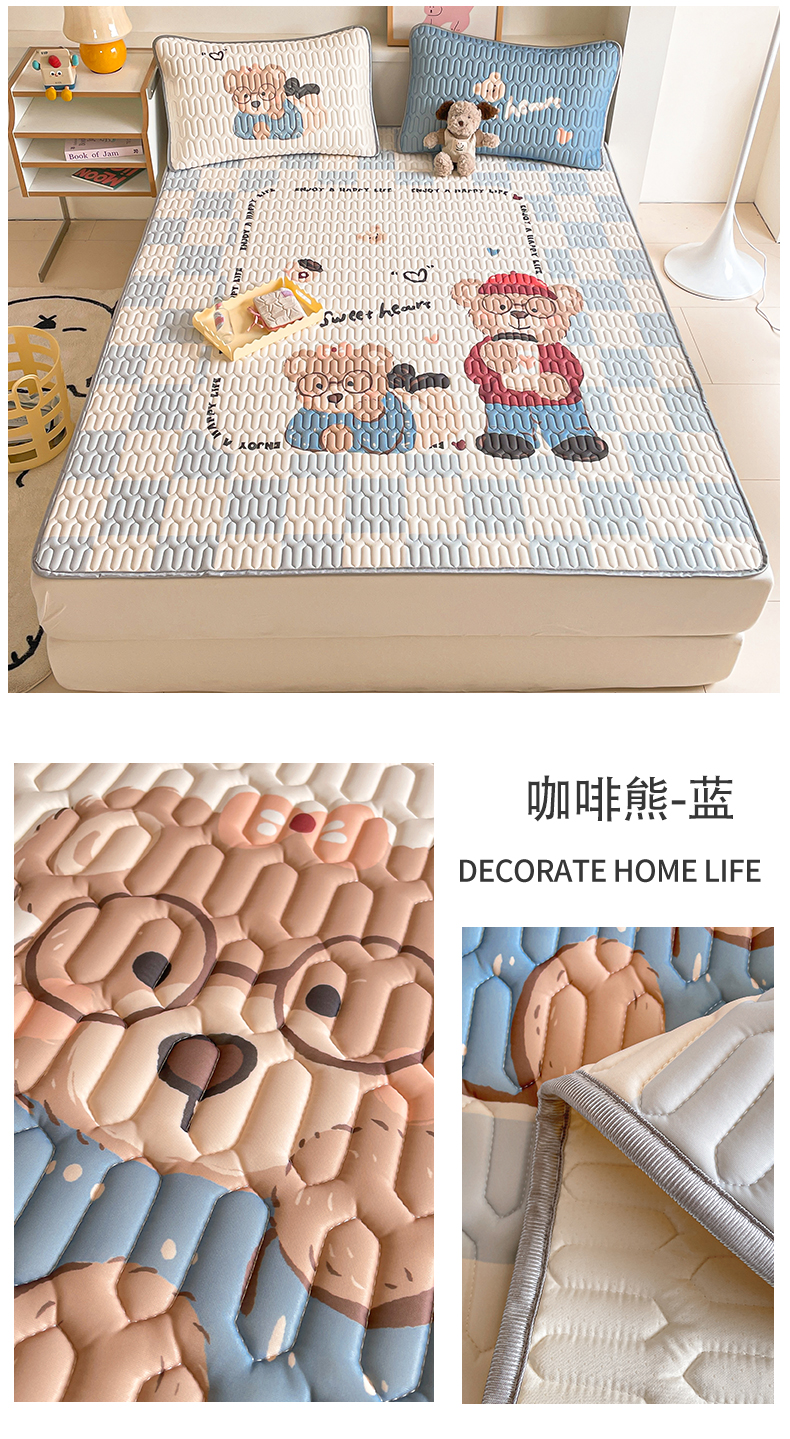 商品名称:布卢姆床垫 2025新款A类大版数码凉感丝乳胶凉席 咖啡熊-蓝