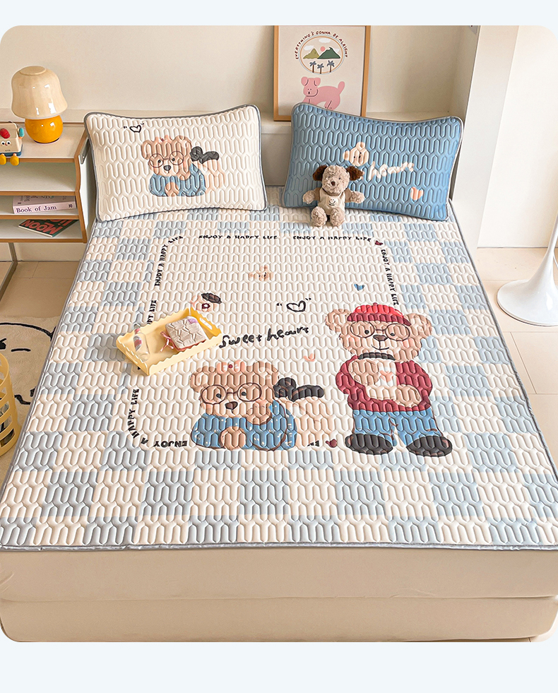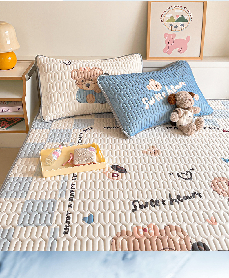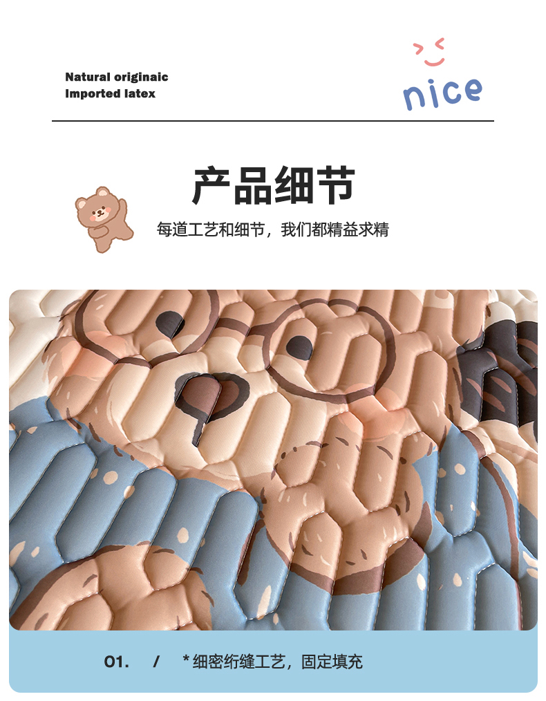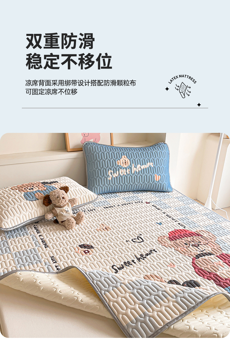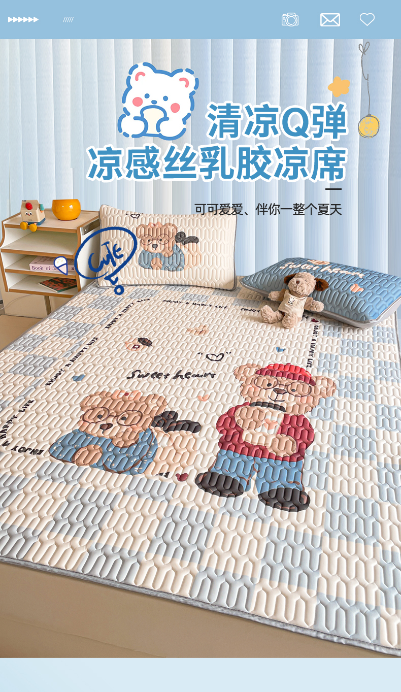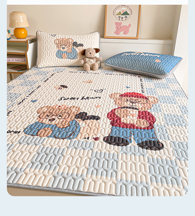 商品名称:布卢姆床垫 2025新款A类大版数码凉感丝乳胶凉席 咖啡熊-蓝