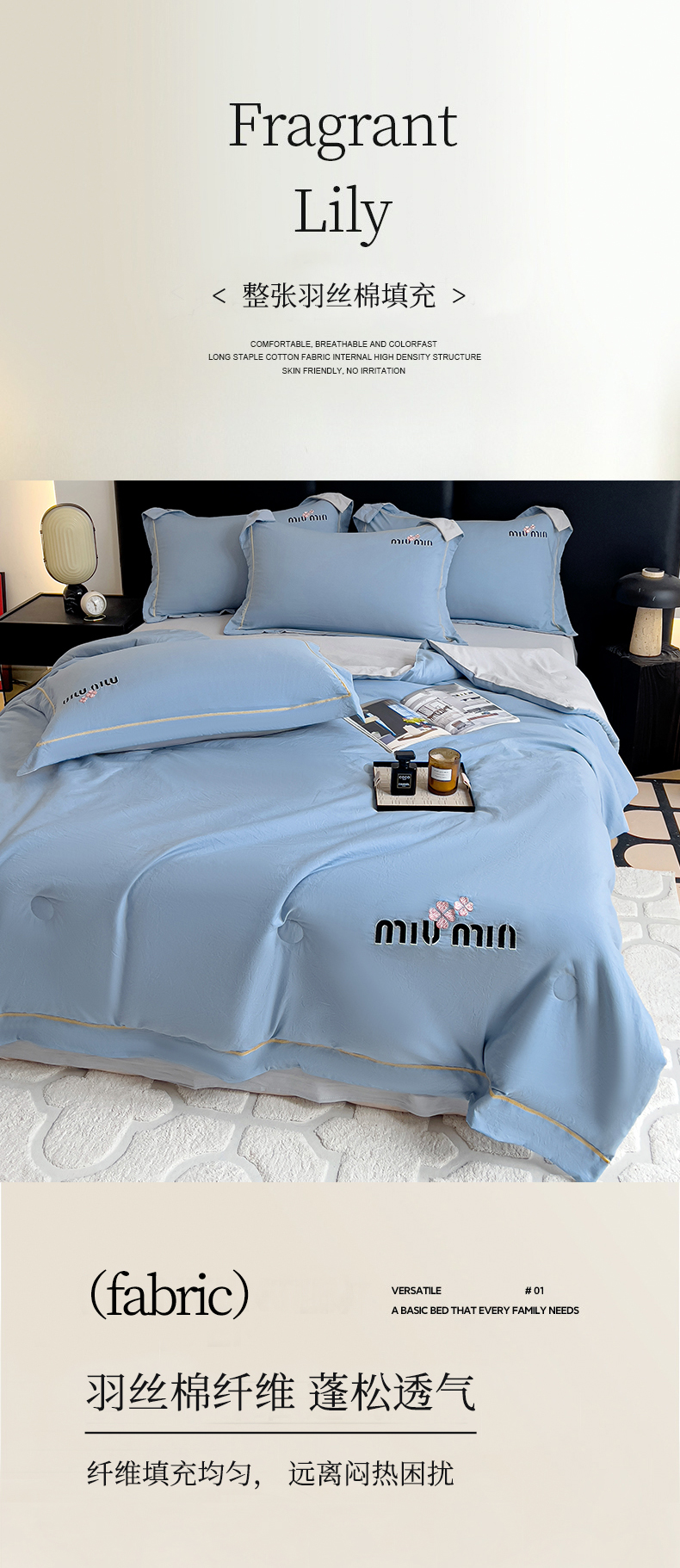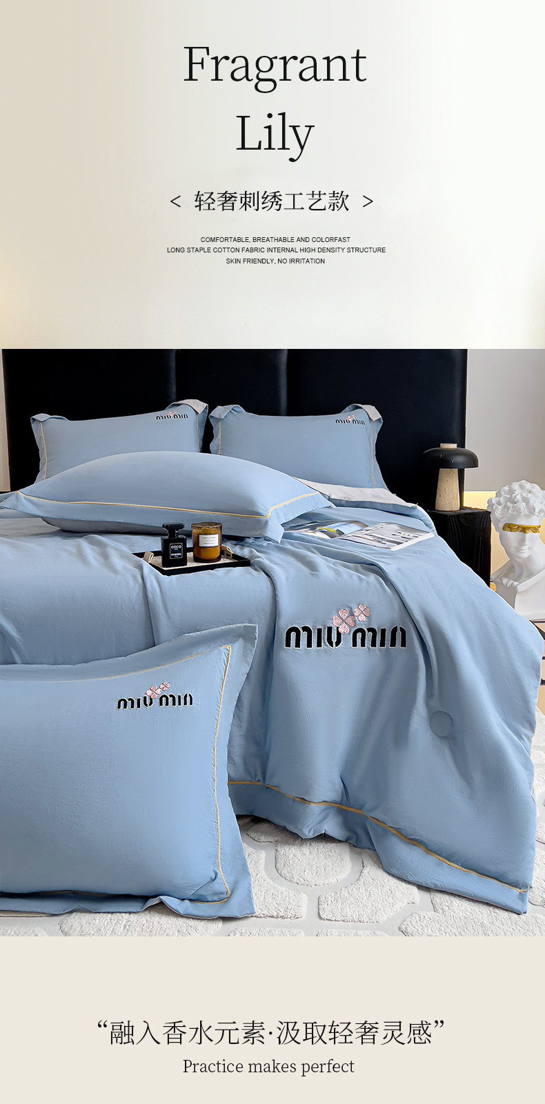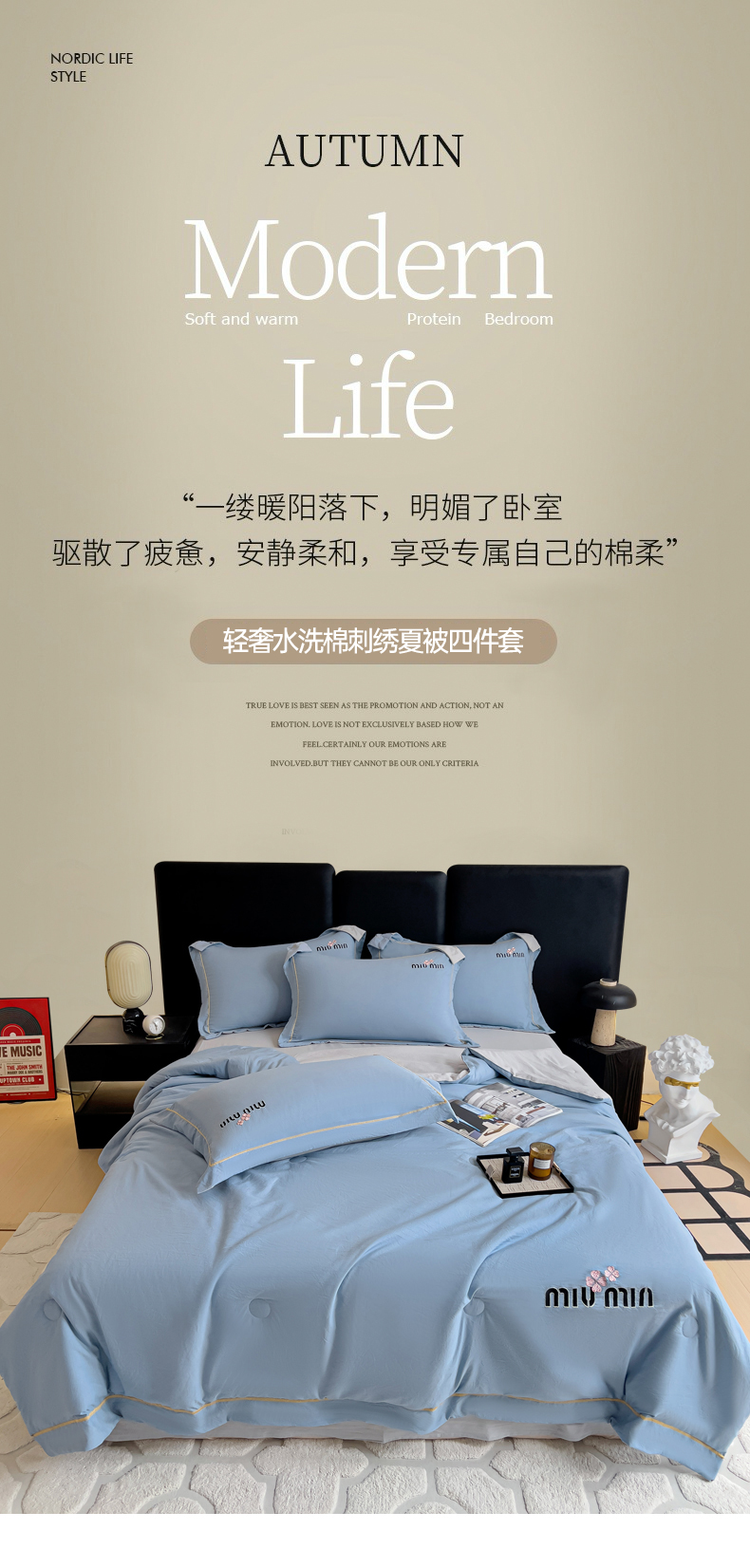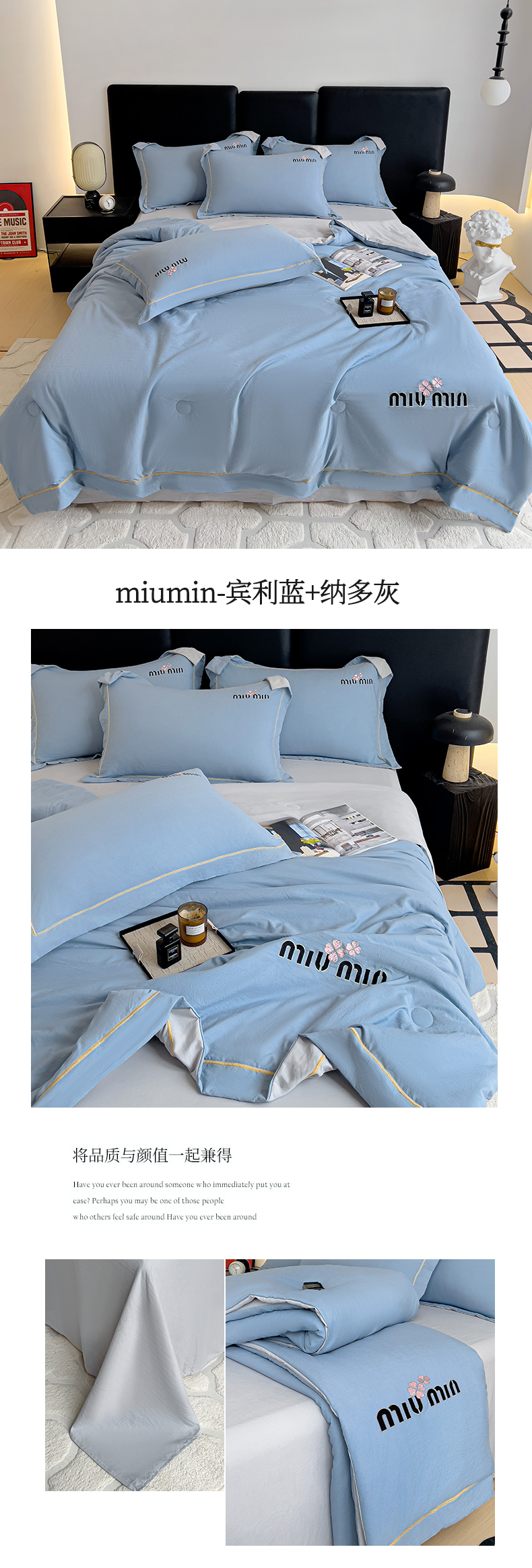 当前位置: 91家纺网 > 商品网购 > 床品套件 > 四件套 > 夏被四件套 > 灰鲸 2025新款轻奢miumin刺绣水洗棉夏被四件套系列 miumin-宾利蓝+纳多灰