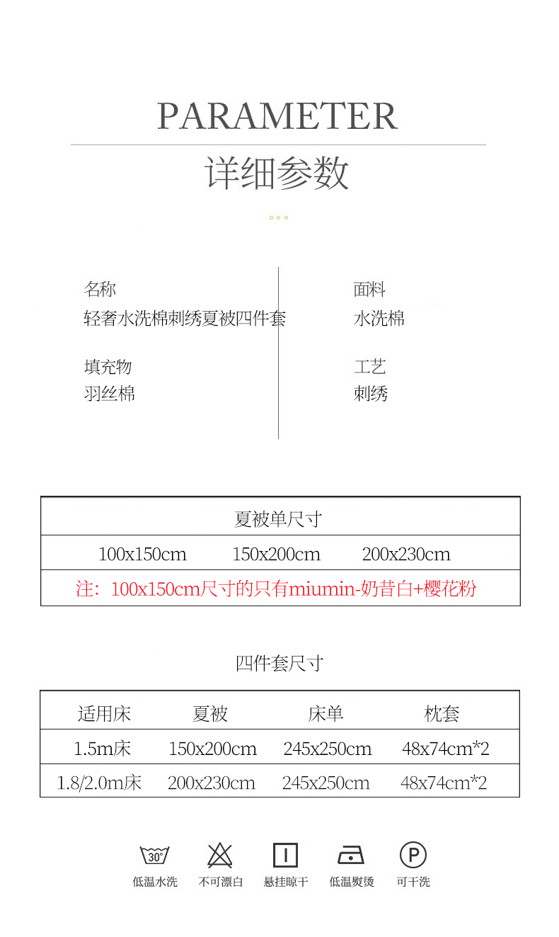 150x200cm夏被四件套 | ¥70.00 |
