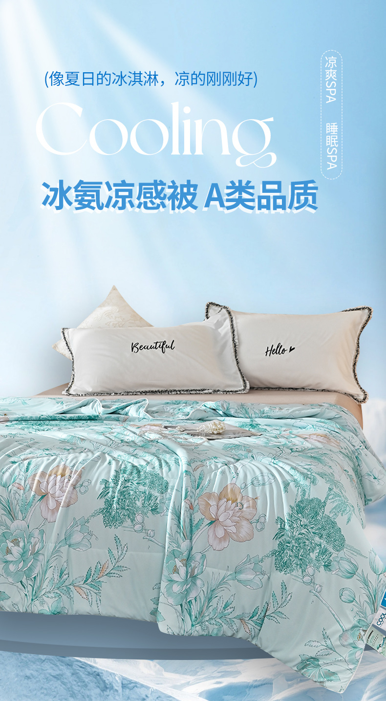 (总)佳居缘 2025新款A类冰感丝夏凉被,豆沙,牛油果绿,浅紫,水绿,天空蓝