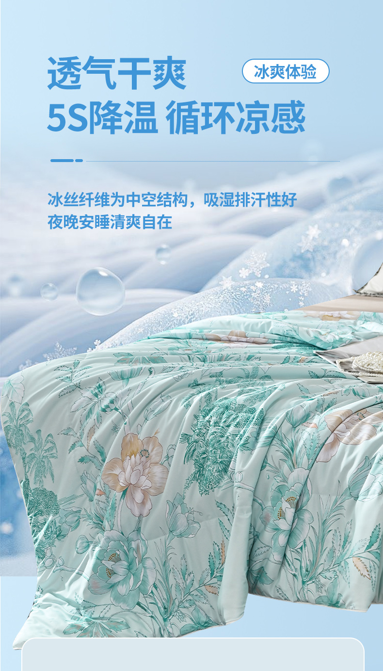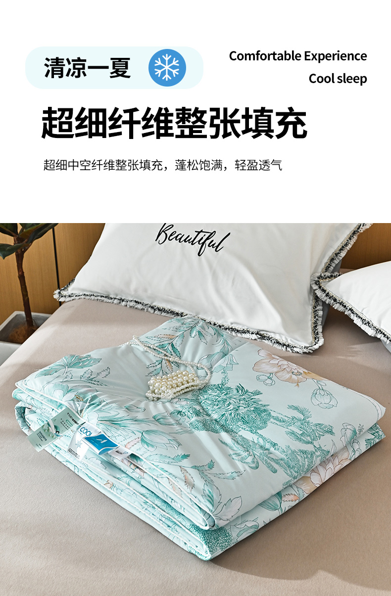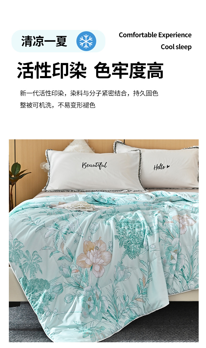 (总)佳居缘 2025新款A类冰氨双面数码印花凉感夏被,繁花-粉,繁花-绿,锦绣-白,锦绣-绿,林鹿-蓝