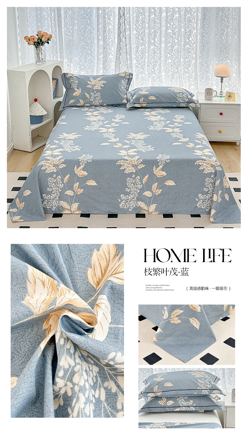 锦罗绣 2025新款全棉13376印花套件单品单床单 枝繁叶茂-蓝