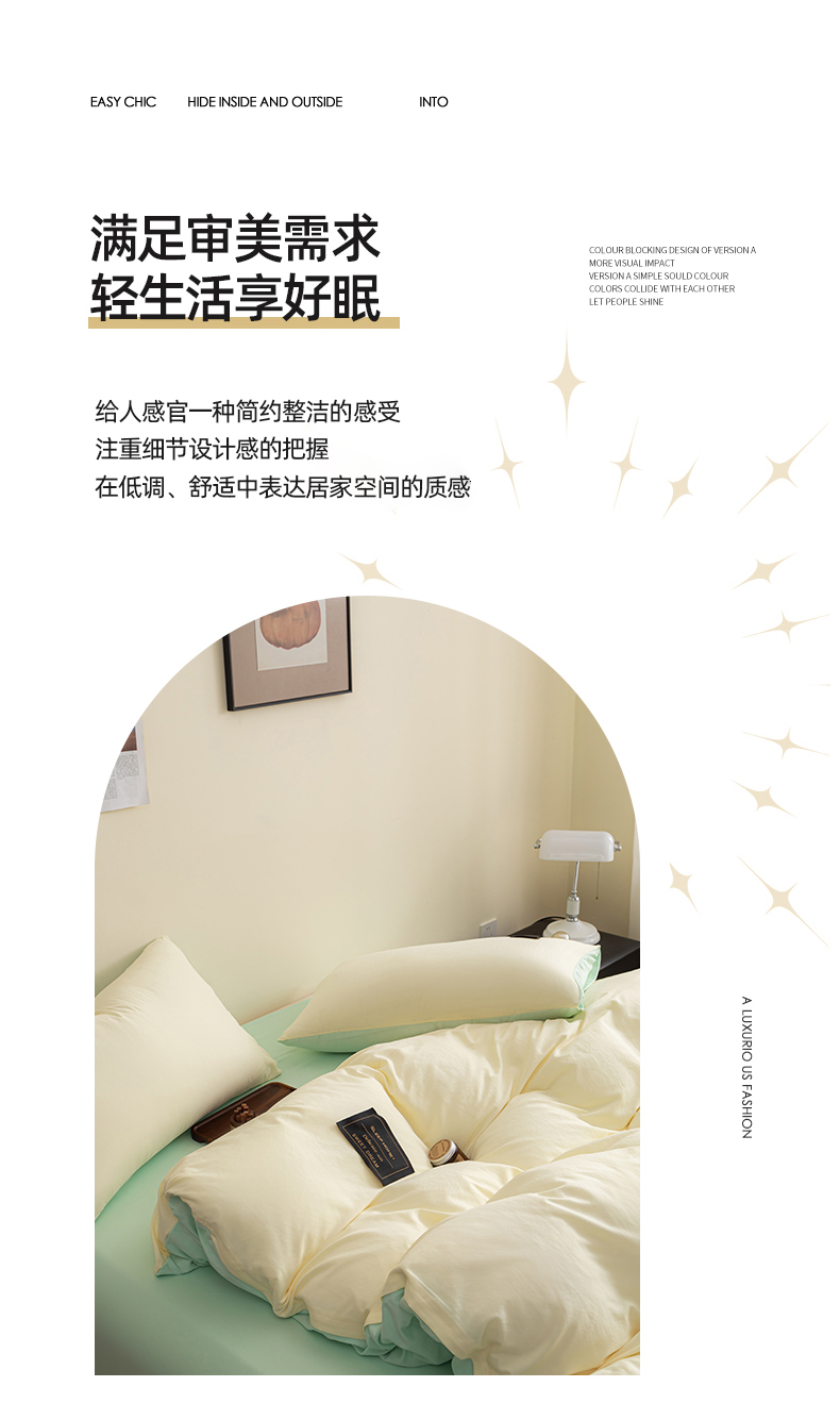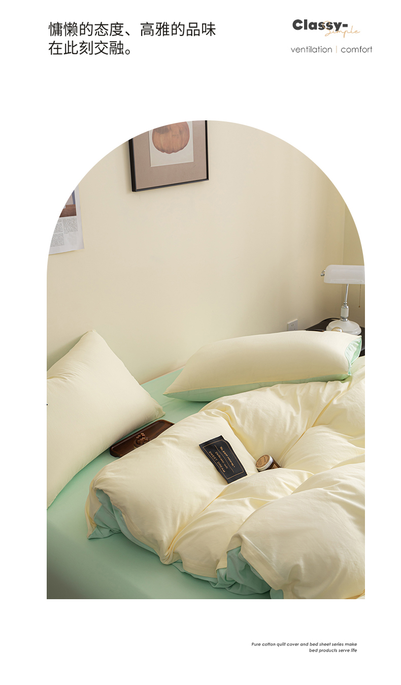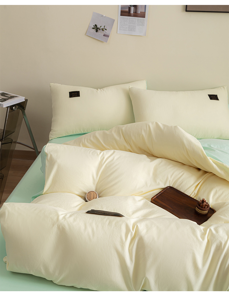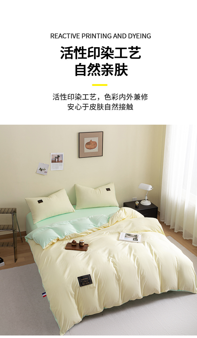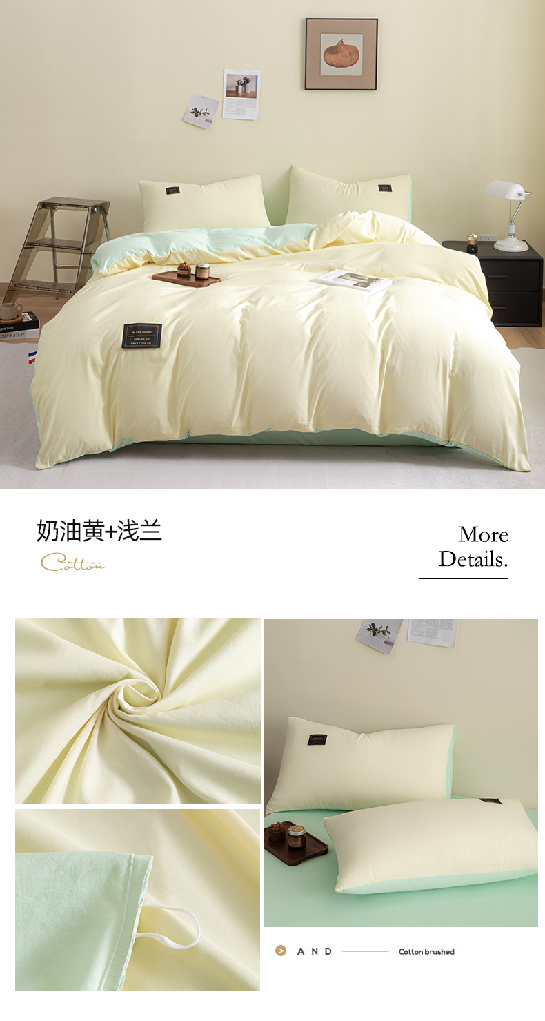 商品名称:恋之语 2025新款90克纯色双拼单被套 奶油黄+浅兰