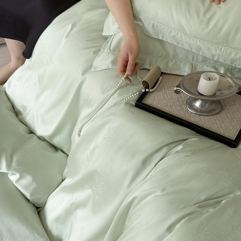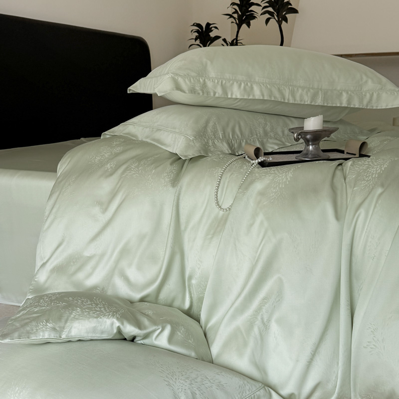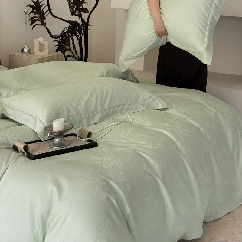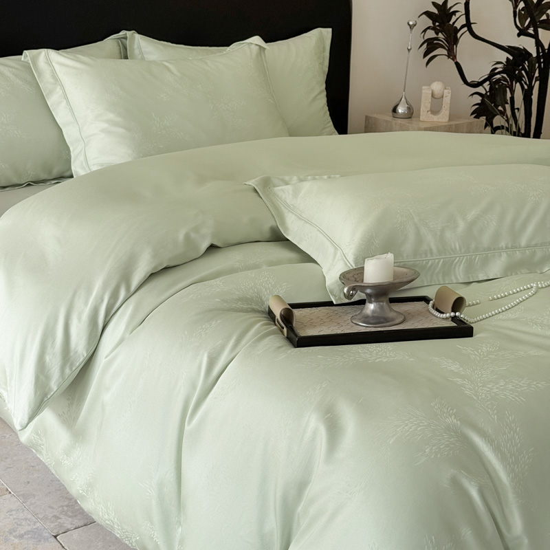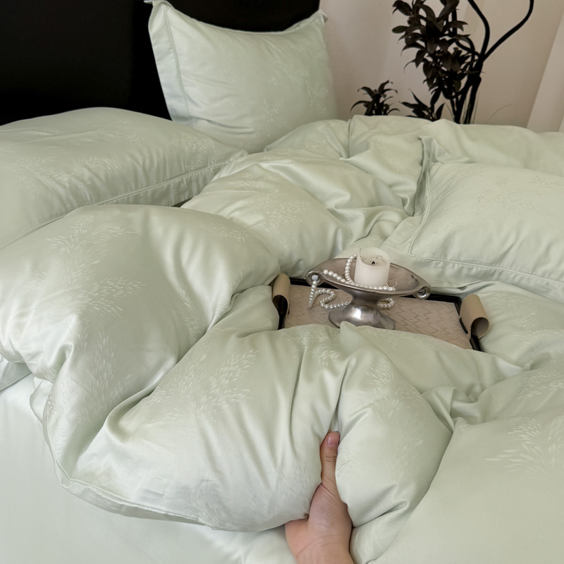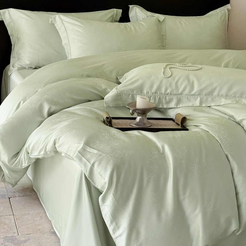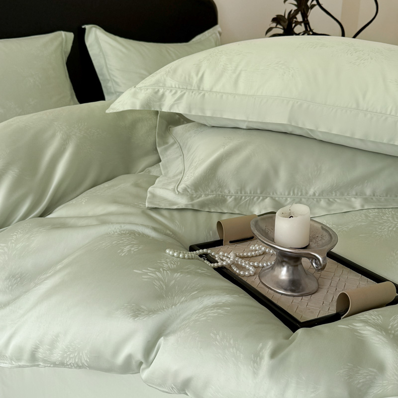 莱豫家纺 2025新款天丝棉提花四件套 雪莉绿