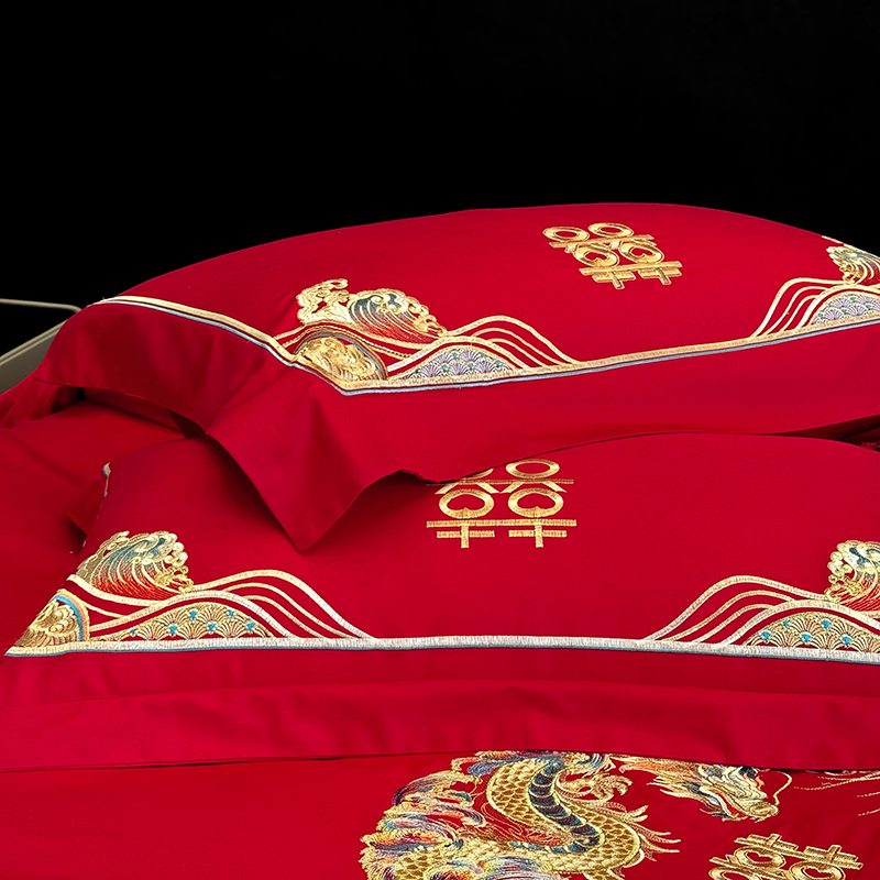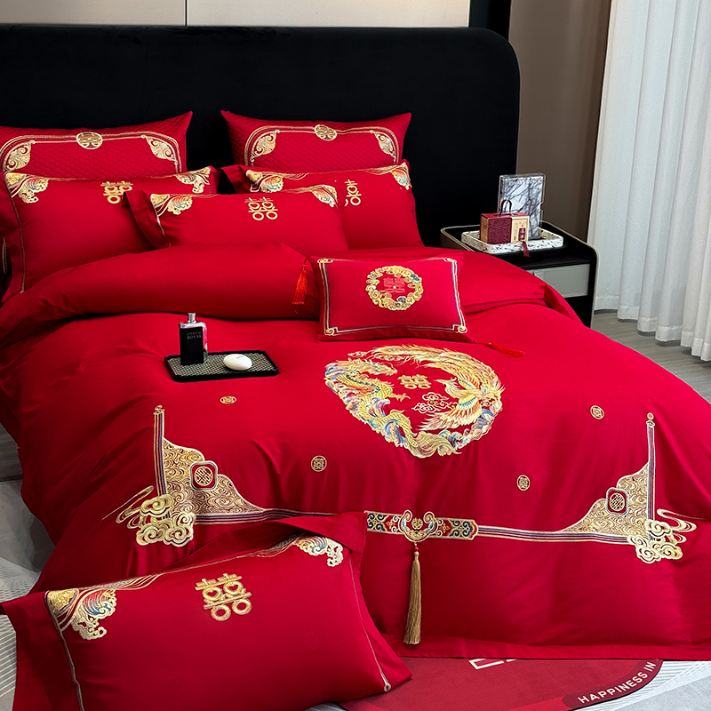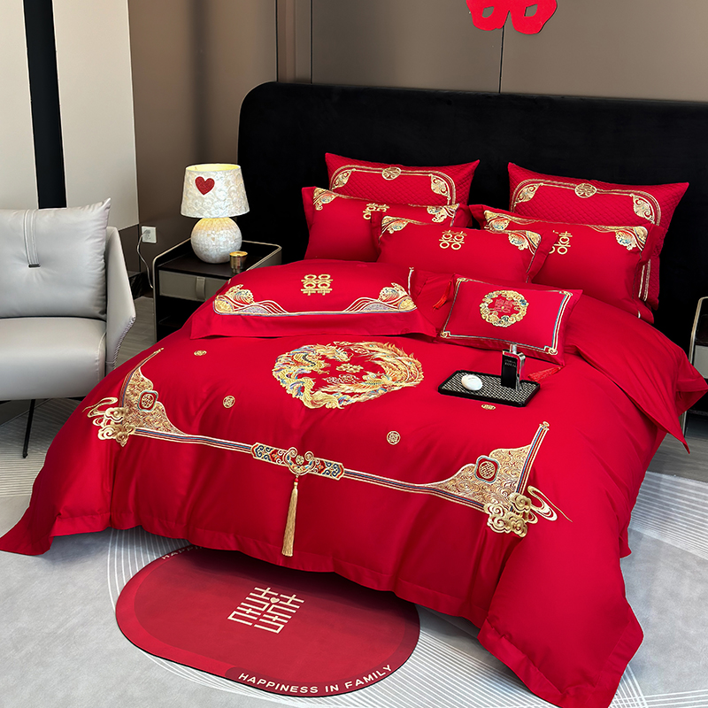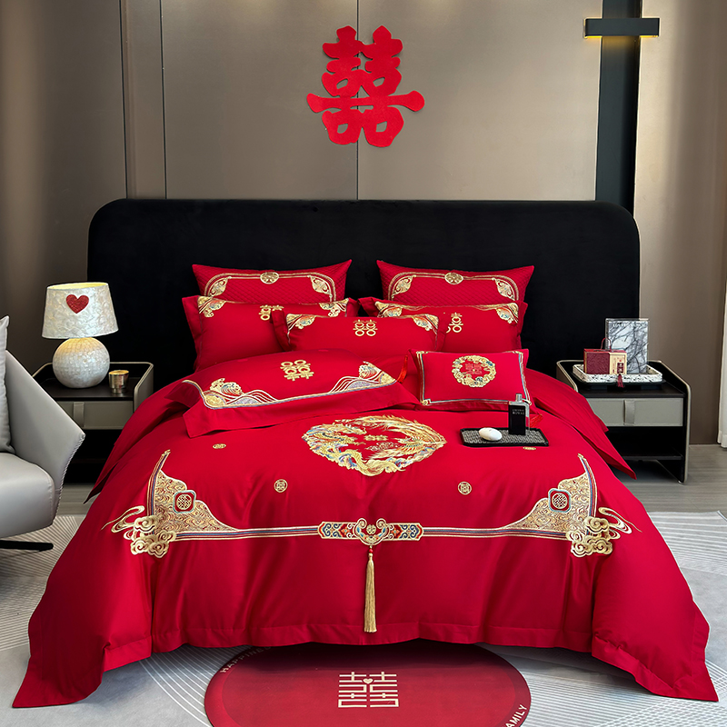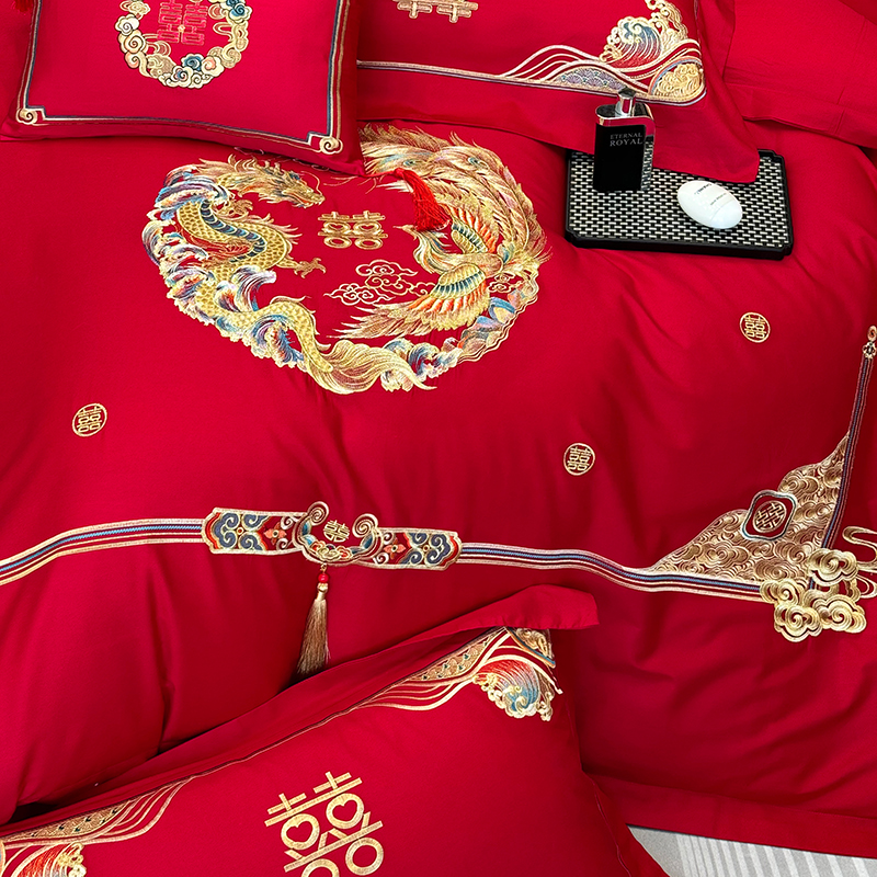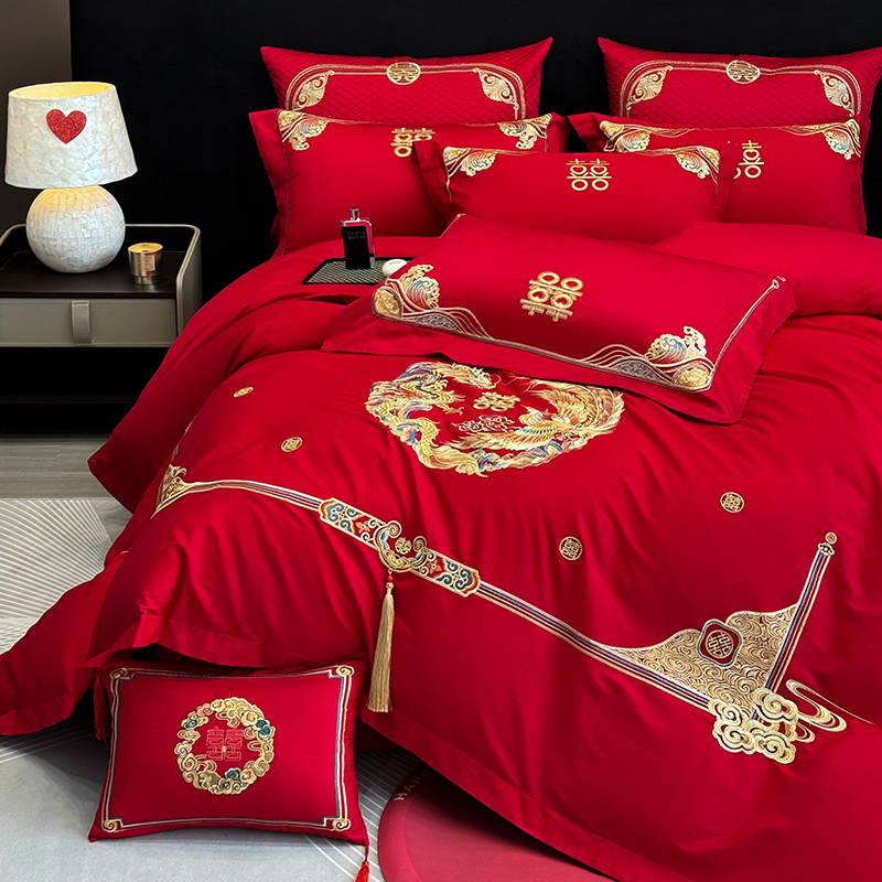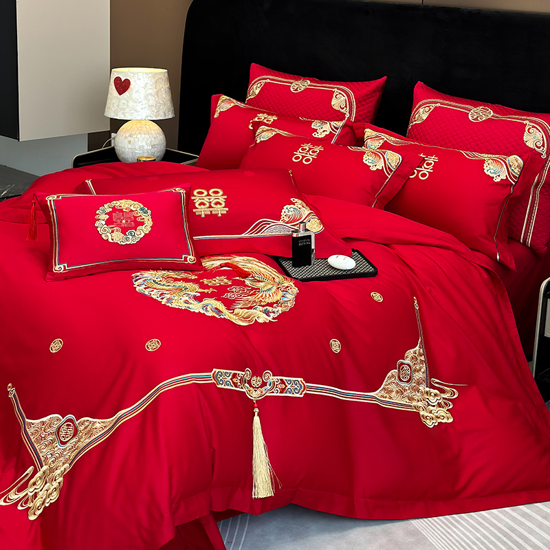 商品名称:张公子婚庆馆2025新款长绒棉新中式精美刺绣婚庆四件套(控价不低于328) 佳偶天成