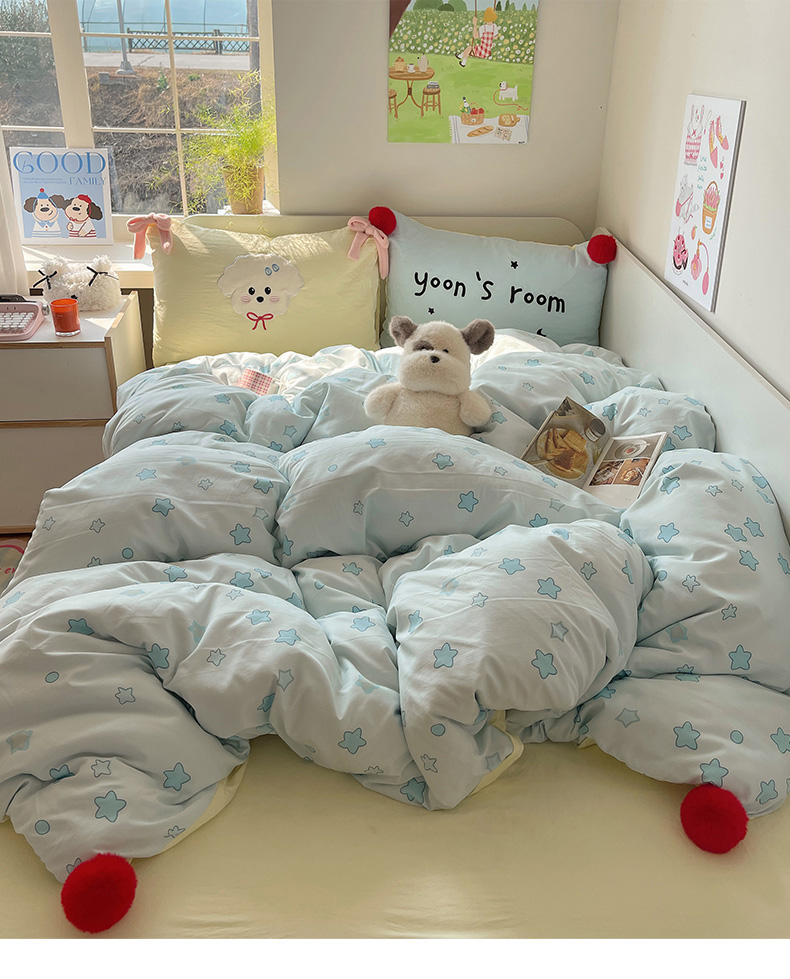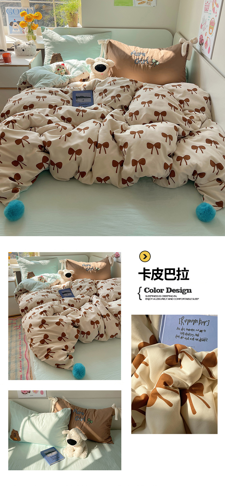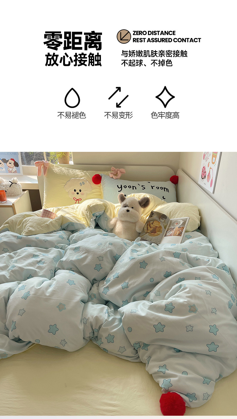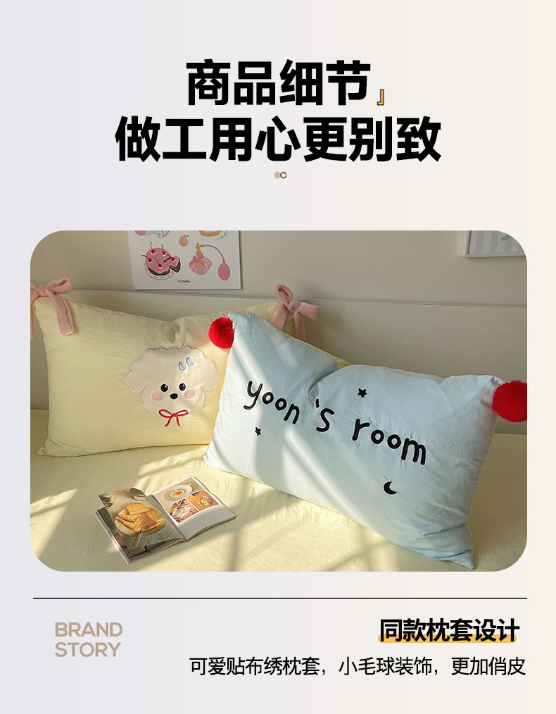 当前位置: 91家纺网 > 商品网购 > 床品套件 > 四件套 > 水洗棉四件套 > 轻奢坊 2025新款软萌可爱韩系贴布绣毛球款水洗棉四件套 爱心猫咪