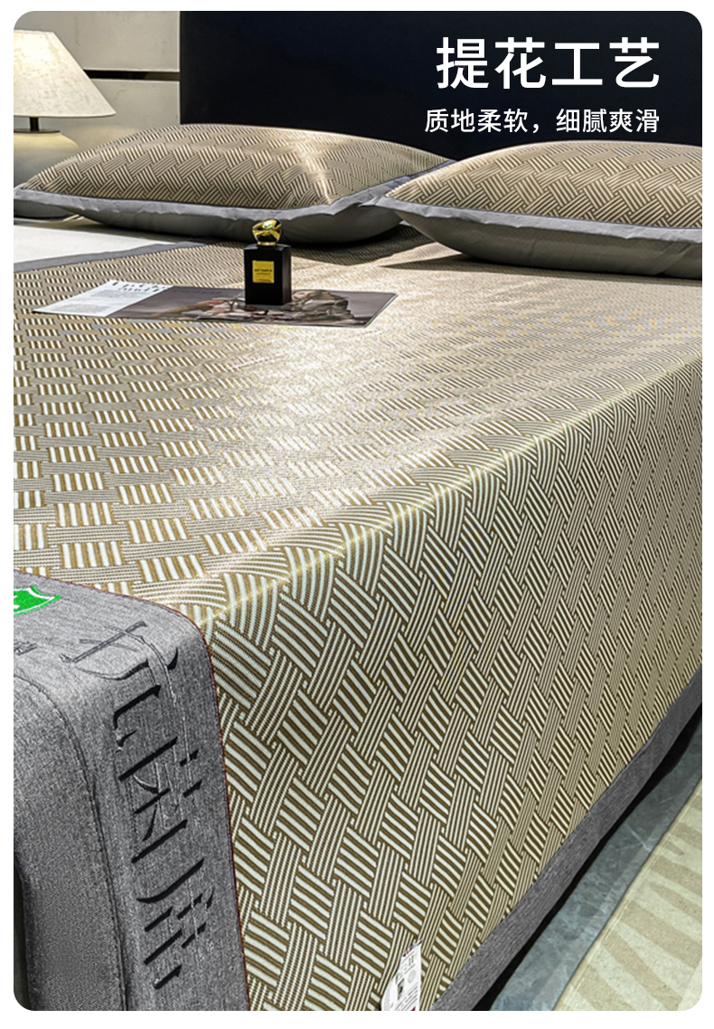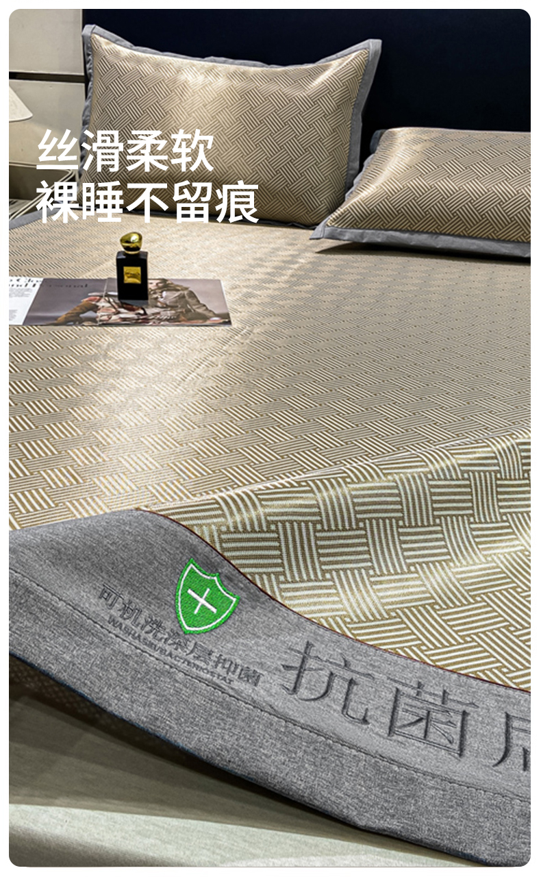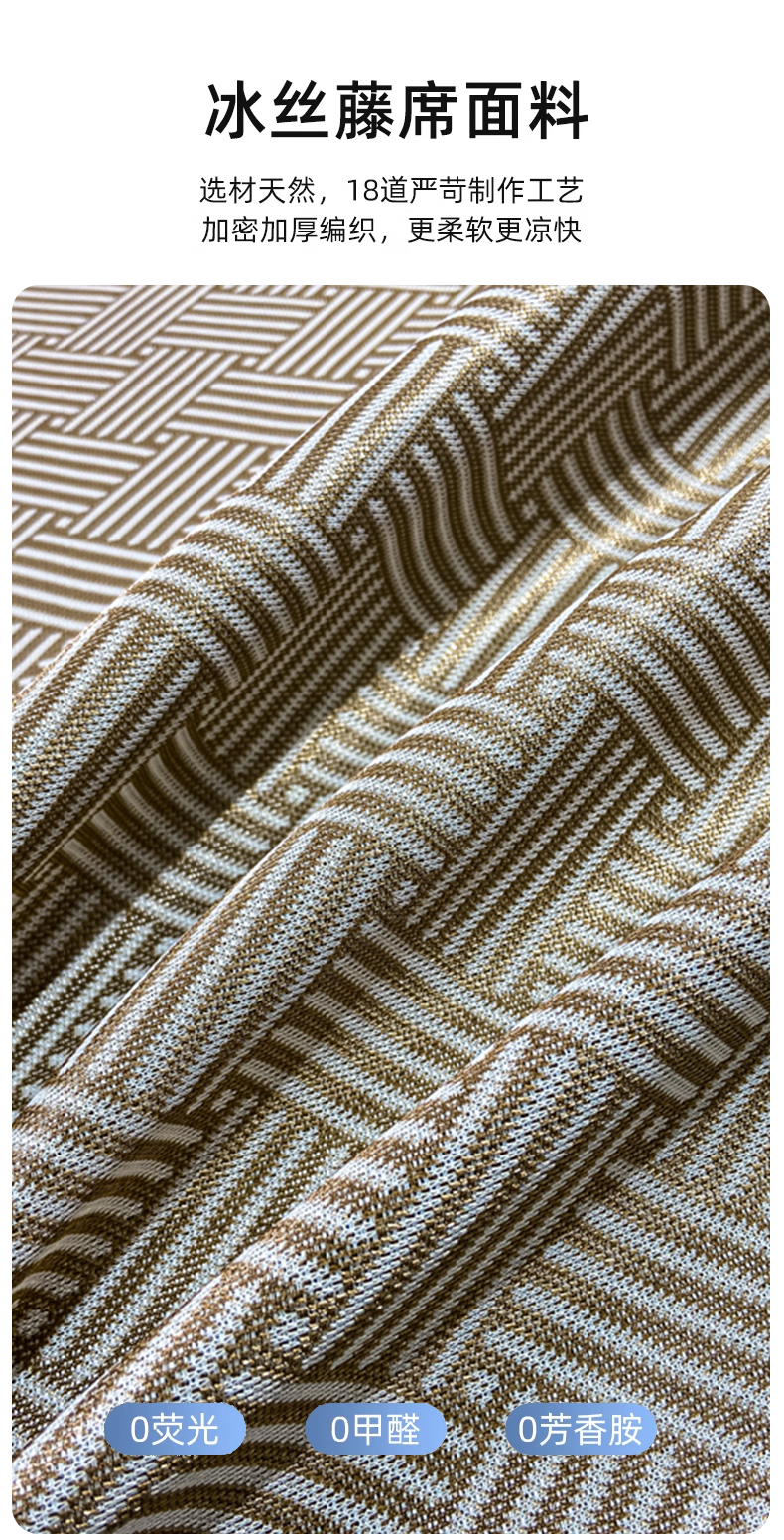 商品名称:念家居 2025新款凉感提花冰丝抗菌复合凉席可折叠冰丝席三件套 时尚咖