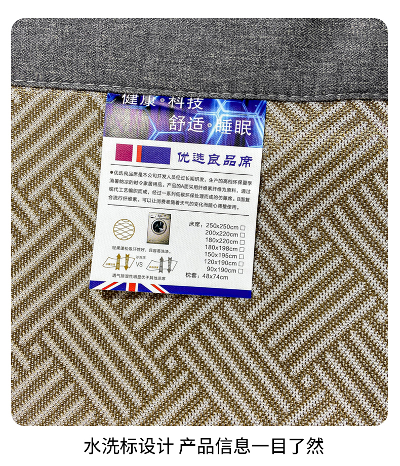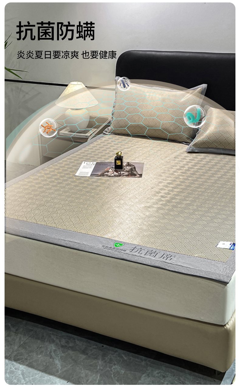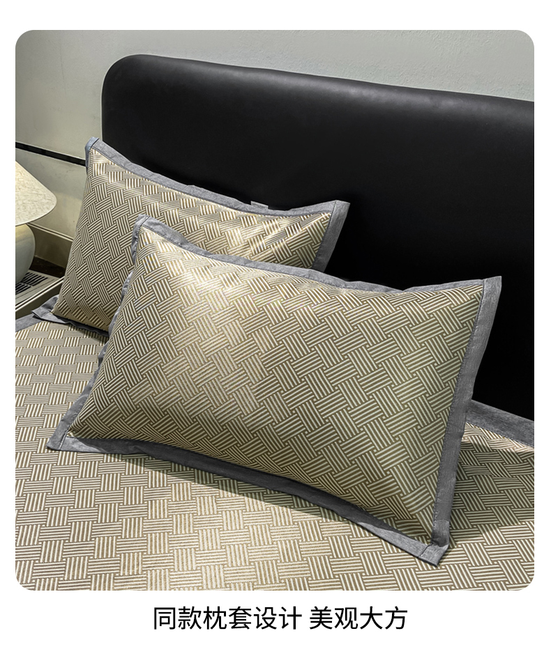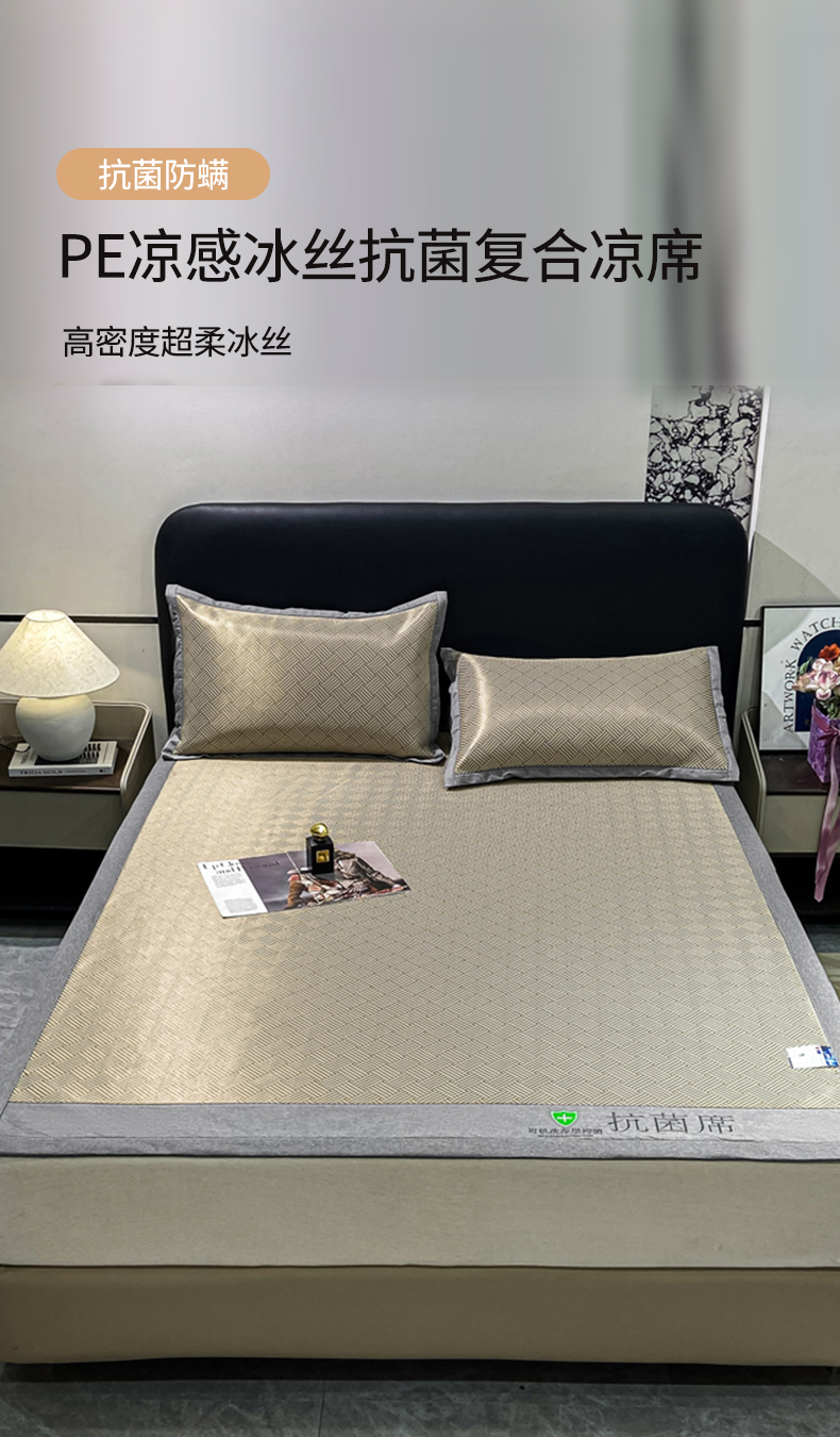 商品名称:念家居 2025新款凉感提花冰丝抗菌复合凉席可折叠冰丝席三件套 时尚咖