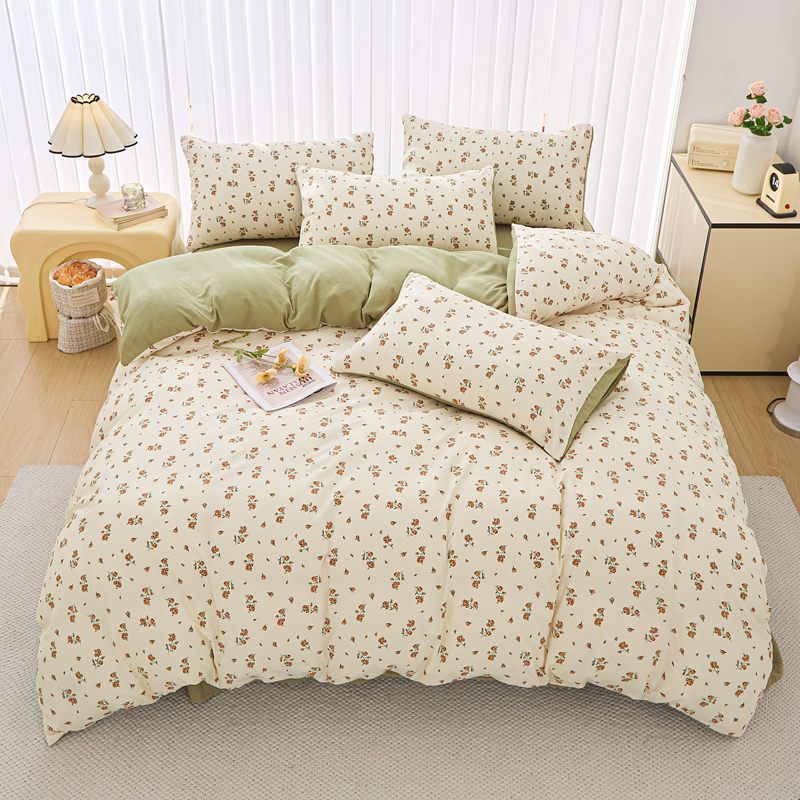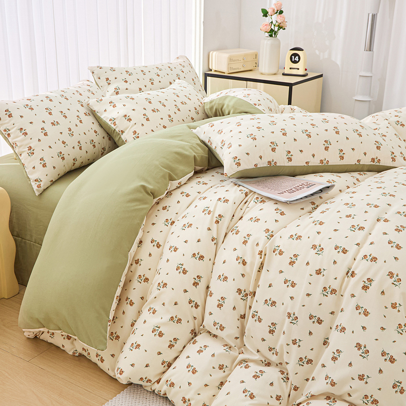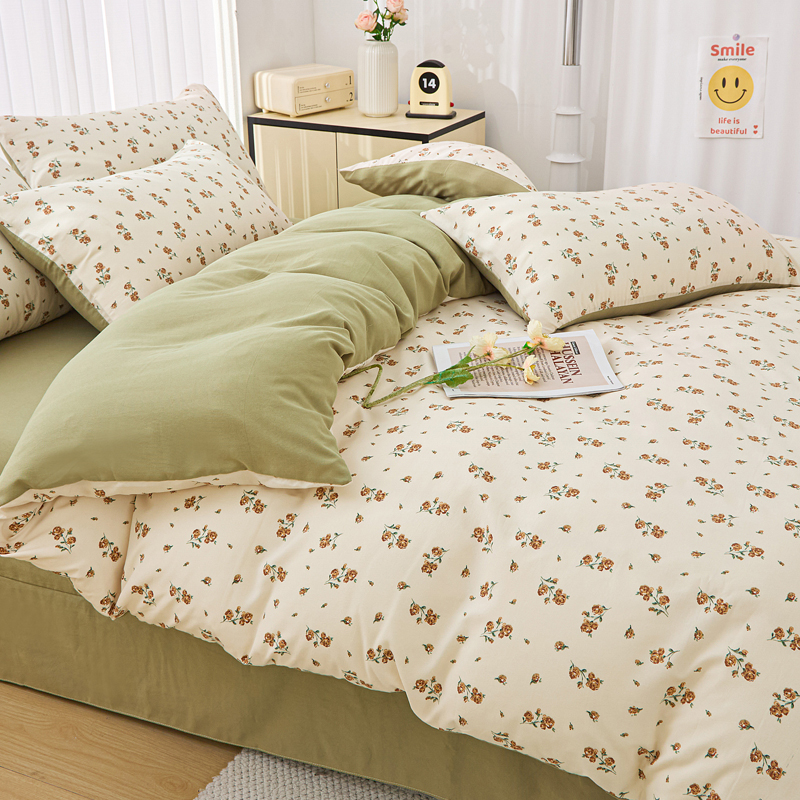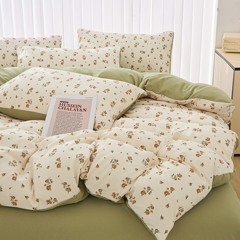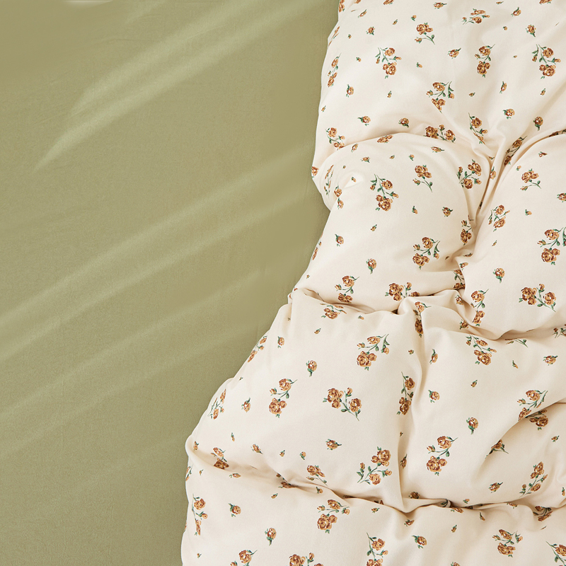 商品名称:蕾诺家纺 2025新款直播新款A类有氧提花云纱棉圆角吊边工艺四件套学生三件套 绿茵