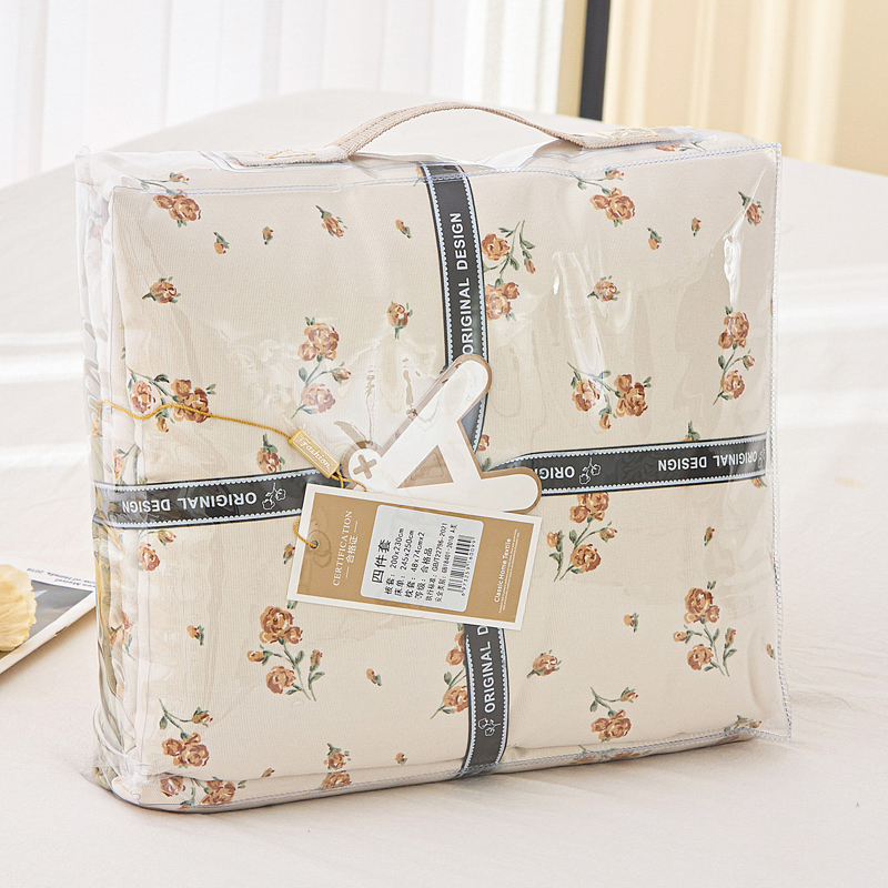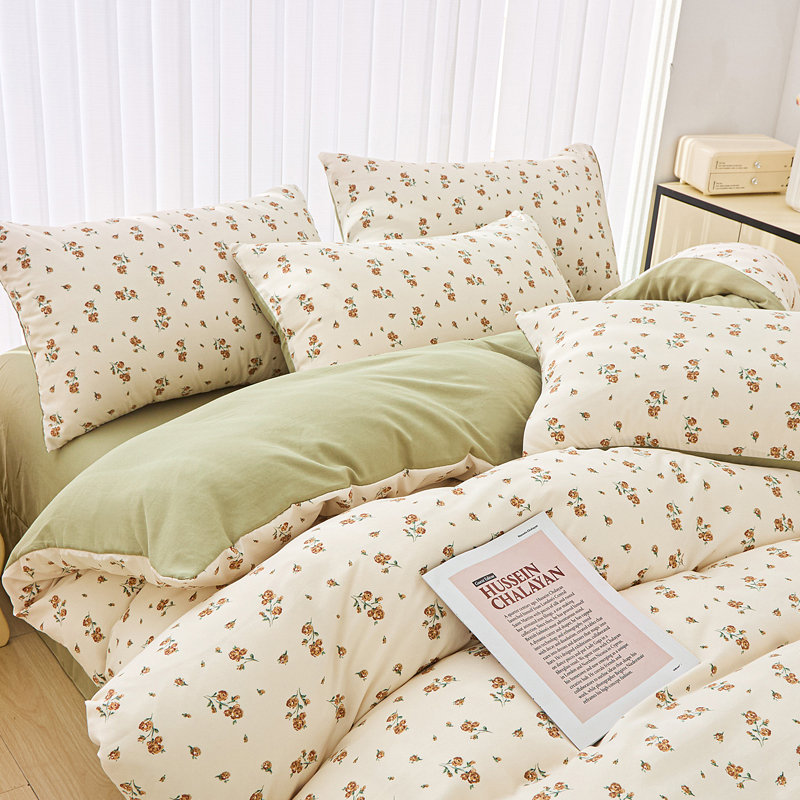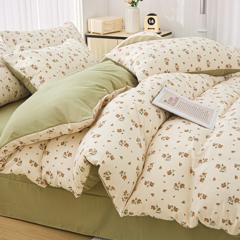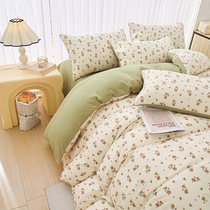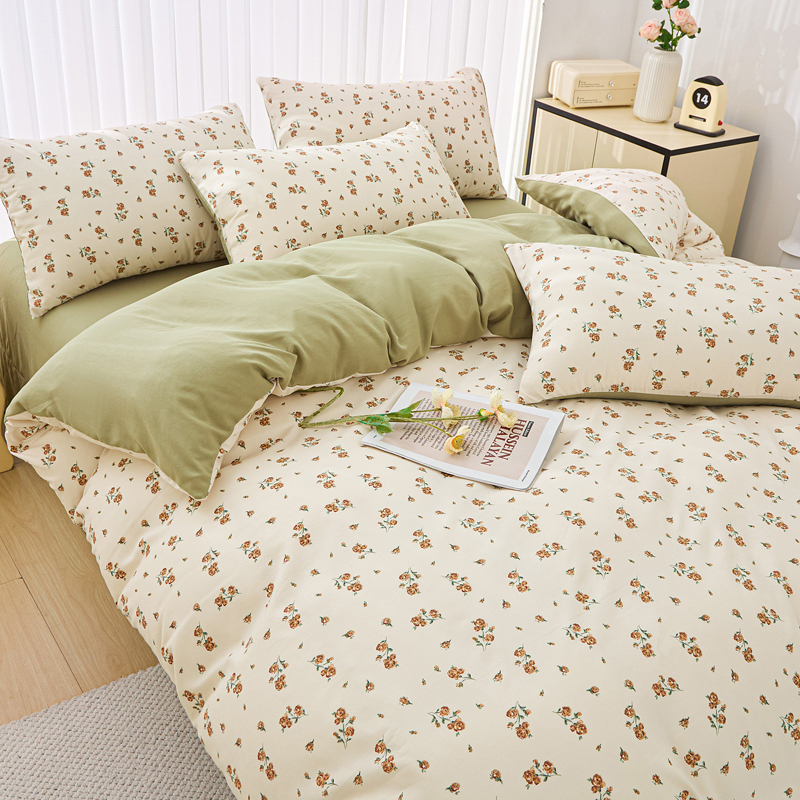 商品名称:蕾诺家纺 2025新款直播新款A类有氧提花云纱棉圆角吊边工艺四件套学生三件套 绿茵
