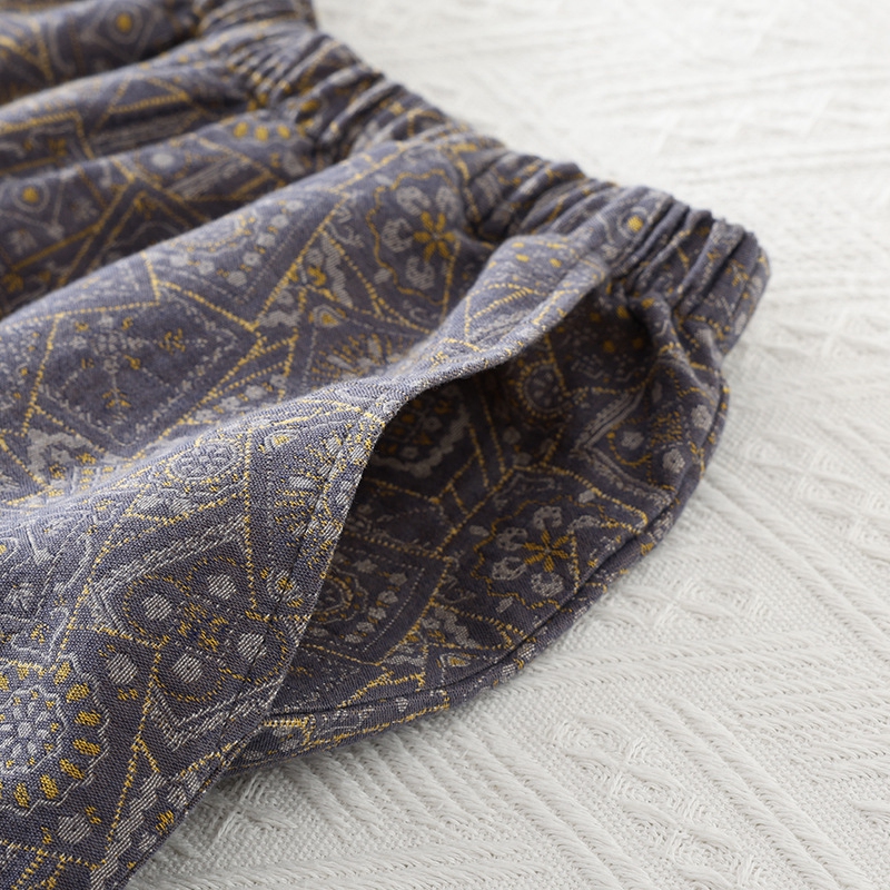 洛兰沙家居馆【只代发】【只代发】2025新款男款休闲色织纯棉双层纱布睡衣夏季薄款长袖短袖宽松家居服外穿 短袖C001