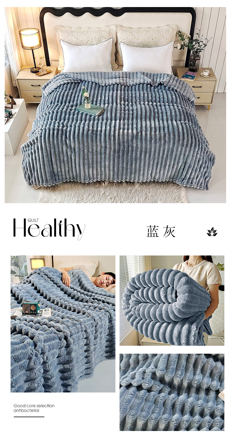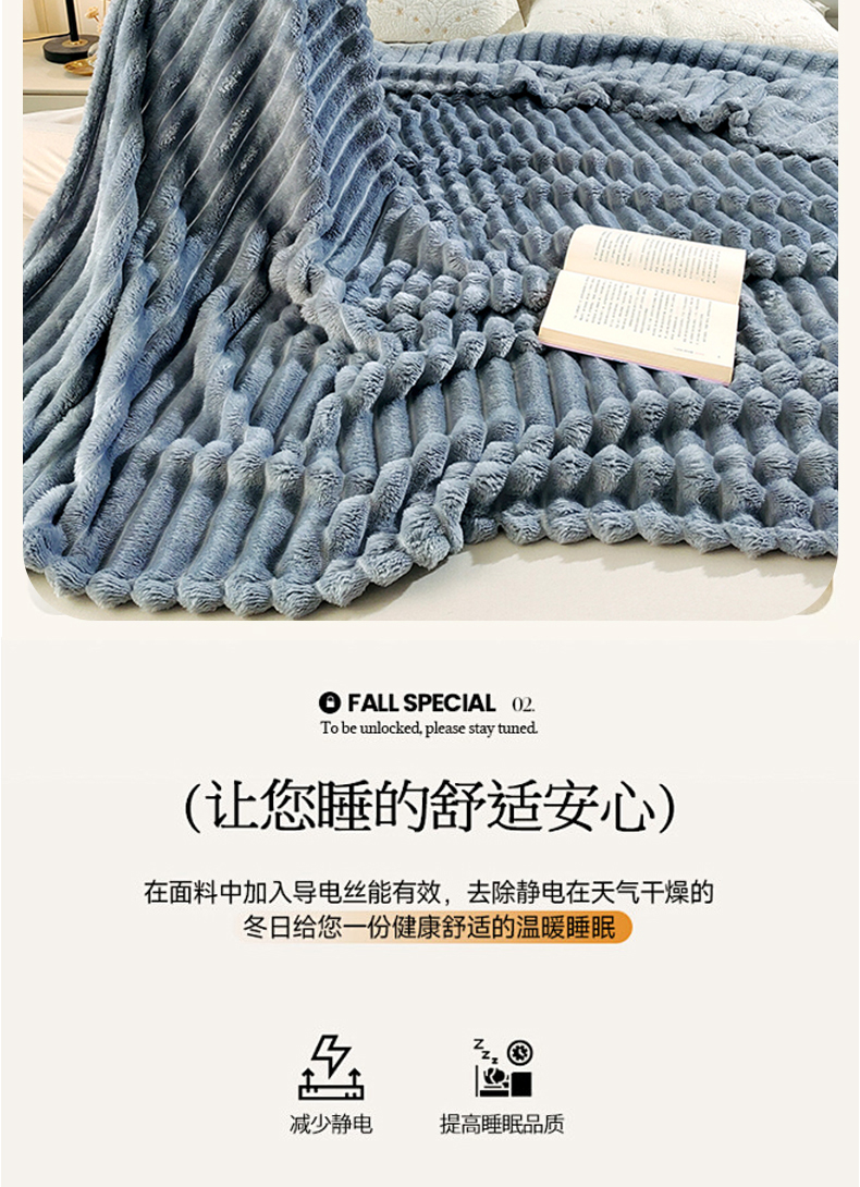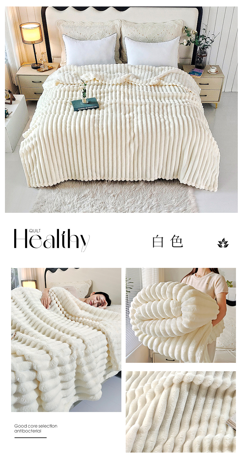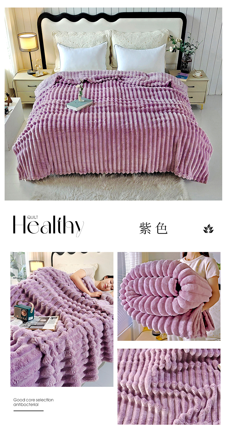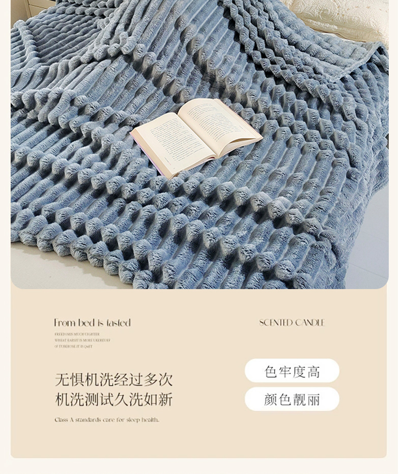 商品名称:(总)美洲琳 2025新款仿兔毛大泡泡宽抽条毛毯毯子