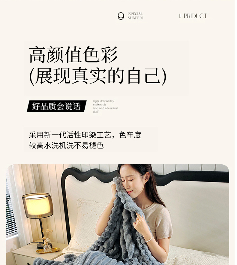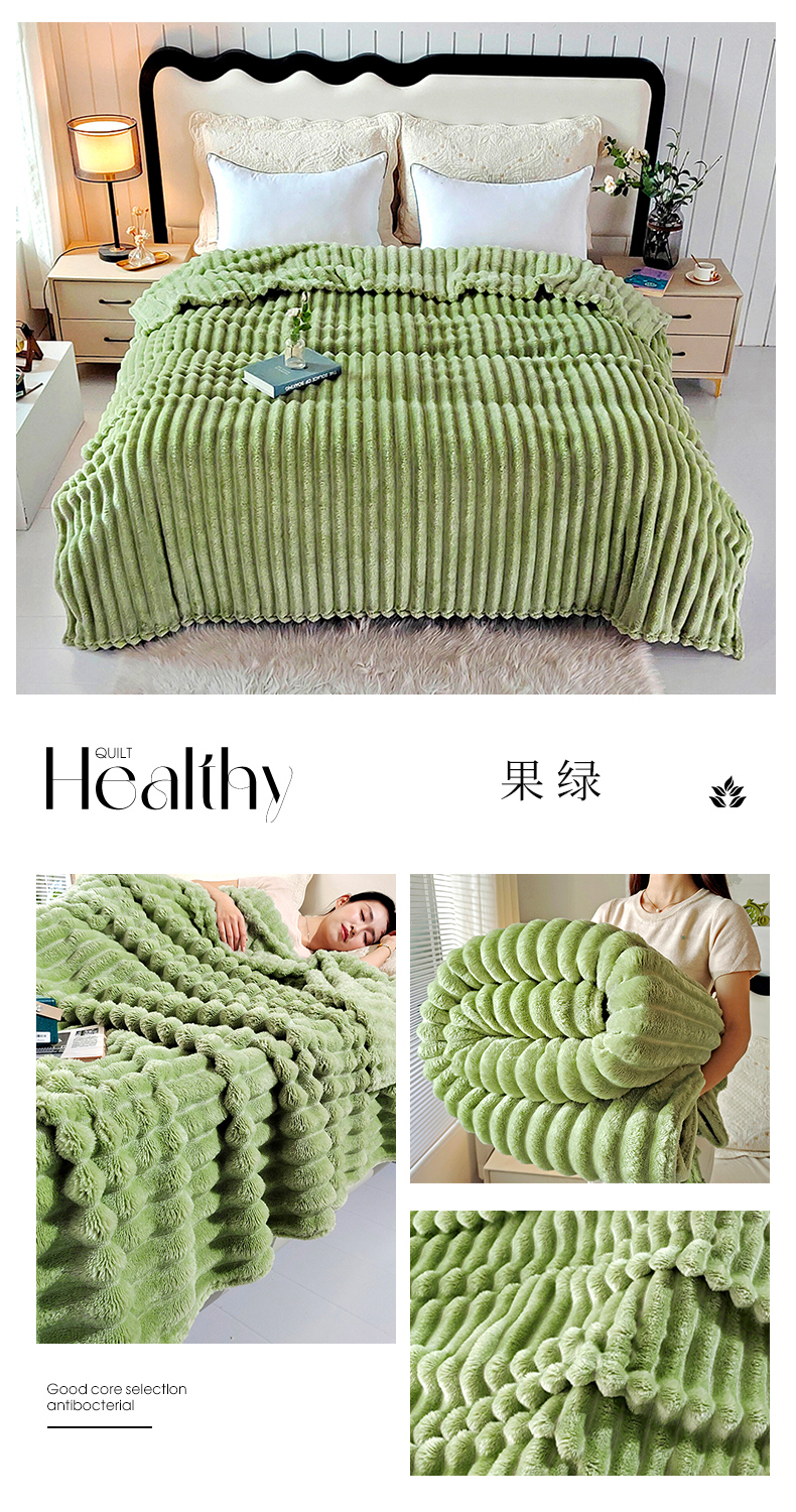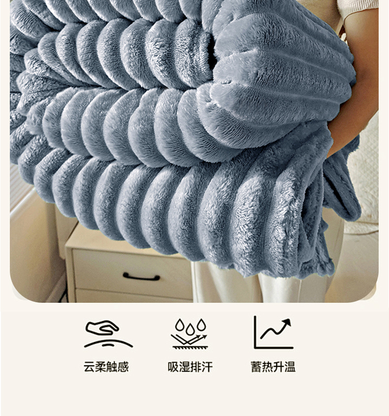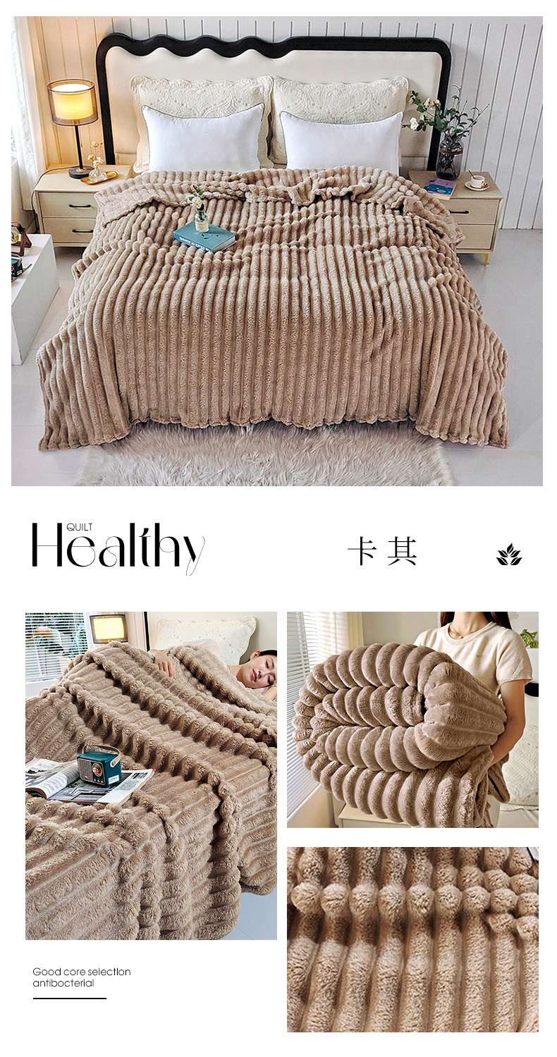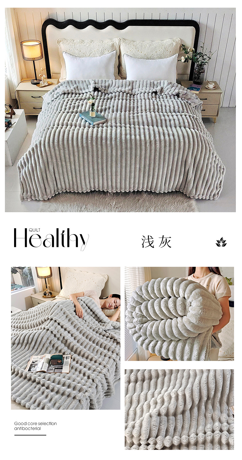 商品名称:(总)美洲琳 2025新款仿兔毛大泡泡宽抽条毛毯毯子