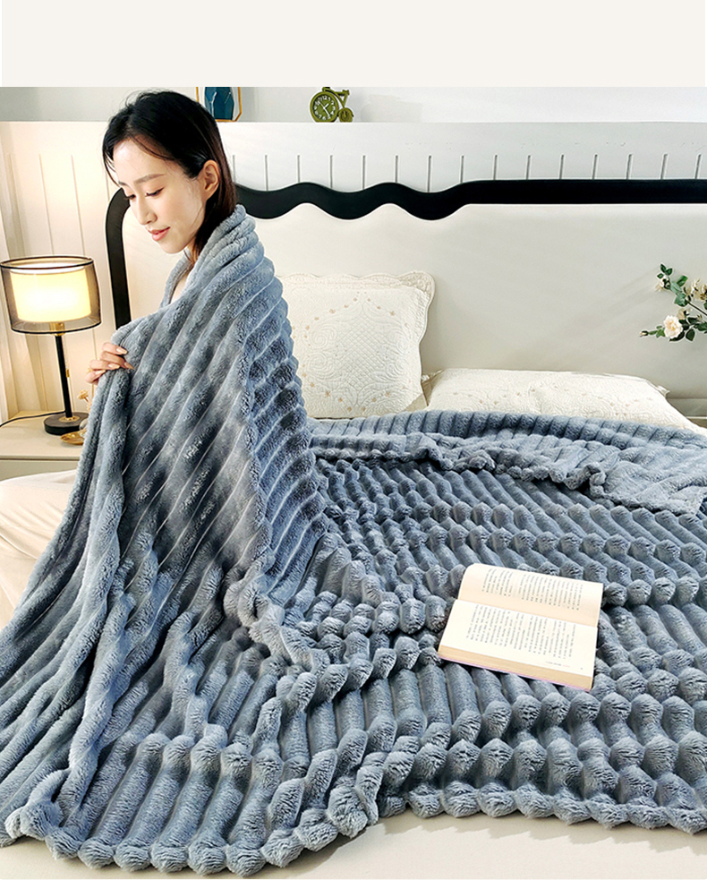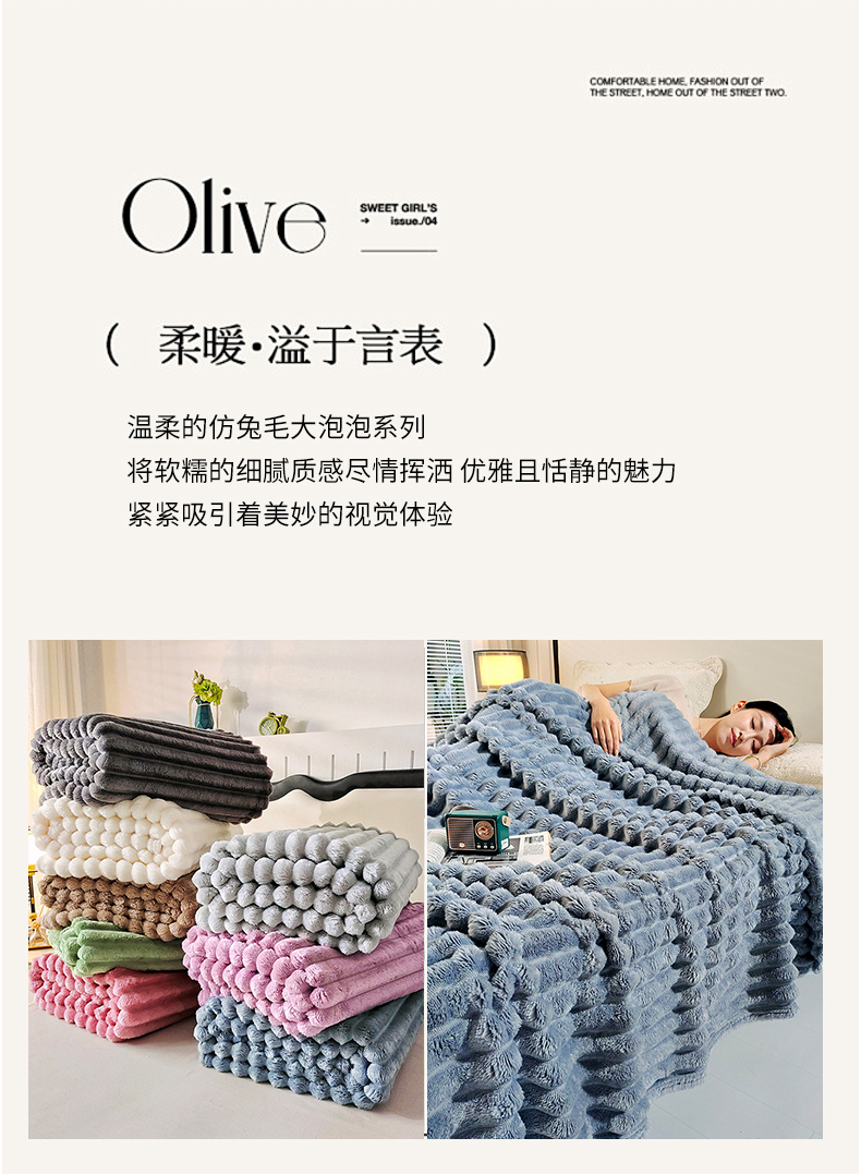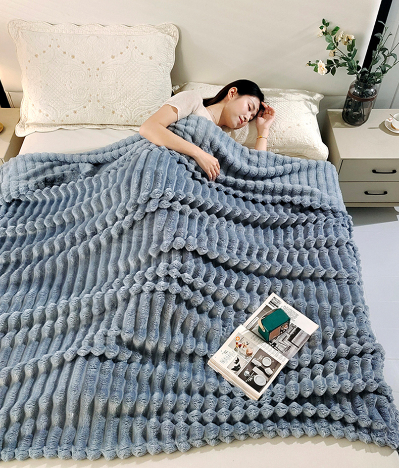 (总)美洲琳 2025新款仿兔毛大泡泡宽抽条毛毯毯子