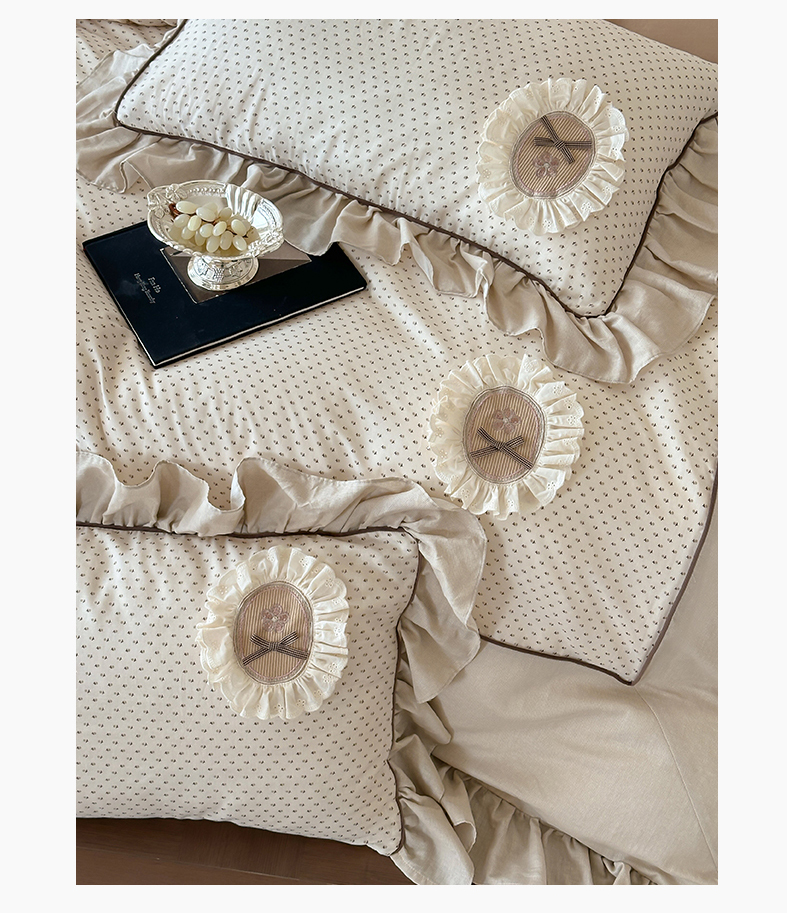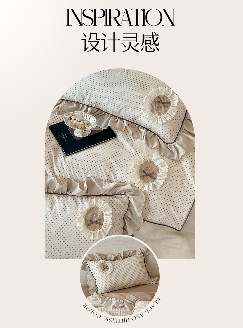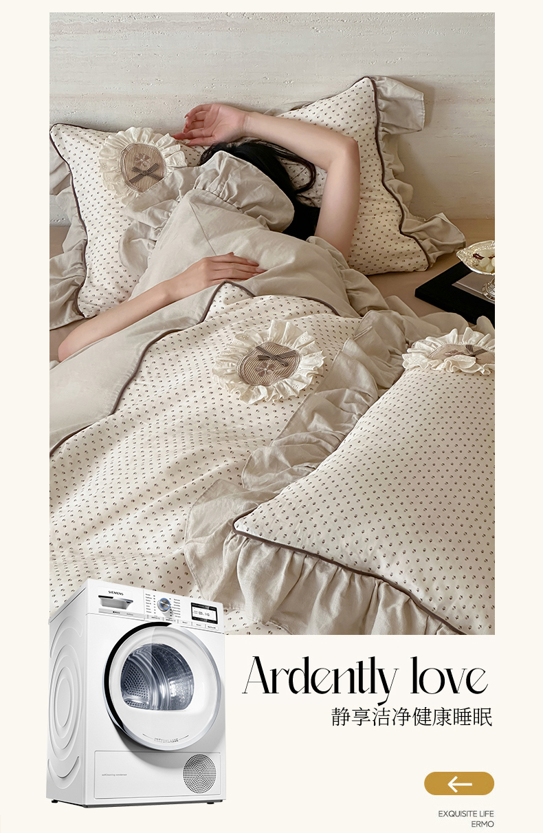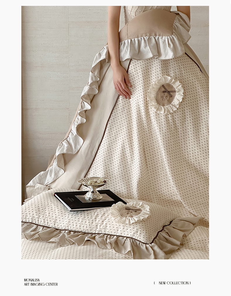 商品名称:名品优仓 2025新款纯棉水洗棉双层纱提花韩版花边四件套-爱丽丝 爱丽丝一绿