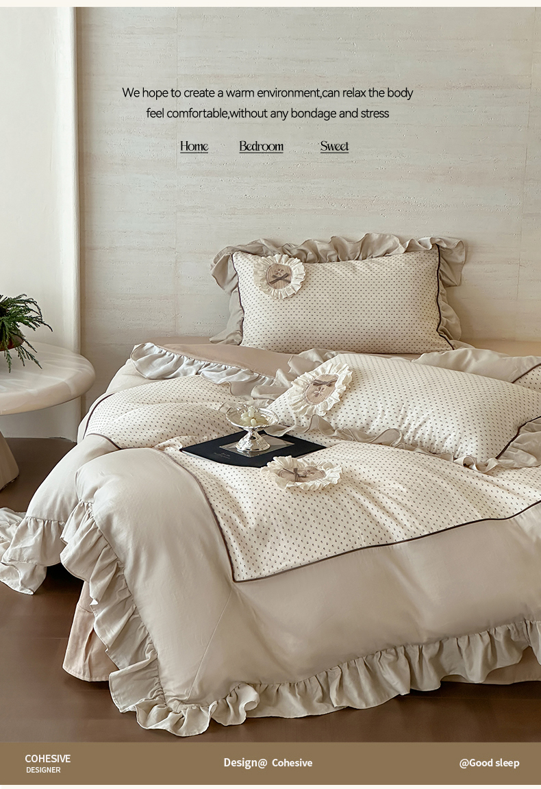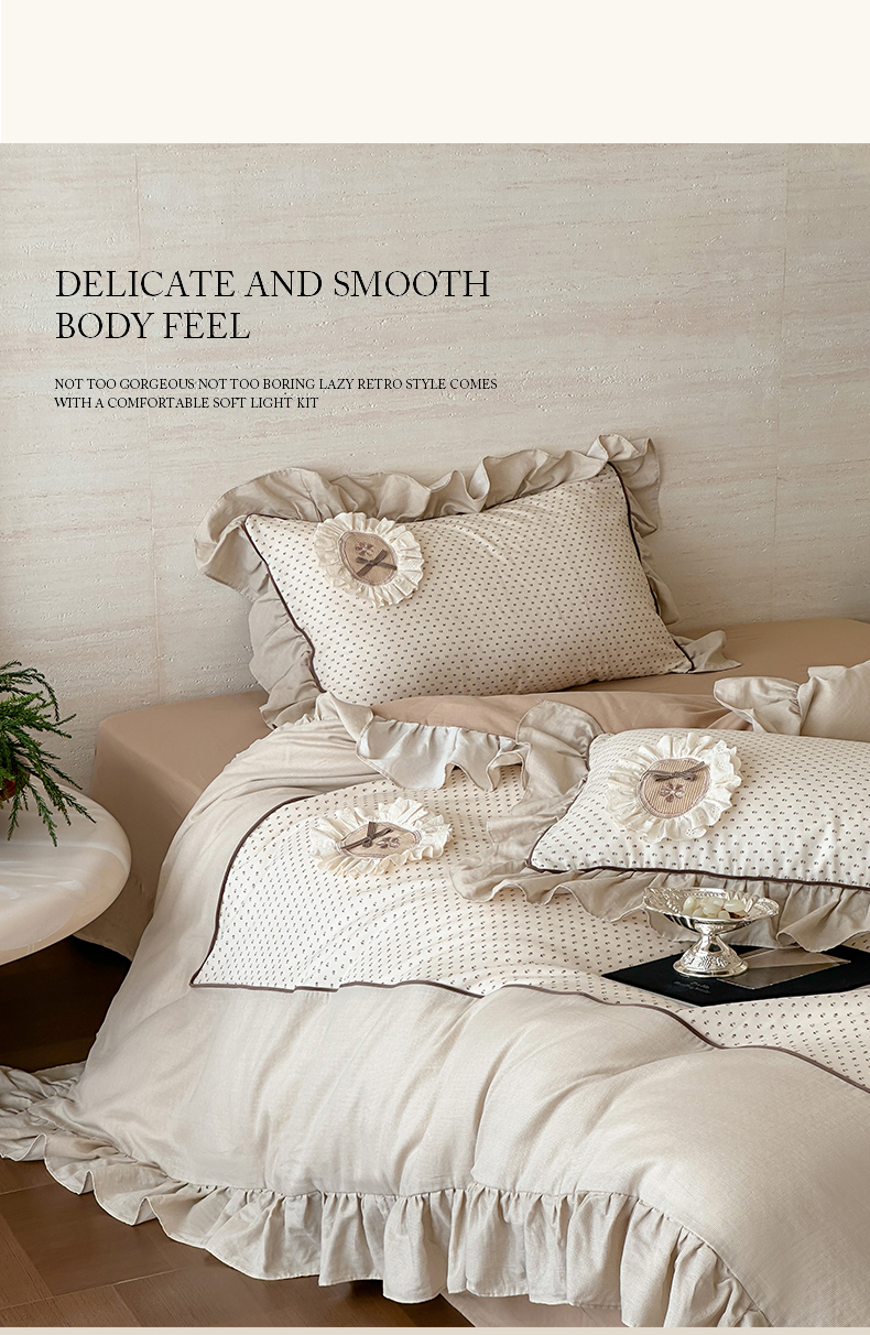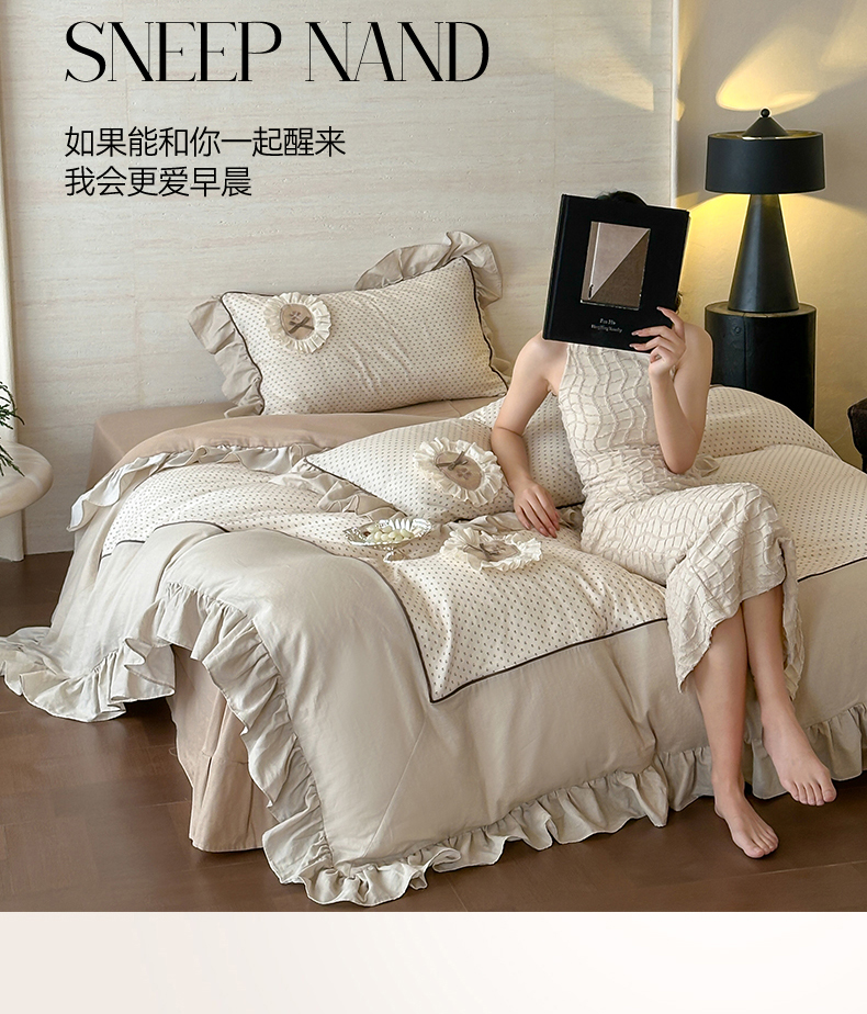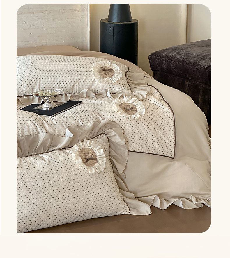 商品名称:名品优仓 2025新款纯棉水洗棉双层纱提花韩版花边四件套-爱丽丝 爱丽丝一绿