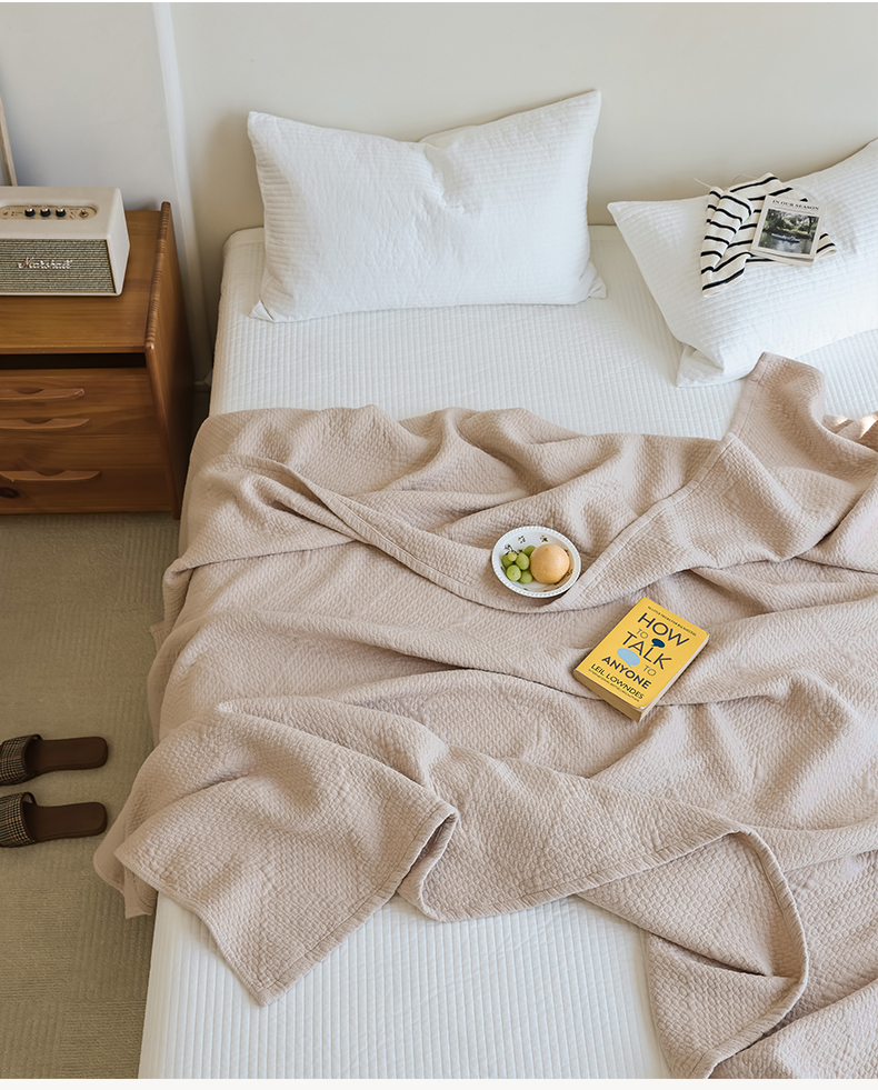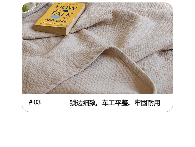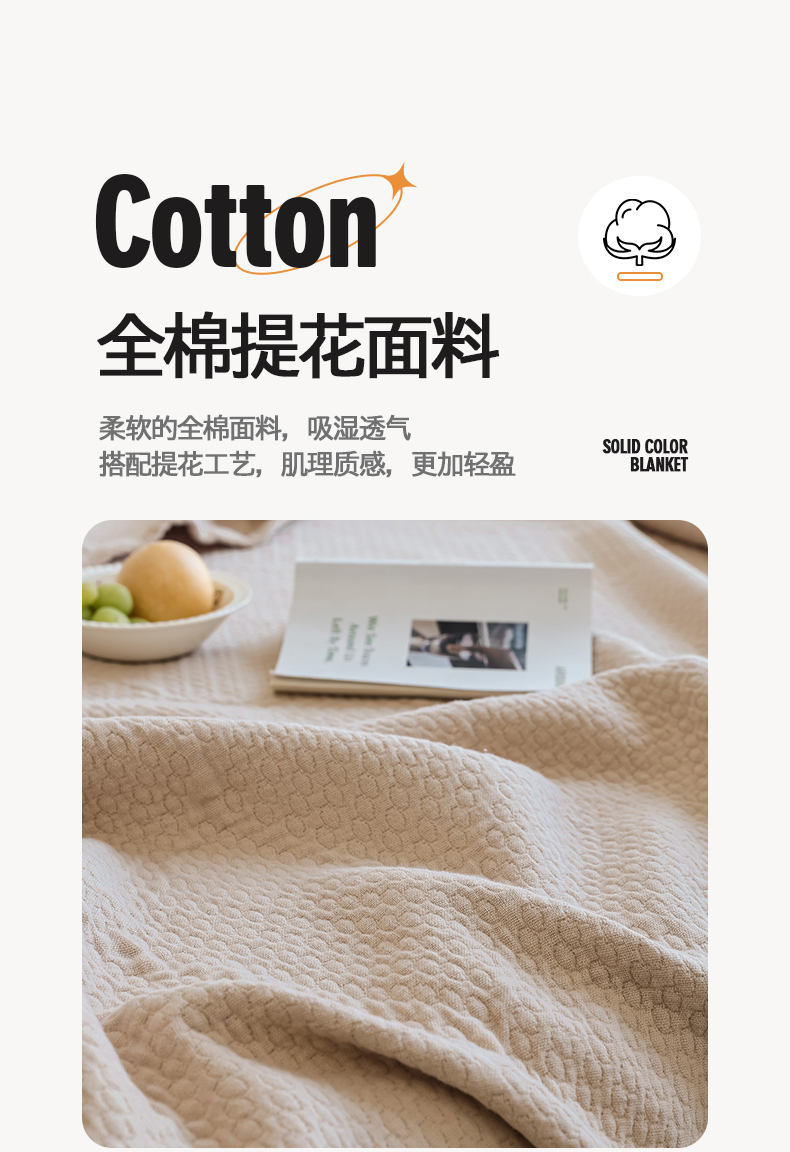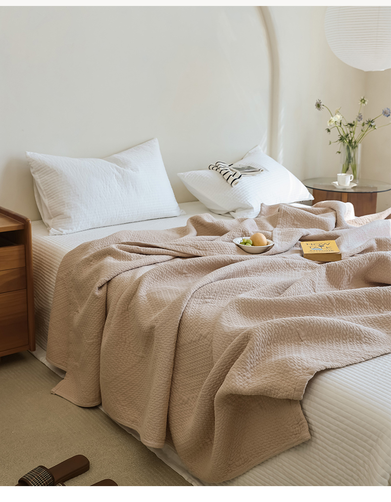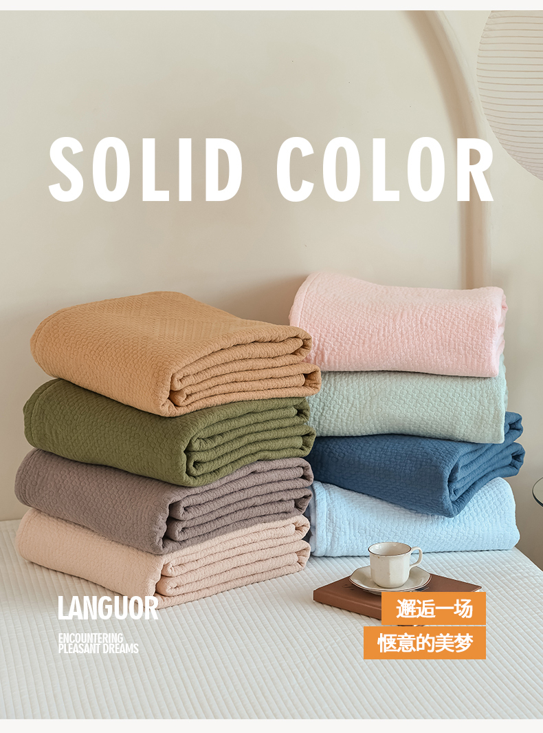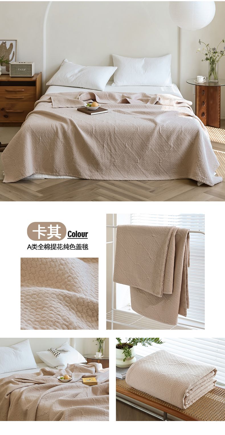 商品名称:雯雨家纺2025新款A类全棉加厚六层纱提花纯色盖毯 六层纱-卡其