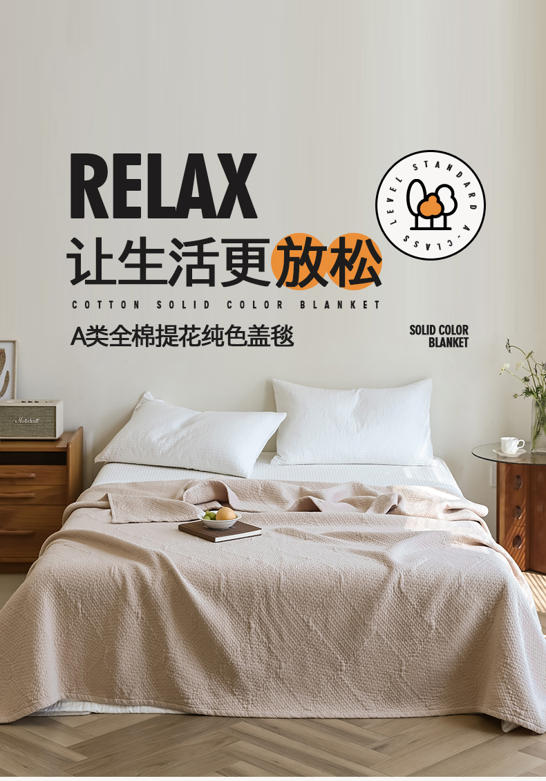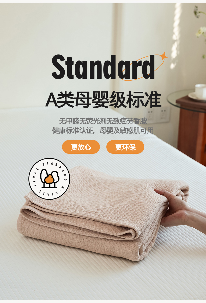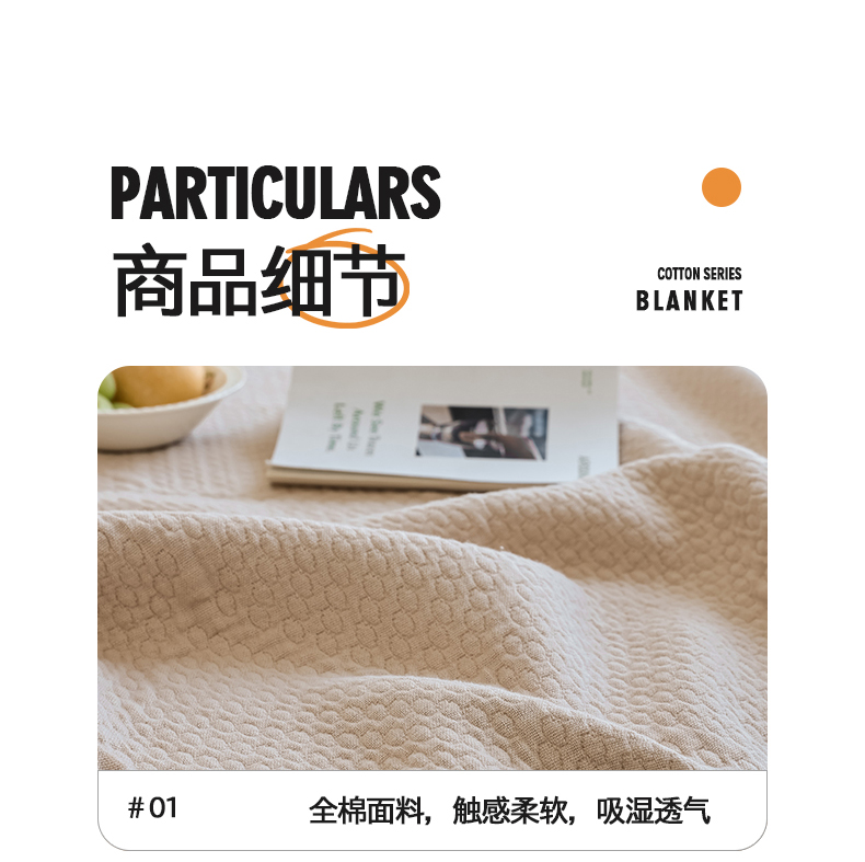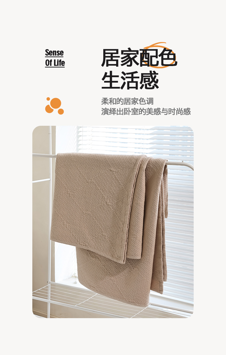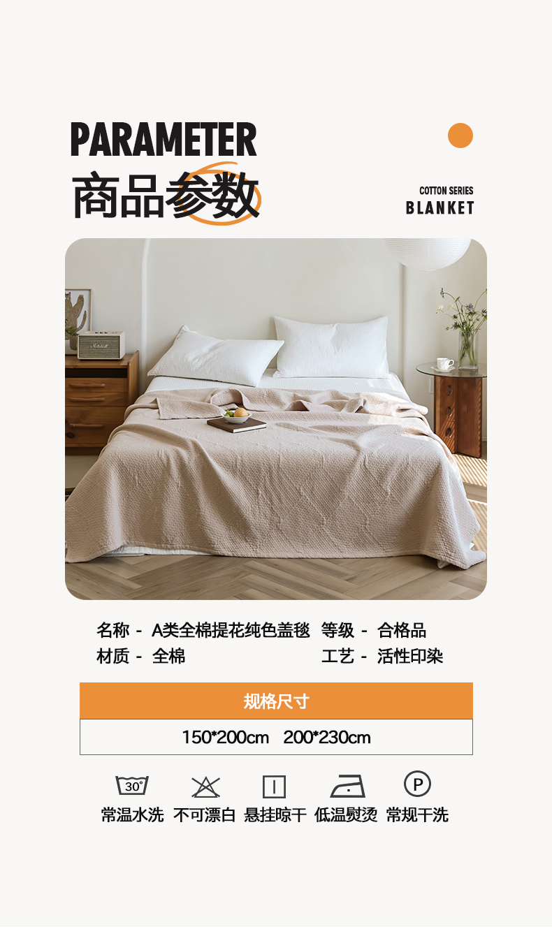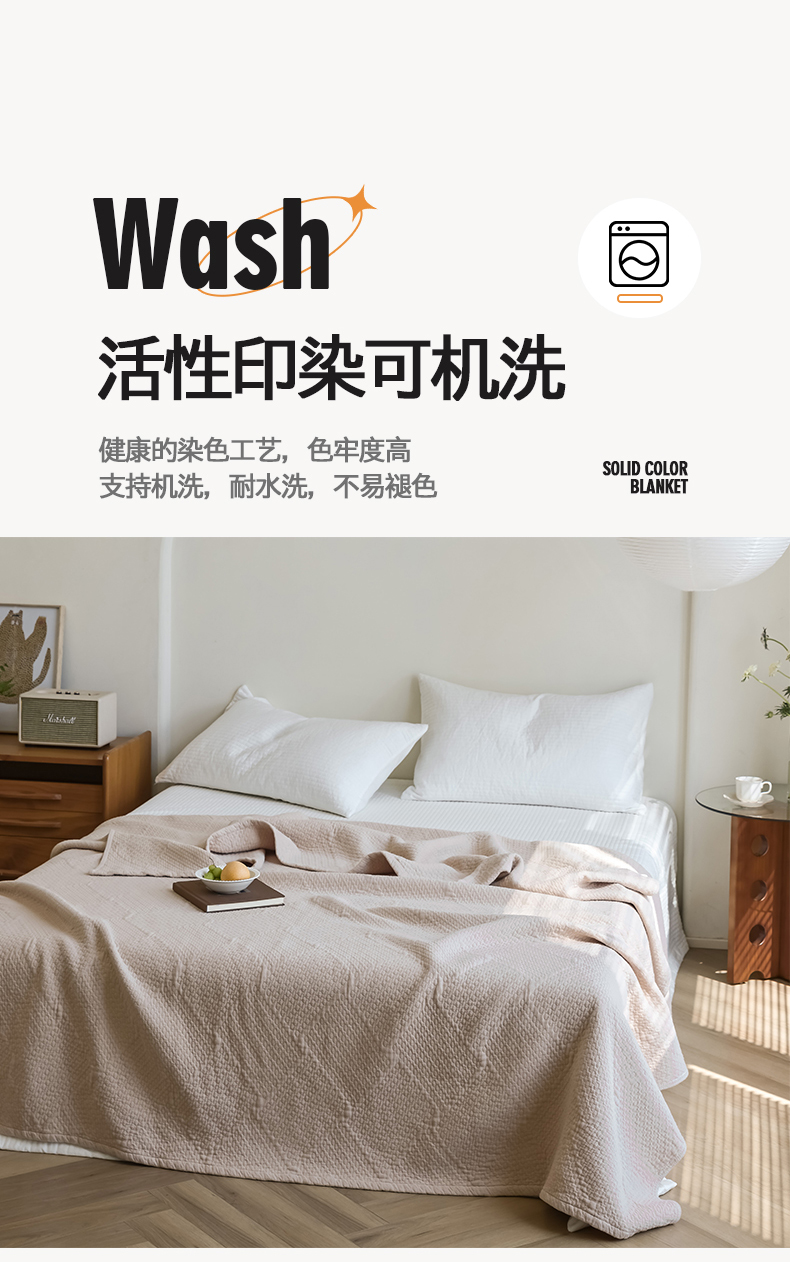商品名称:雯雨家纺2025新款A类全棉加厚六层纱提花纯色盖毯 六层纱-卡其
