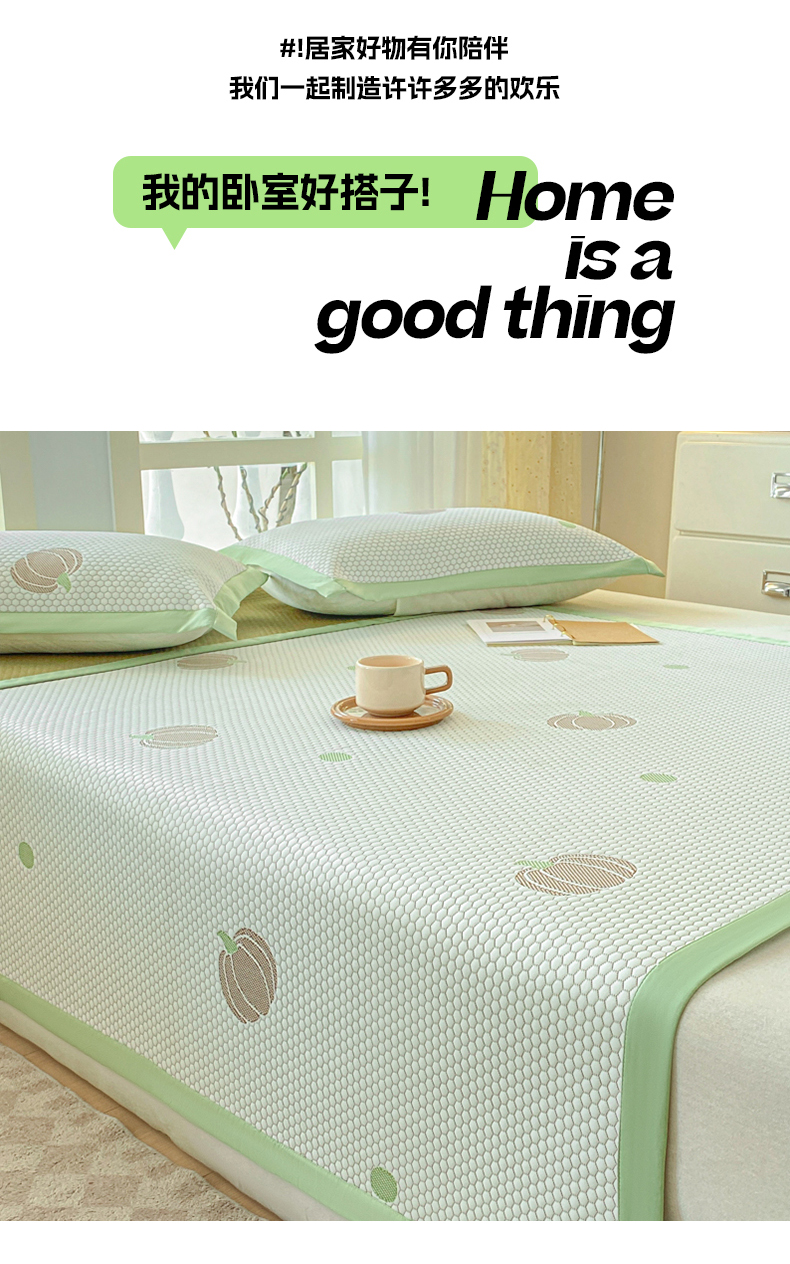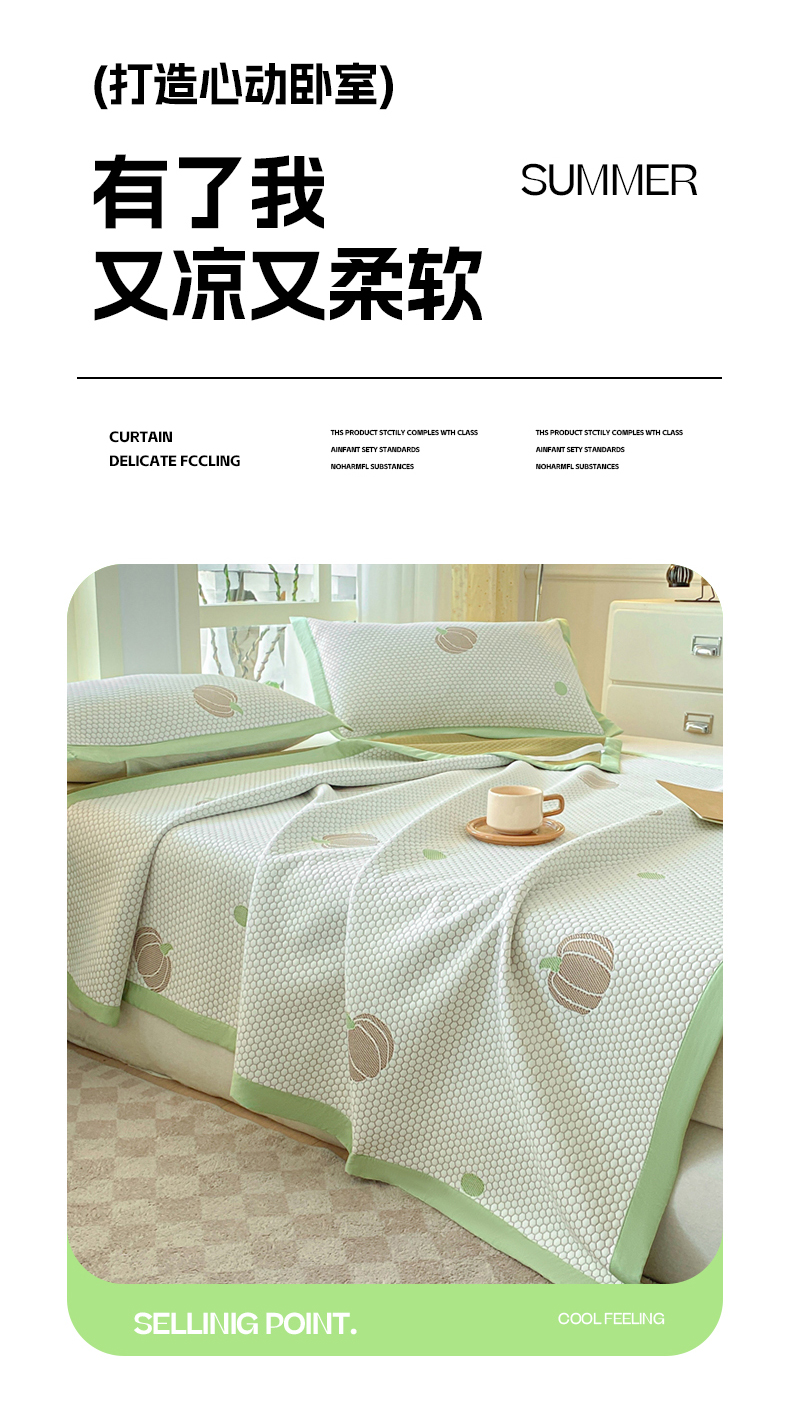 • 91家纺网 家纺一手货源 找家纺 鑫顺欣 2025新款A类凉感冰豆豆床单凉席 南瓜-草绿
