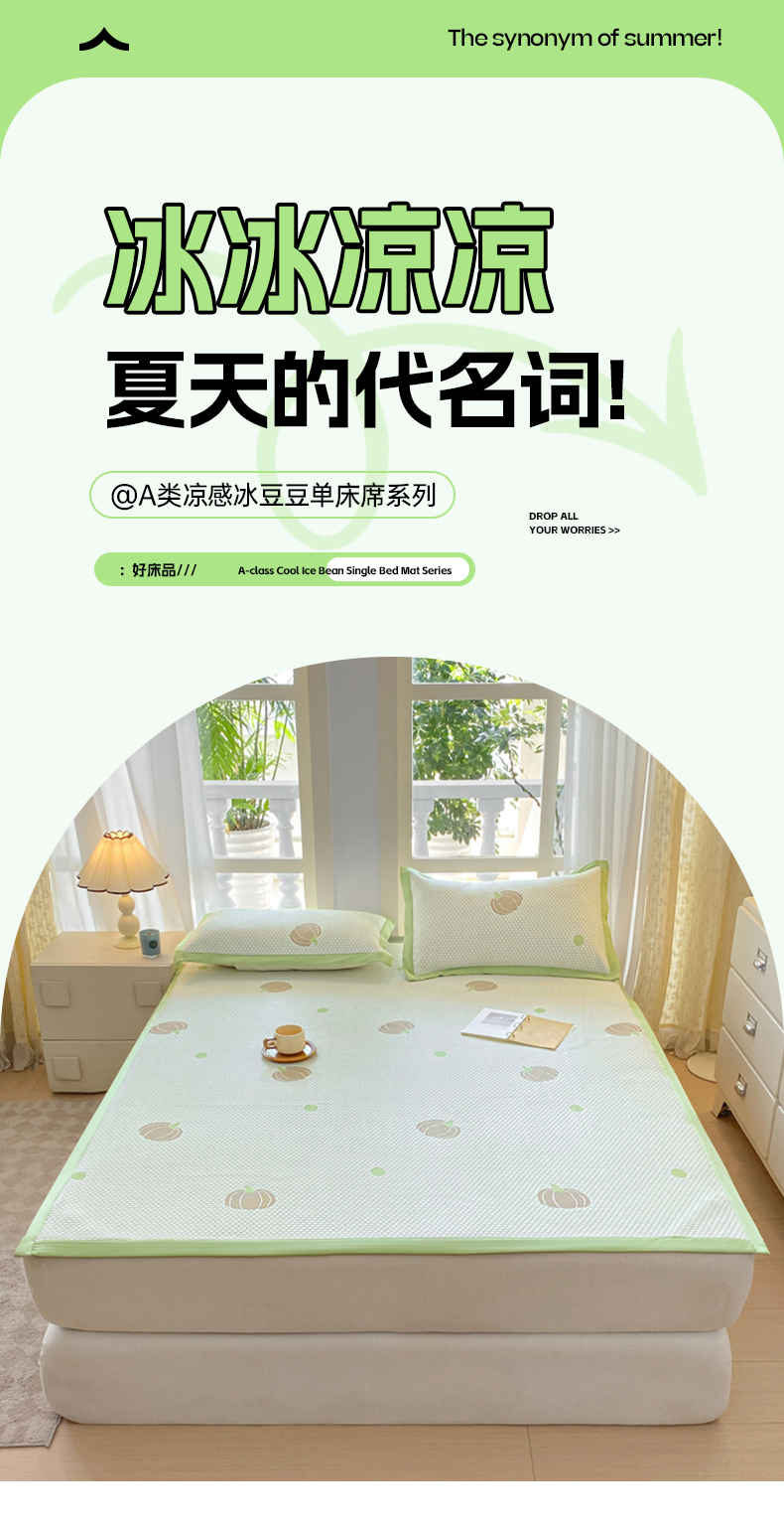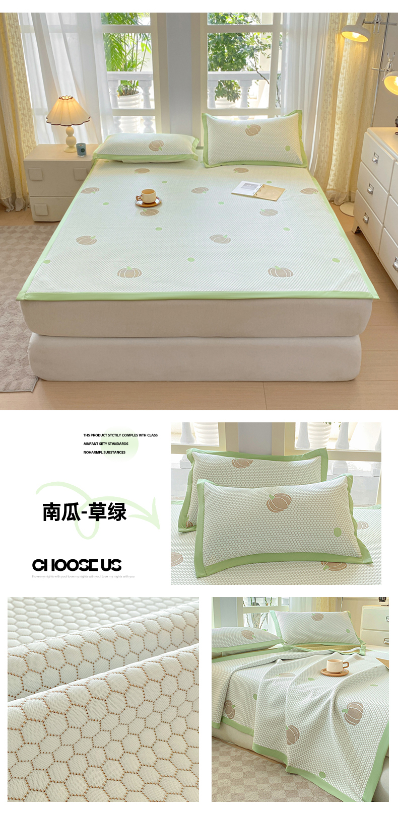 鑫顺欣 2025新款A类凉感冰豆豆床单凉席 南瓜-草绿
