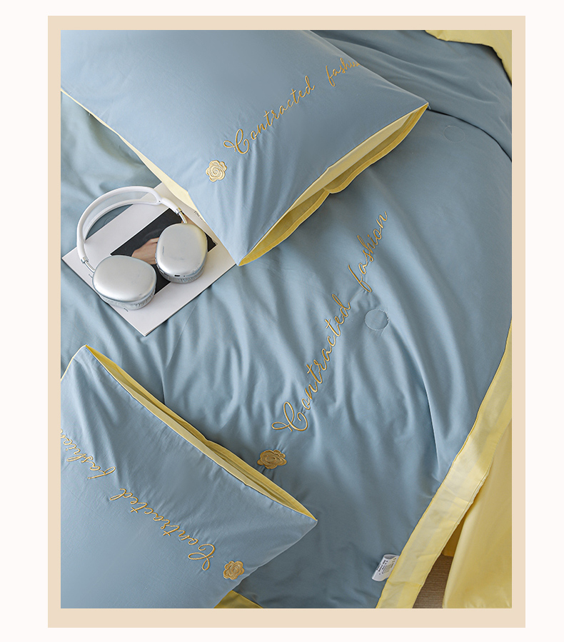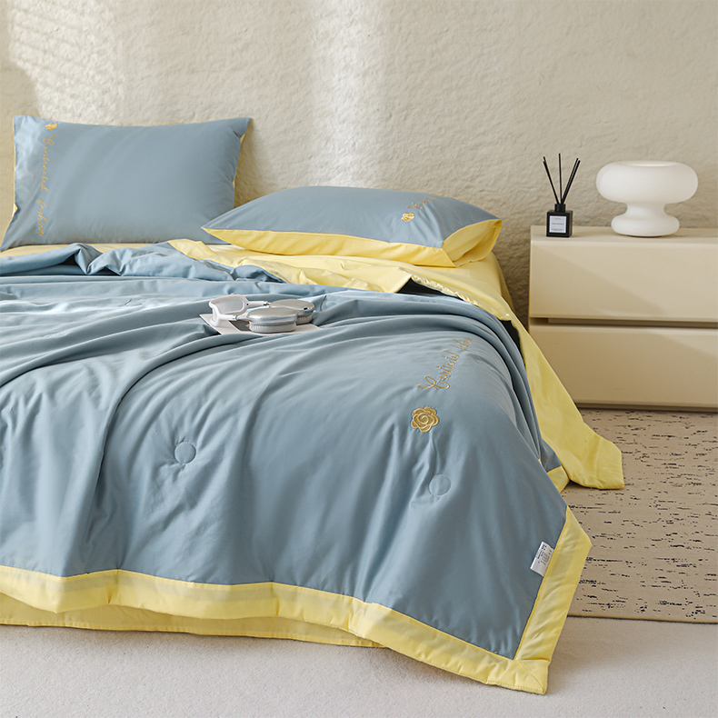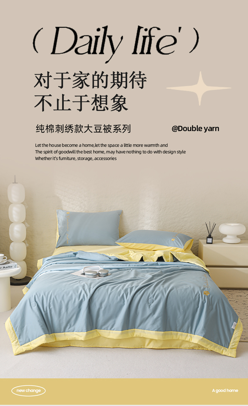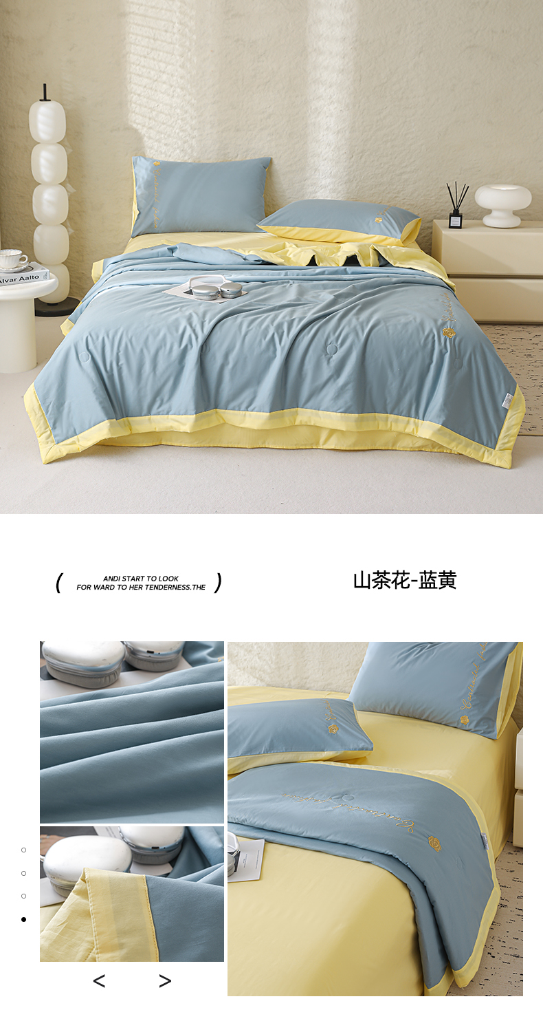 • 91家纺网 家纺一手货源 找家纺 简宜家居(朝初家纺) 2025新款纯棉刺绣山茶花大豆被 山茶花-蓝黄
