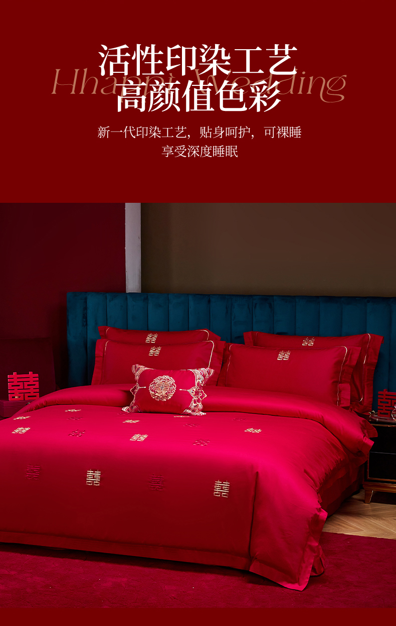 商品名称:晶缦家纺 2025新款喷气全棉13376婚庆绣花四件套 吾家有喜