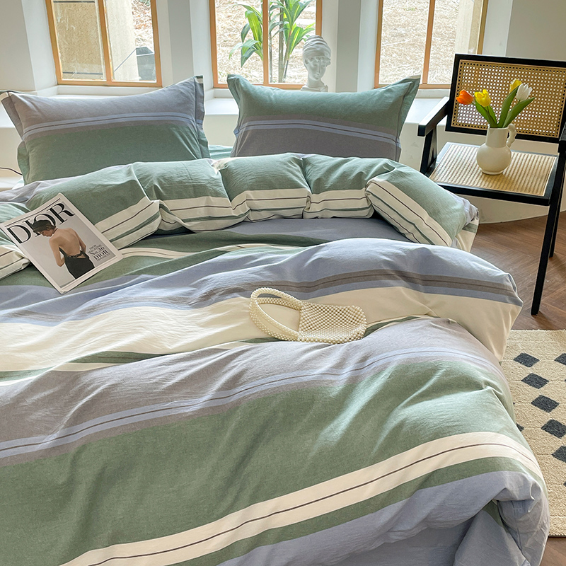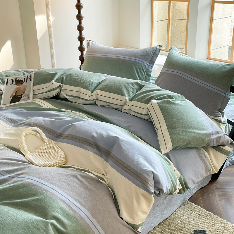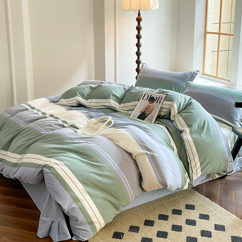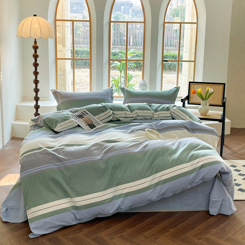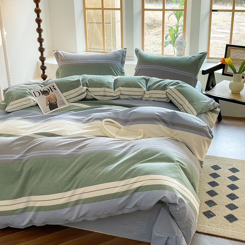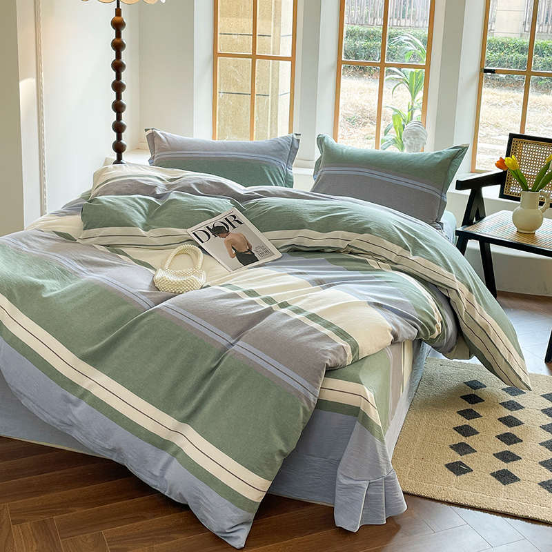 喜四方 2025新款全棉色织水洗棉四件套 艾米尔-绿