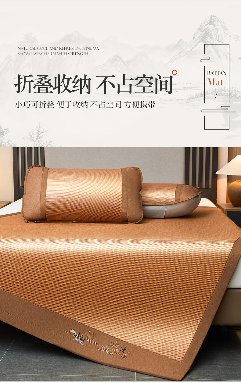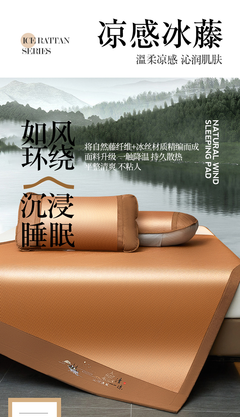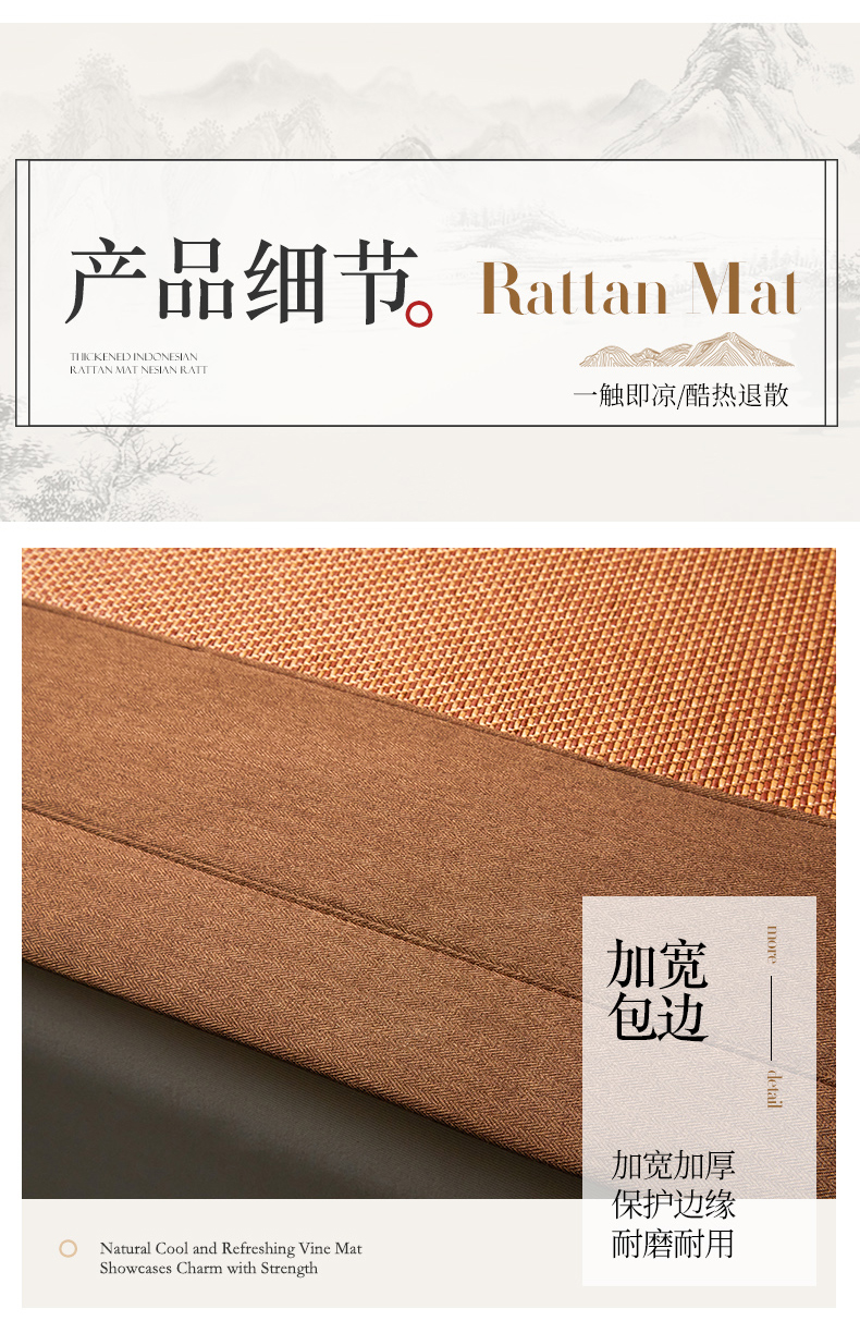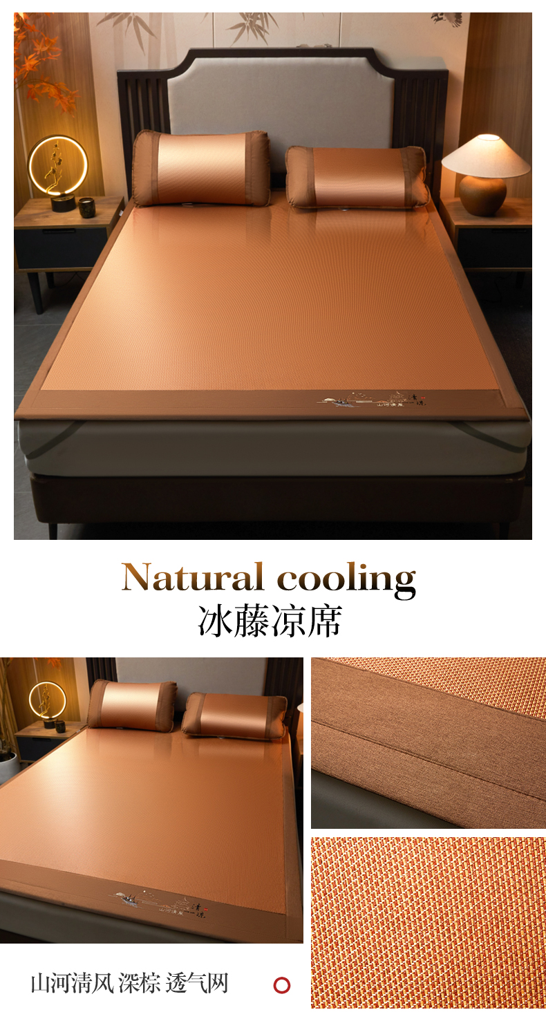 商品名称:2025新款山河清风冰藤席三明治款 清风深棕 三明治