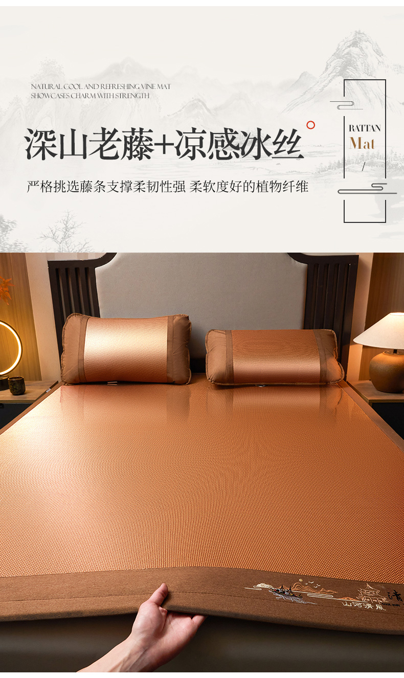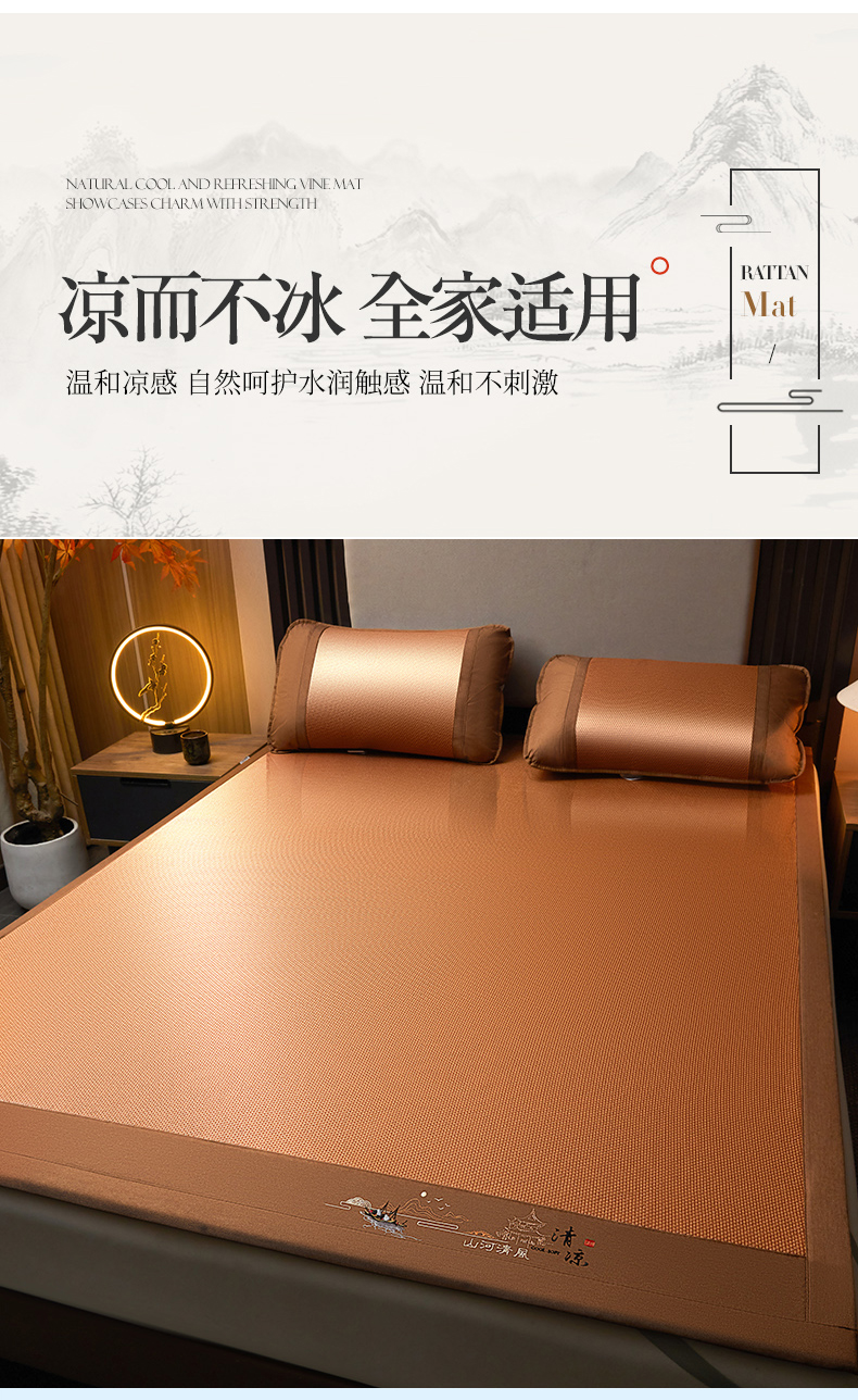 (总)航途席业 2025新款山河清风冰藤席三明治款,清风古典 三明治,清风古典 无纺布,清风深棕 三明治,清风花禧 三明治,清风花禧 无纺布,清风深棕-无纺布