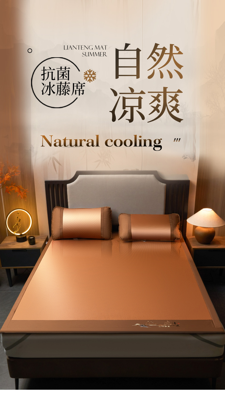 (总)航途席业 2025新款包边抗菌冰藤席冰藤凉席,冰藤格纹,冰藤繁华 ,冰藤简意