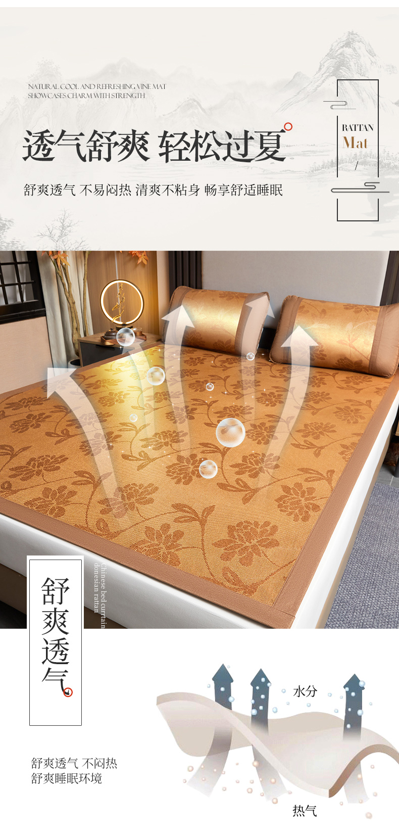 (总)航途席业 2025新款山河清风冰藤席三明治款,清风古典 三明治,清风古典 无纺布,清风深棕 三明治,清风花禧 三明治,清风花禧 无纺布,清风深棕-无纺布